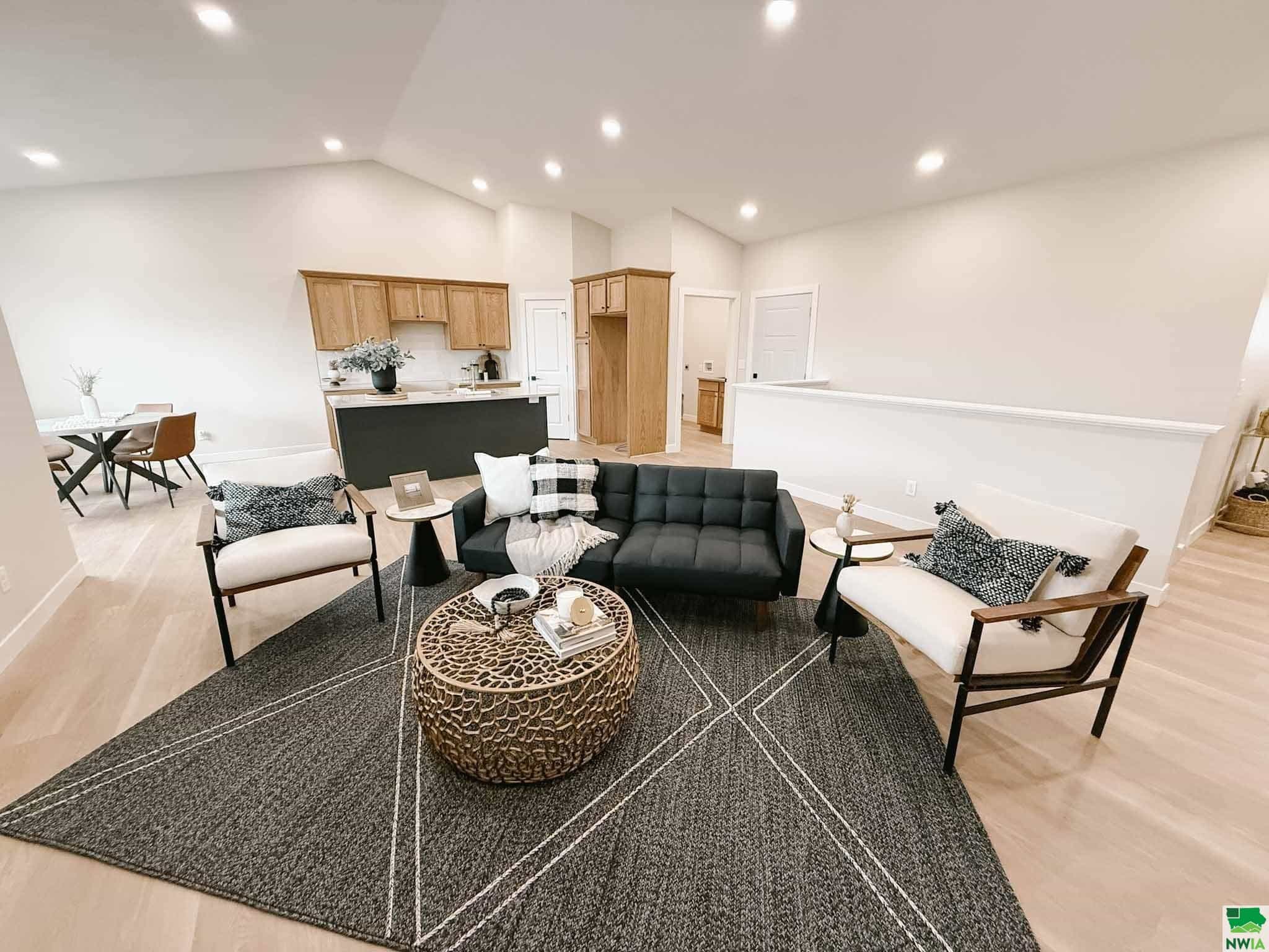 EASY LIVING. NO HOA. FULL BASEMENT. This 2025 duplex unit is designed with an effortless open layout on the main floor. It is built with 9' ceilings and a vault. A spacious covered patio is located out back which provides the perfect spot for entertaining. The main floor has luxury vinyl plank flooring with carpet in the primary suite. The kitchen boasts custom cabinetry in a nice warm color way and a tiled backsplash giving a modern look. The countertops feature quartz with a spacious island. This unit has two bedrooms and two bathrooms on the main floor. The primary suite features a walk-in closet as well as a 3/4 en-suite bathroom equipped with an onyx vanity and LOTS of storage. Rounding out the main floor is a dining space, guest bedroom, and laundry. The attached double garage is fully finished and contains floor drains. A bonus to this duplex unit is the ability to add value by finishing off the nearly 1,400 square feet basement. There's room for a spacious living, two more bedrooms, a bathroom, and utility room. Don't miss out on this incredible opportunity!