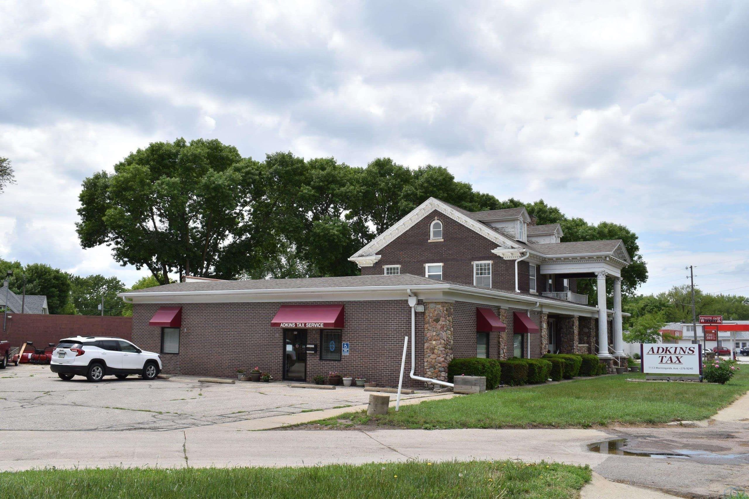 Once owned by Judge Iddings, this grand 2 story brick home would be a welcome resting place for those traveling thru early Sioux City. Most of the character and charm has been saved as well as some updates for convenience. In 1975 a 2744 sq. ft. addition with basement was added. This home and attached office would be a GREAT OPPORTUNITY for those looking for that convenience. Great first impression as you enter the main porch with its stately columns and stone work. The front door and sidelights with beveled glass bring you in to the foyer with chandeliers, wood floor and open staircase. Dining room and living room with carpet. There is a door to back porch from living room. Kitchen was updated in 2011. All appliances are included in kitchen and a door to the office area is nearby for convenience. Finishing the main floor is a den and 3/4 bathroom as well as another door to porch. At the top of the staircase is a 14 x 9 loft area. 2 of the bedrooms have wood floor and the other has carpet and a woodburning FP. Access to the sunroom with beautiful doors and lots of windows from 2 of the bedrooms. Updated full bathroom has tub/shower combo and single vanity. Convenient laundry room has closet, sink, cabinets and stairs to 3rd floor family room with carpet. This room was originally a ballroom! The 2744 sq. ft. office addition was added in 1975 and most of the lower level is finished or just needs flooring to finish. Main floor has reception area, 4 offices, conference room, kitchen and 2 bathrooms. There are separate heating and cooling systems for house and office. 2 car brick detached garage. How can this historic home and attached office work for you?? Some Restrictive uses for office space. 3 parcels-894735334012 (1107 Morningside Ave), 894735334013 (1113 Morningside Ave), 894735334014 (1115 Morningside Ave).