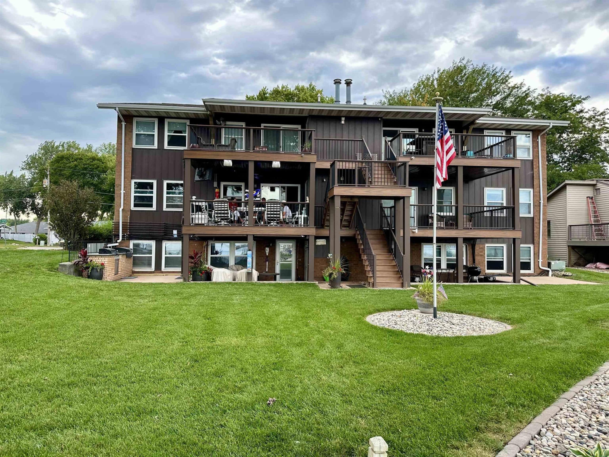 Lakefront Living at 111 N Emerald Dr #2 If youâve been dreaming of direct lakefront living in a beautifully remodeled condo, this three-bedroom, two-bath home on Storm Lakeâs west side is the perfect fit. Step outside and enjoy a thoughtfully designed outdoor space featuring a partially covered, custom-tiled outdoor kitchenâideal for entertaining! The lakeside yard is professionally landscaped with a manicured shoreline, offering plenty of room for backyard barbecues, yard games, or simply relaxing with your morning coffee as the sun rises over the water. The community dock is extremely long, designed to accommodate multiple boat and jet ski liftsâso whether youâre fishing, boating, or enjoying watersports, everything you need is right at your doorstep. Inside, the open floor plan maximizes space, with charming nautical-inspired finishes including shiplap walls, a built-in electric fireplace, and sliding barn doors that give the condo its unique character. The kitchen is a standout with abundant counter space, seating at the island, and includes modern appliances. Washer and dryer are also part of the sale. Additional purchase options include a jet ski hoist, boat hoist, and all furnishings. The well-managed HOA ($250/month) covers the dock, water/sewer, garbage service, lawn care, snow removal, building structure insurance, and common area upkeepâallowing you to enjoy worry-free lakefront living. This rare lakefront gem combines stylish updates with unbeatable access to Storm Lake. Schedule your private tour today and experience it for yourself!
