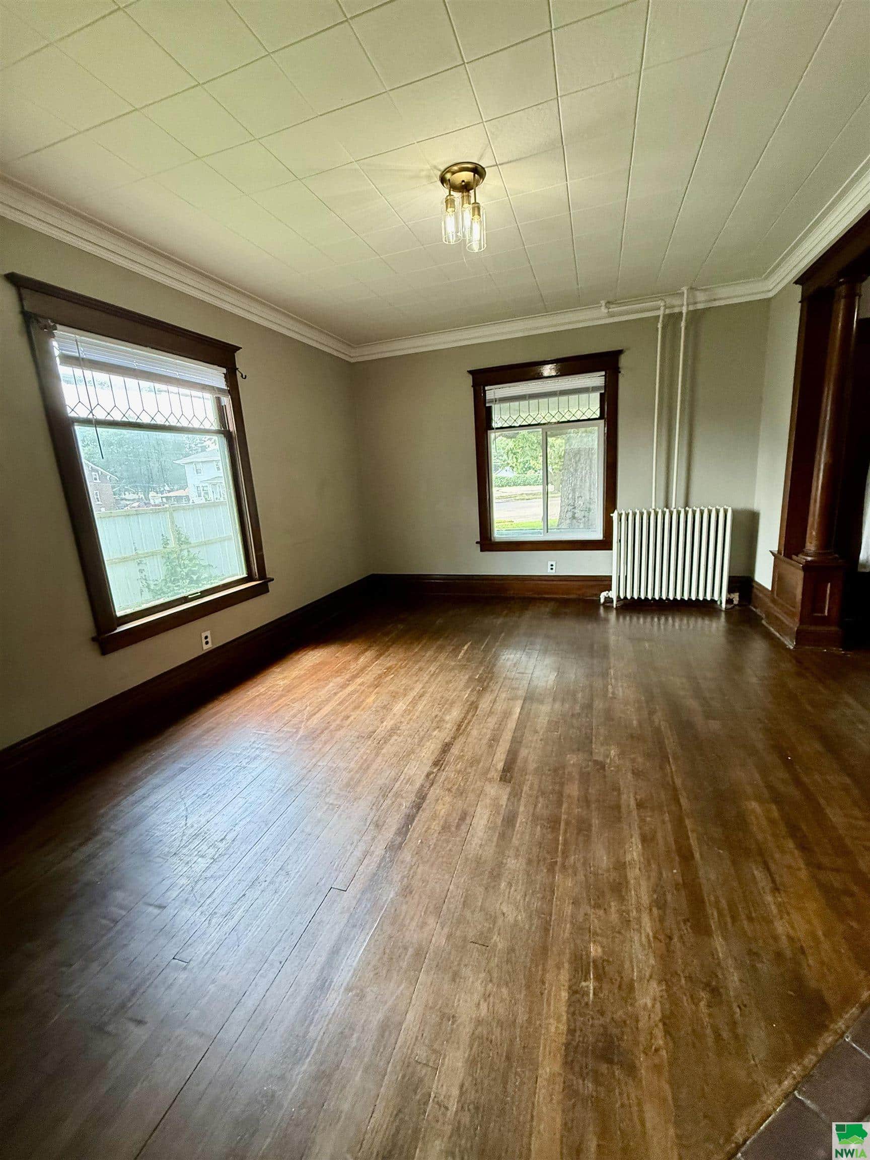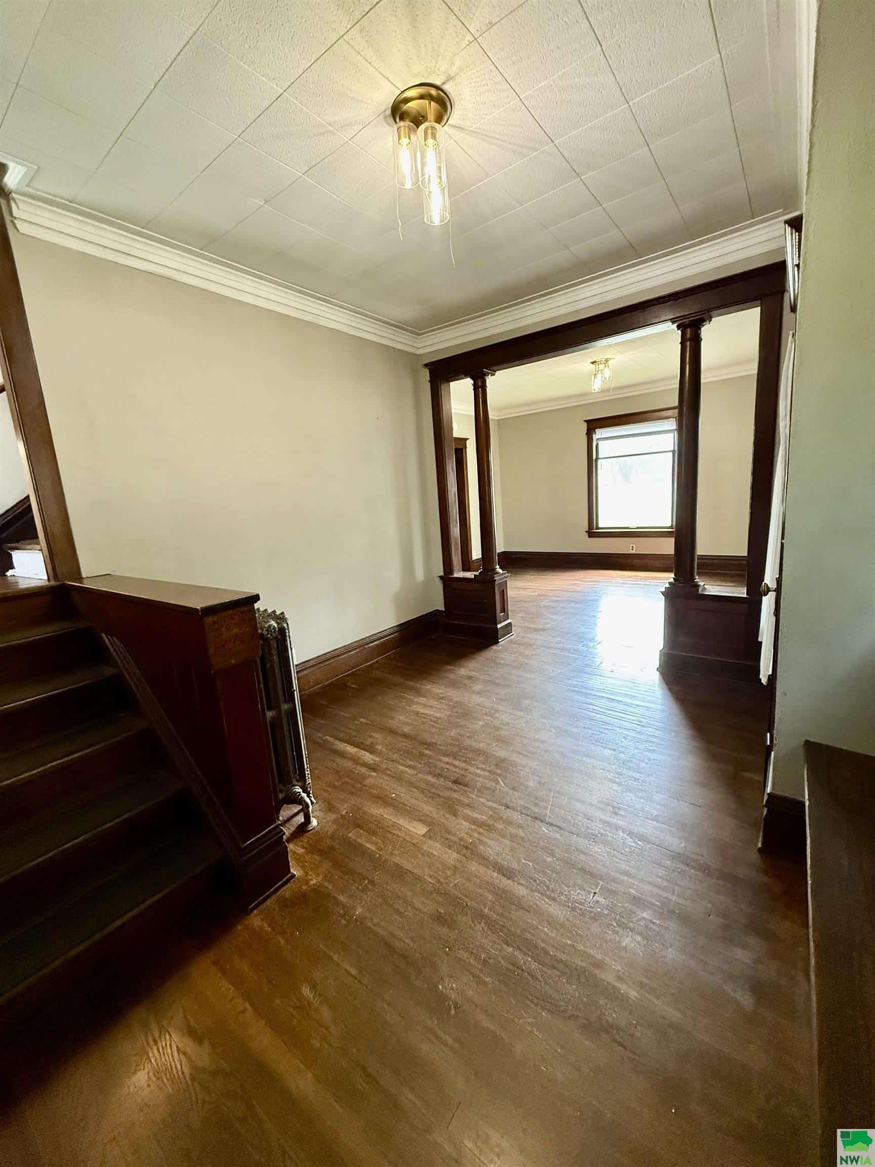 This 4 bedroom, 2 bath home is full of charm and space. Upon entry you're greeted with a beautiful large foyer showcasing the era of the home when it was built. The hardwood floors to this home flow from the foyer to the large living space that has lots of natural light, and a fireplace. As you head into the dining area, the hardwood floors continue, a charming unique ceiling that makes a statement, an updated light fixture and a solid built in for showcasing your dining essentials. The kitchen is nicely updated and is conveniently located off the dining and a door to the deck. All the bedrooms in this home are large with updated flooring and large closets. The master bedroom has 2 closets and has a 3 seasons porch which adds to the space of this bedroom. There is a 3rd floor that is really a bonus and has finished attic space. Additionally the home adds to the completeness with a detached 2 car garage. This home is move in ready and within distance to Morningside college, food venues, parks, and retail.