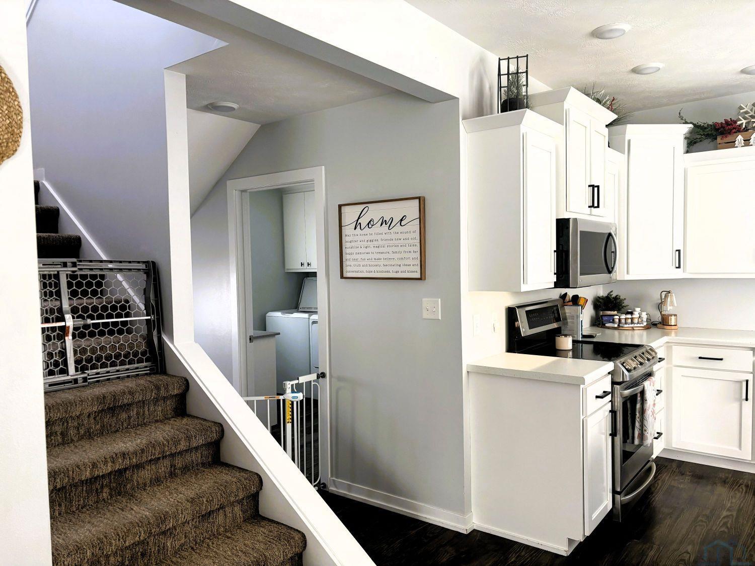 Top to bottom updates over the years have this home ready for the next owner! Extensive remodeling starting in '19 have the large ticket items replaced making this home a buyers dream. Open concept with new windows brightens up the updated kitchen with stainless steel appliances and breakfast bar. Master bedroom located on main along with laundry and 3/4 bath. Steps leading to the upstairs stops you at a large landing that can be an additional gathering area or bedroom if needed. Two additional bedrooms and full bath complete the upstairs. Off the back entry a place to hang your coats and bags with steps leading to basement. A shelf basement that has been fully insulated and could turn into finished space or used for storage. Summer of '24 garage was updated. Electric added along with 2nd stall and completely wrapped in tin for easy maintenance and longevity. Fenced in backyard ready for pets or fun.