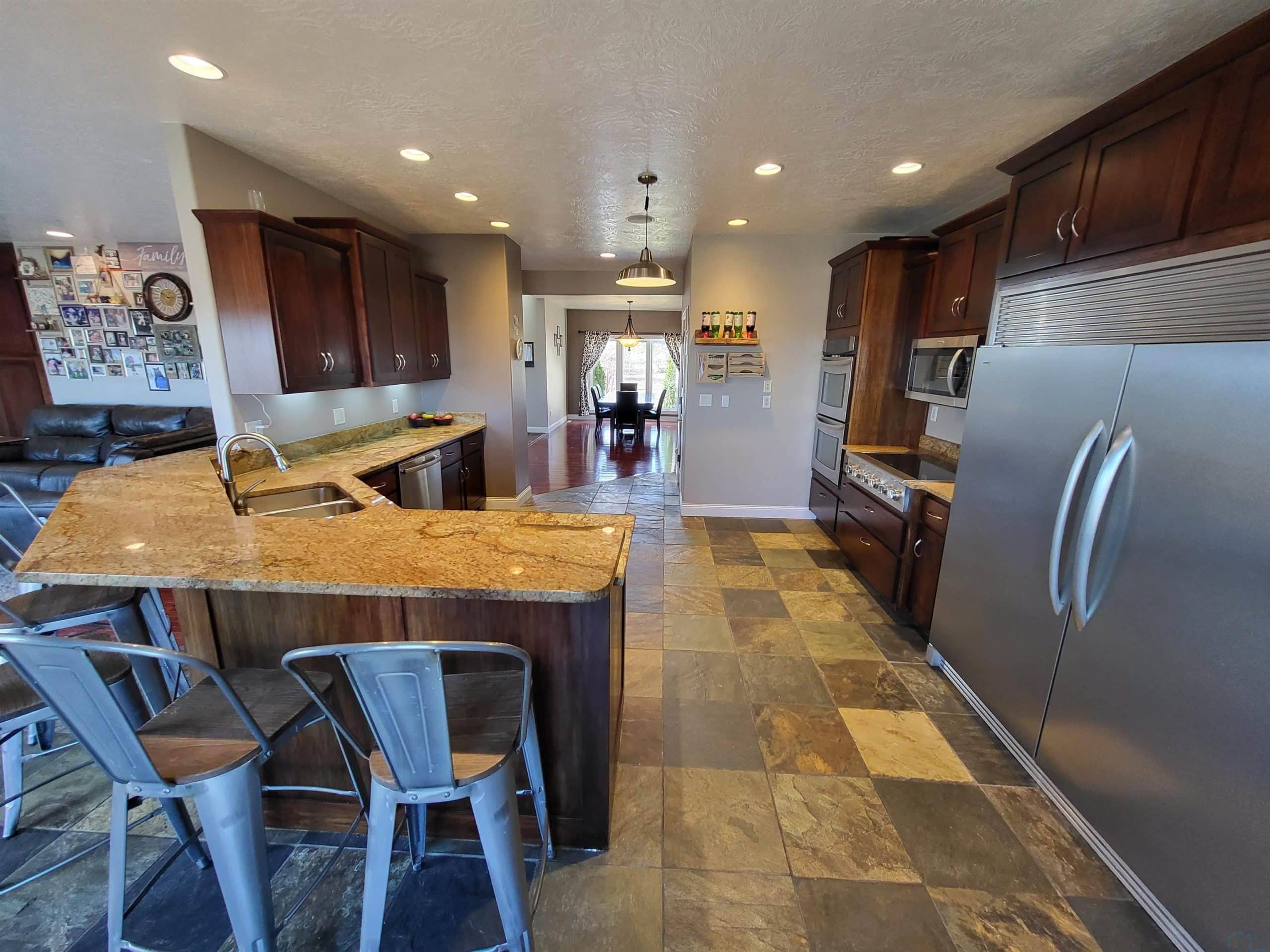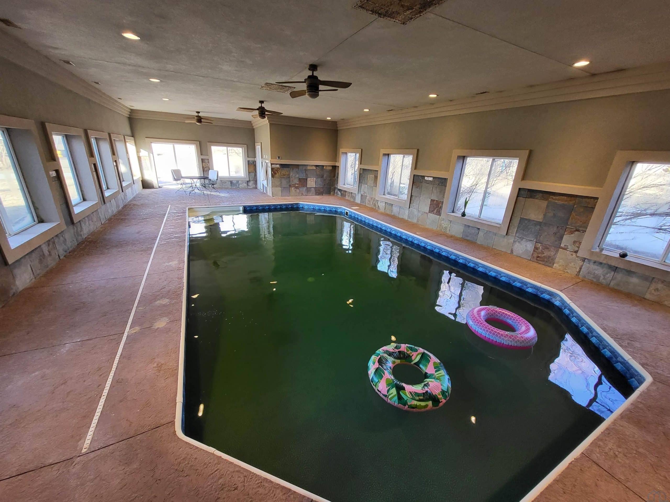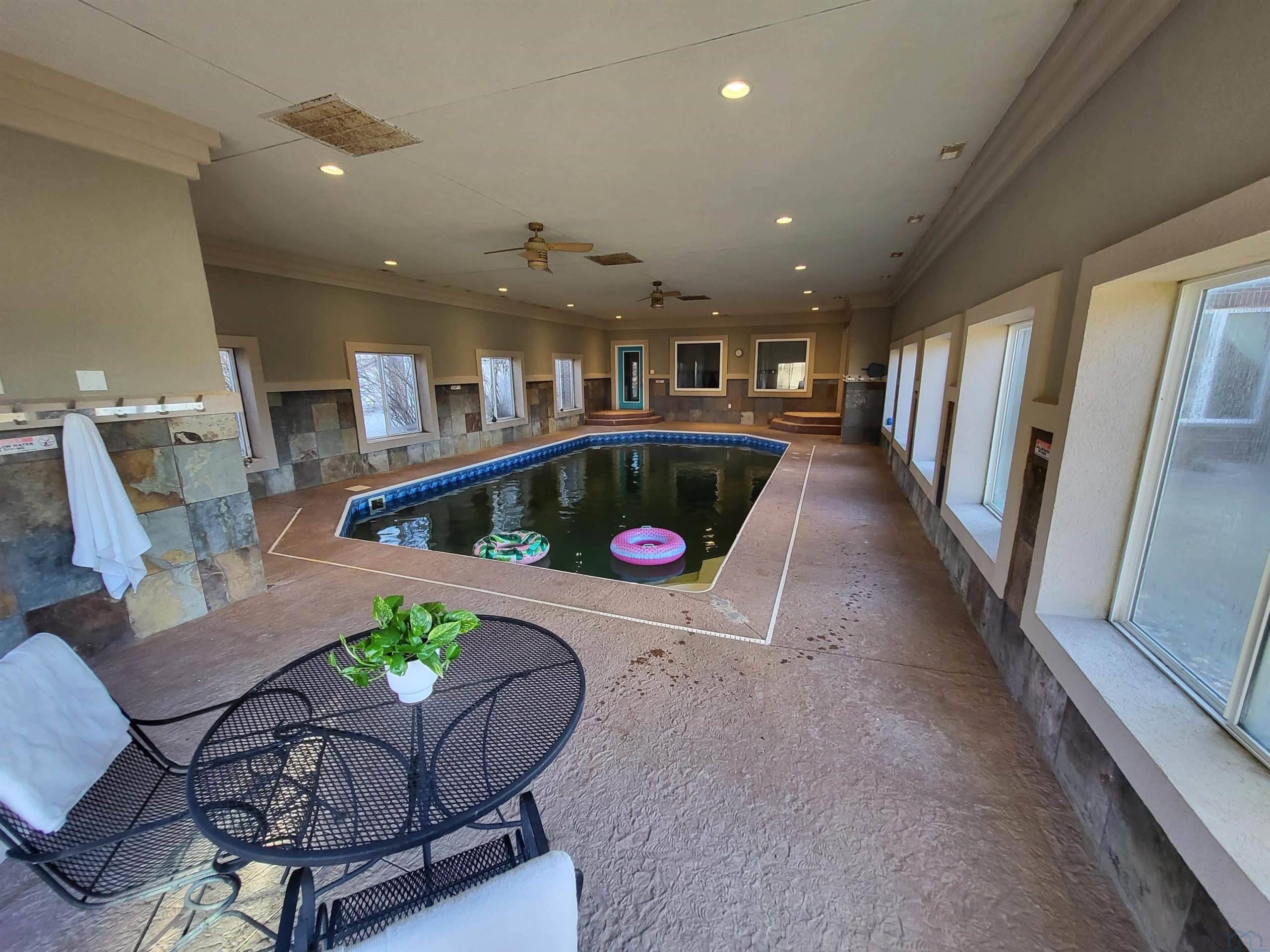 Discover this exceptional property situated on approximately 8 acres of pristine land, featuring a remarkable two-story home that truly stands out. The expansive primary bedroom includes a 14x9 en-suite bathroom with a Jacuzzi tub, a generous walk-in closet, and patio doors leading to a sprawling deck that spans the entire length of the home. Enjoy your very own 53x26 swimming hall with a luxurious indoor heated copper ion pool and convenient half-bath. The home benefits from 4 separate geothermal systems: 1 for the main floor & basement, another for the second level, and 2 dedicated systems for the pool area-one for air, one for heating the pool water. This equates to significantly lower utility bills. The home boasts large, airy bedrooms & bathrooms. The impressive 15x11 entryway features an 18ft ceiling with slate flooring, leading into the inviting eat-in kitchen. The main floor offers a seamless open layout with 9ft ceilings, allowing visibility from the spacious kitchen finished with Kenmore Elite appliances to the living & dining areas, perfect for modern living & entertaining. The 30x13 landing upstairs acts as a bonus area and, while flexible in its use, currently serves as a cozy gathering space, conveniently located near 4 bedrooms and 2 full bathrooms. Access to the second floor is available via 2 stairways. The basement includes 9ft ceilings, a spacious family room/game room currently used for home schooling & gymnastics, alongside a 21x18 theater room complete with a projector & screen. Two additional bedrooms are located in the basement, with two exits to the back patio for easy outdoor access. An oversized three-car garage provides ample space, while a 50x100 machine shed adds extra utility to the property. The property also includes a wonderful playground. This unique home combines a bevy of luxury features with functionality and economy, making it a must-see for discerning buyers seeking a blend of comfort and elegance in a serene setting.