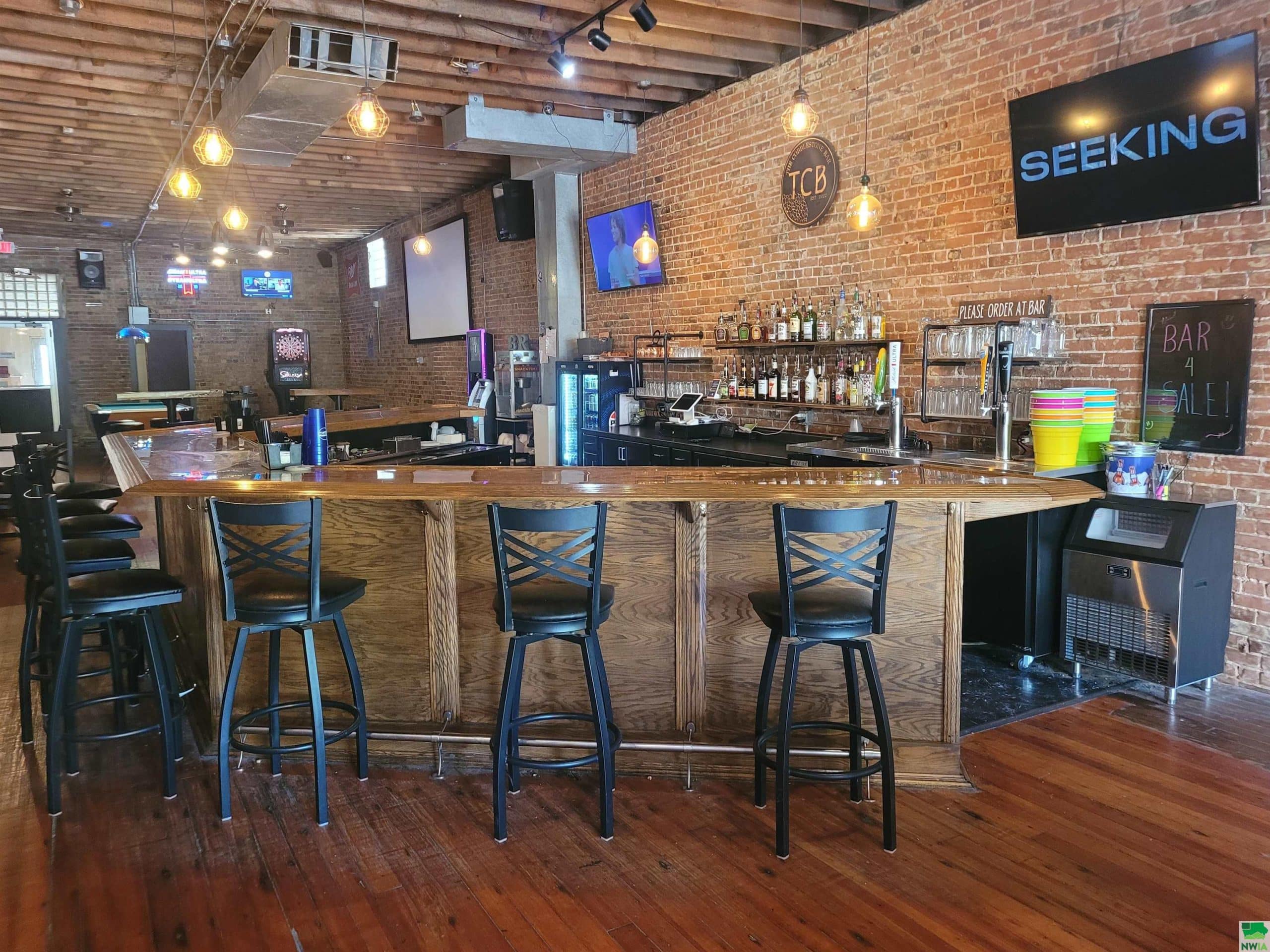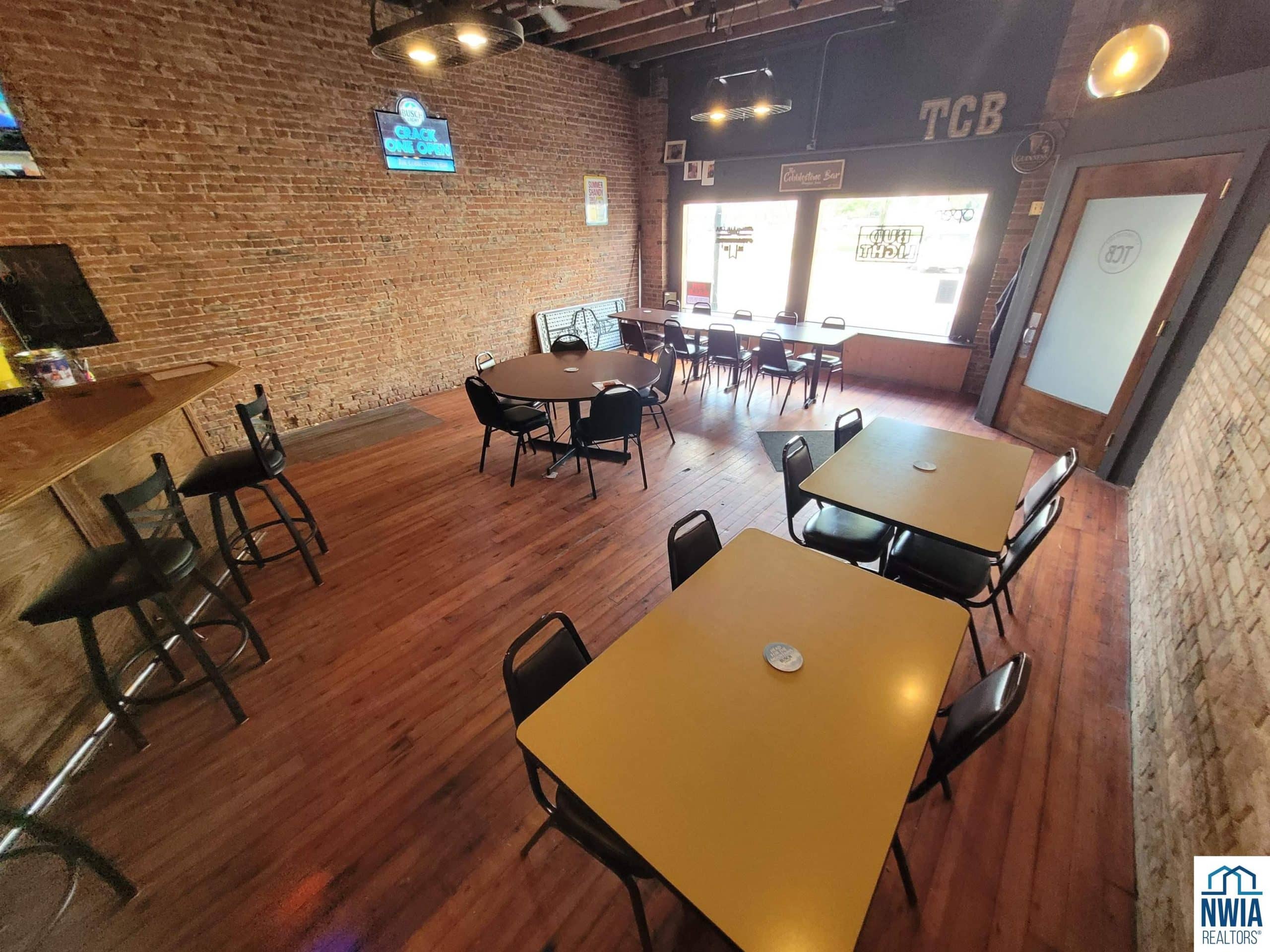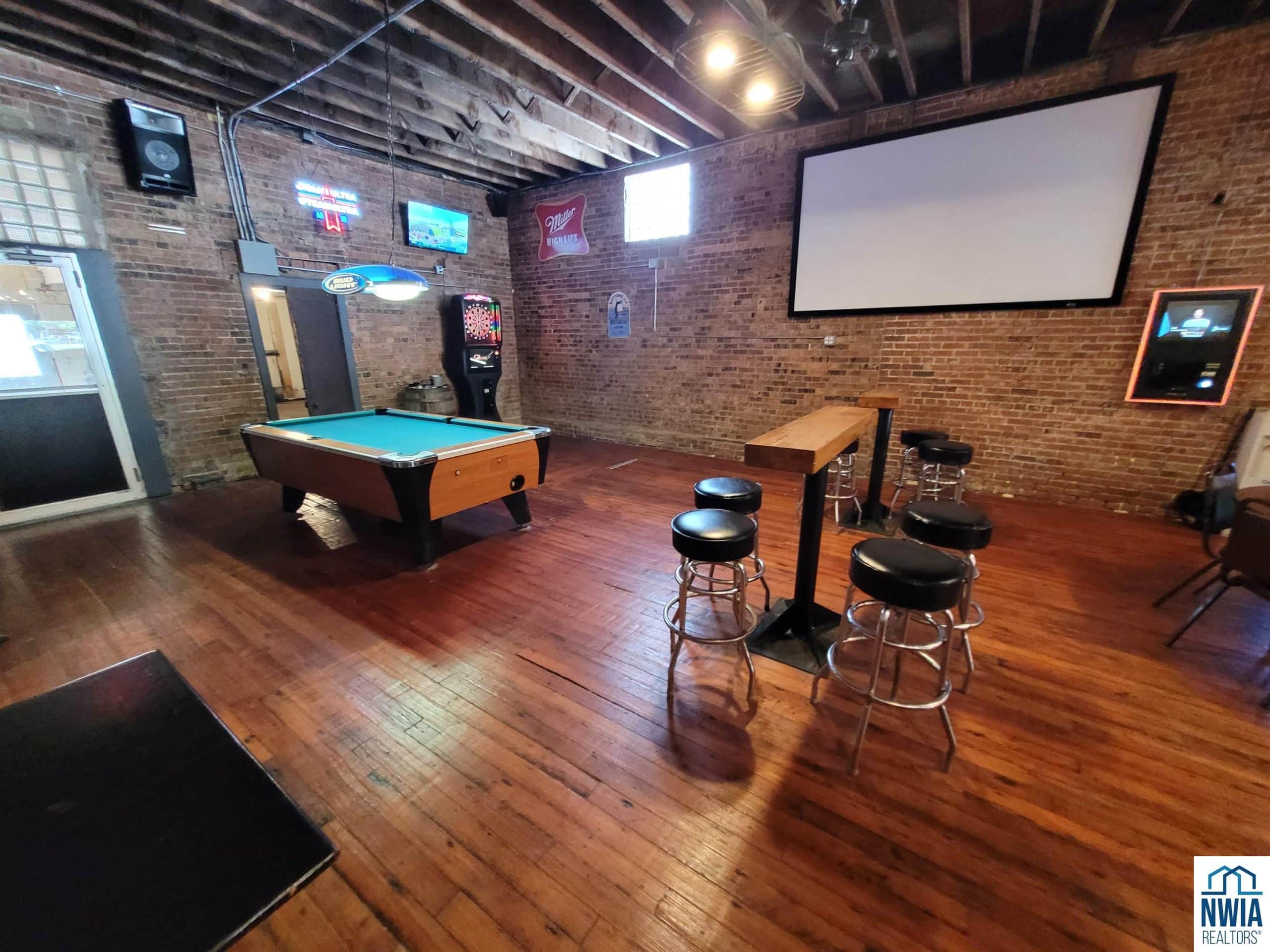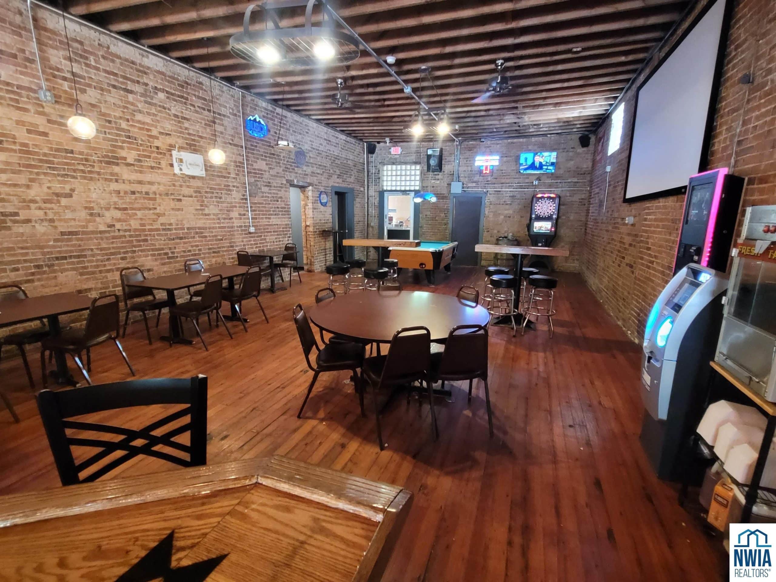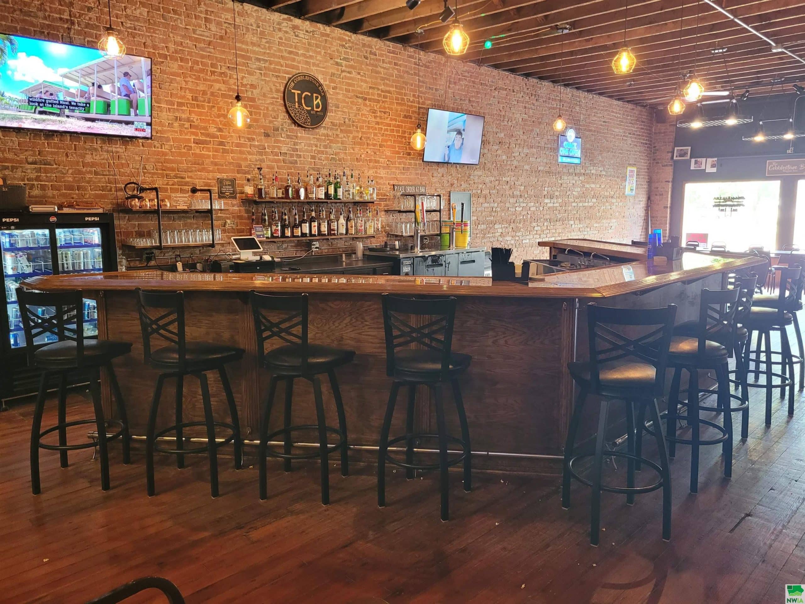 Have you ever had the dream to own and operate your own business and have the enjoyment of daily social interactions with people while you do it? If so, this could be the perfect fit for you! The Cobblestone Bar is located in the heart of the business district on the town square in Primghar, Iowa. The main floor has been restored in a way to capture the natural rustic charm that many people appreciate. The brick walls, wood flooring, oak wooden bar, exposed structure ceilings and Edison bulb lighting, all add to the rustic feel. The owners have added four large screen TV's through out the building for bar patrons to be able to watch their favorite sporting events. They even have a large screen and projector in the gaming area to show the featured games of the week. The adjacent room could be used as a meeting room or party room for special functions. It has a large sliding door in the center of the room that opens up into the bar area. There is plenty of well lit, parking in front of the building and the street out front often times is set up for large community gatherings throughout the warm seasonal times of the year. The owners are including several pieces of kitchen equipment in the sale if the new owners would like to develop the restaurant side of the business.