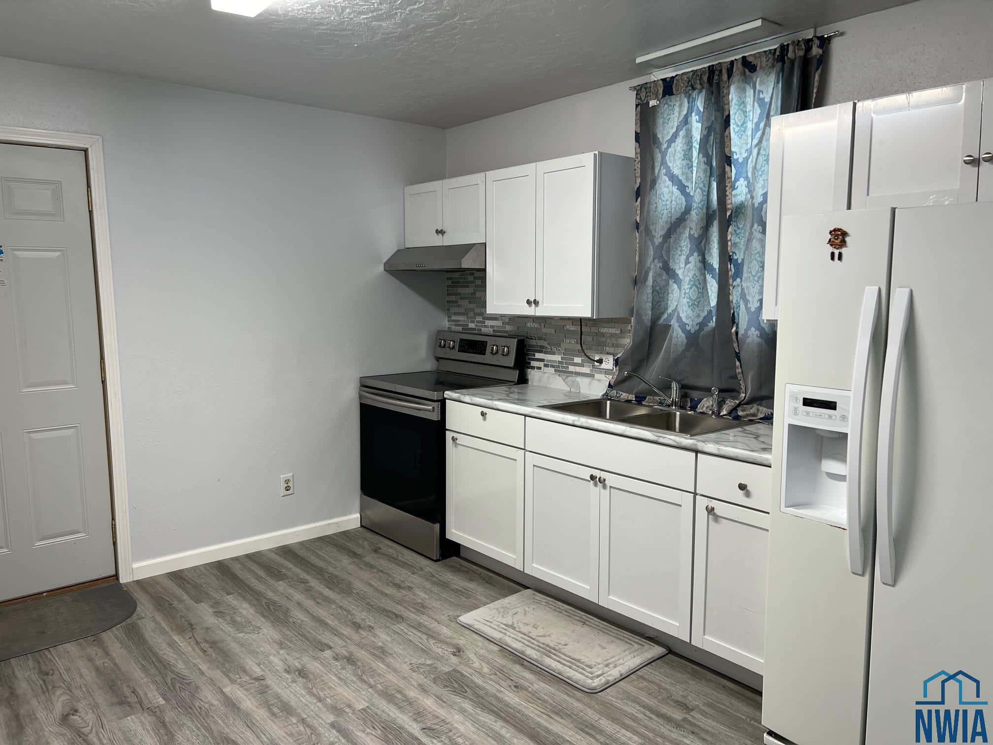 Check out this cute Westside 2 bedroom, 1 bath home with single attached garage located off concrete alley. Lots of new here: all new paint, vinyl flooring, light fixtures, kitchen cabinets, counters, sink, range & backsplash, all new vinyl windows (except living room facing enclosed porch), bathroom updated as well & newer roof. Lots of storage here, basement is partially finished, enclosed front porch & yard is fenced. Located within walking distance to Liberty Elementary School.