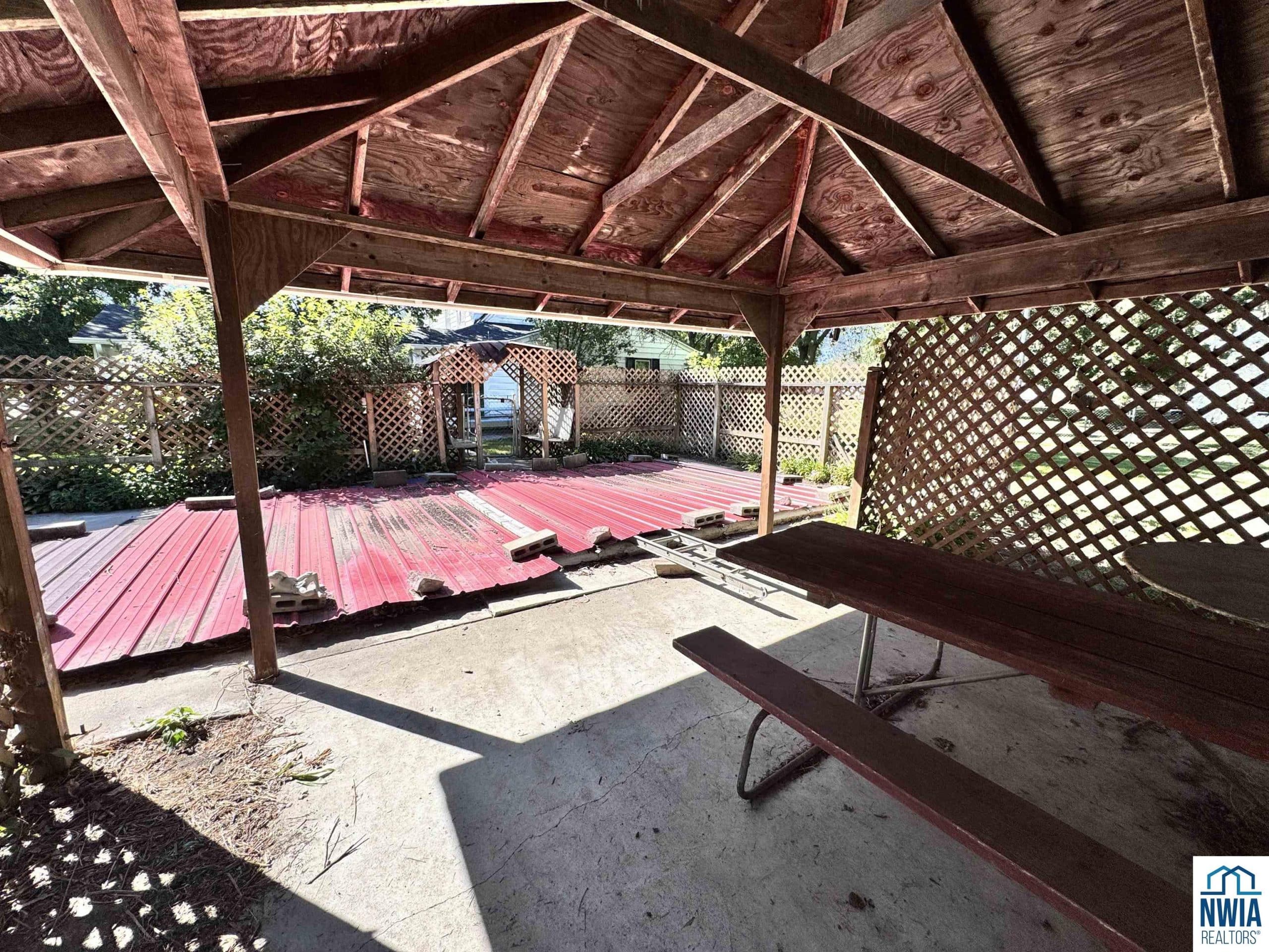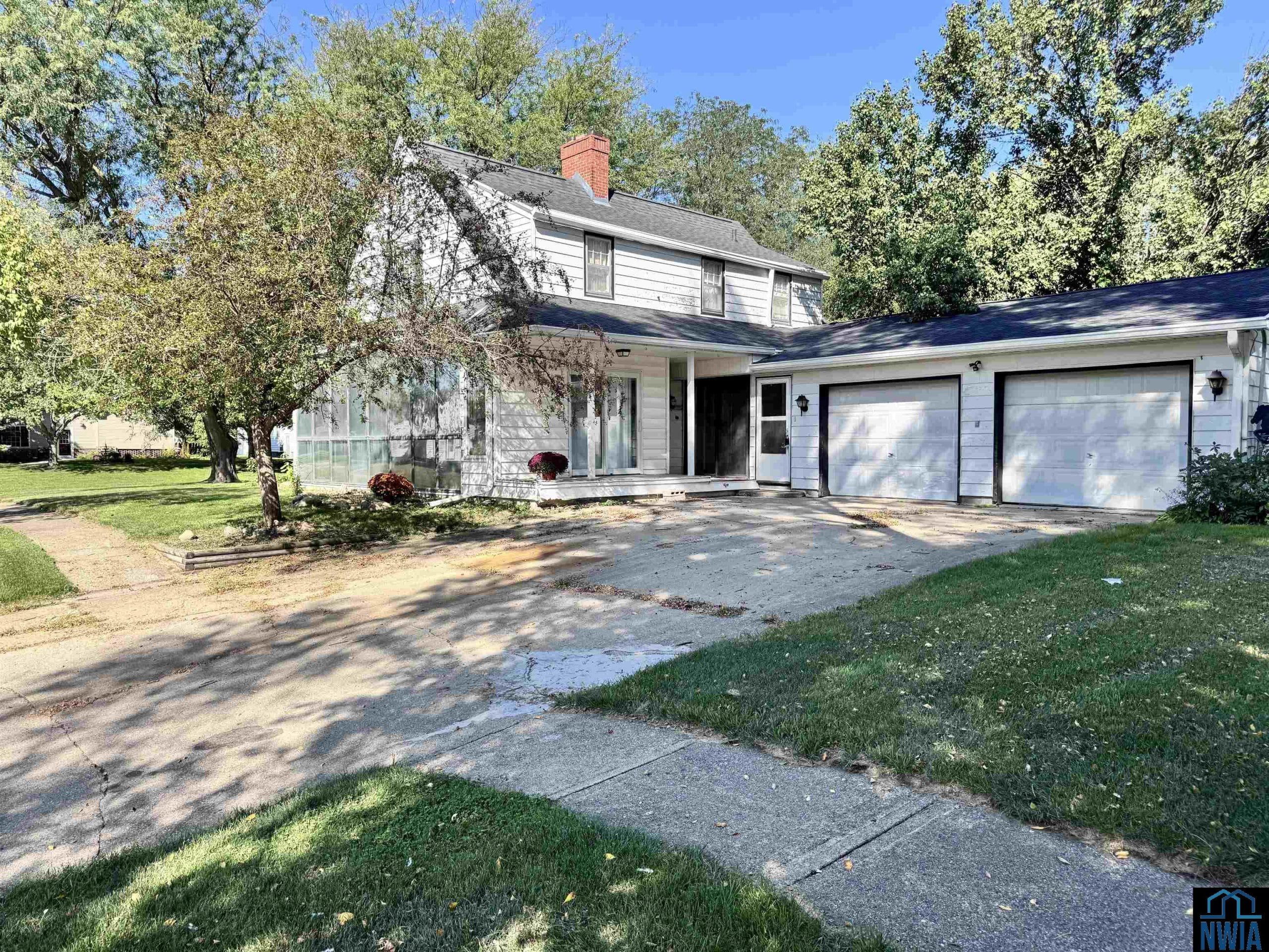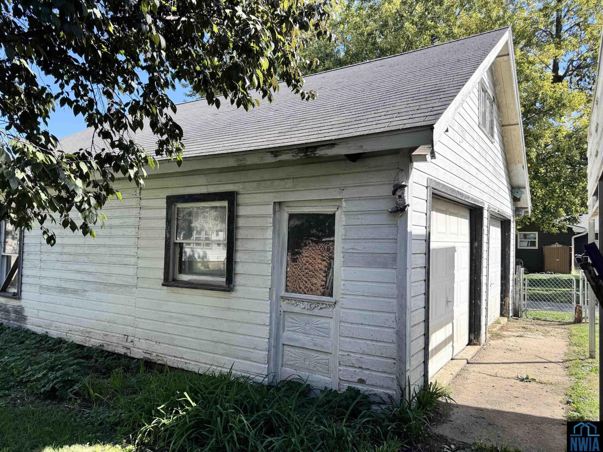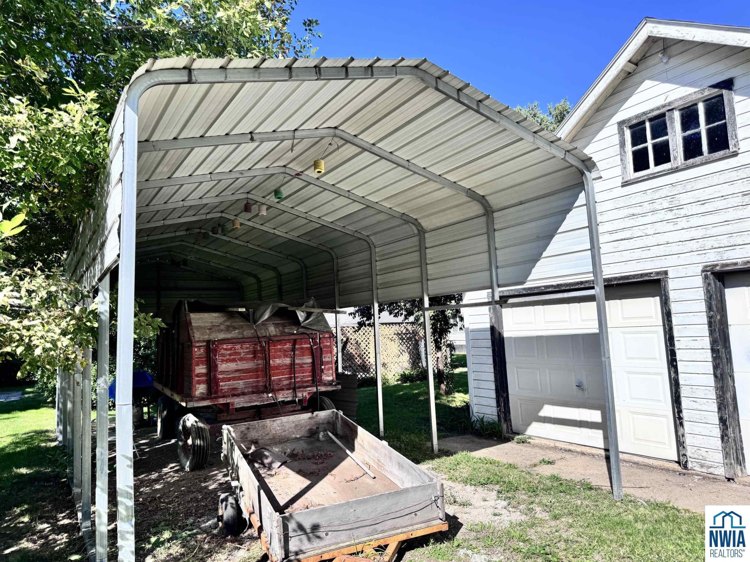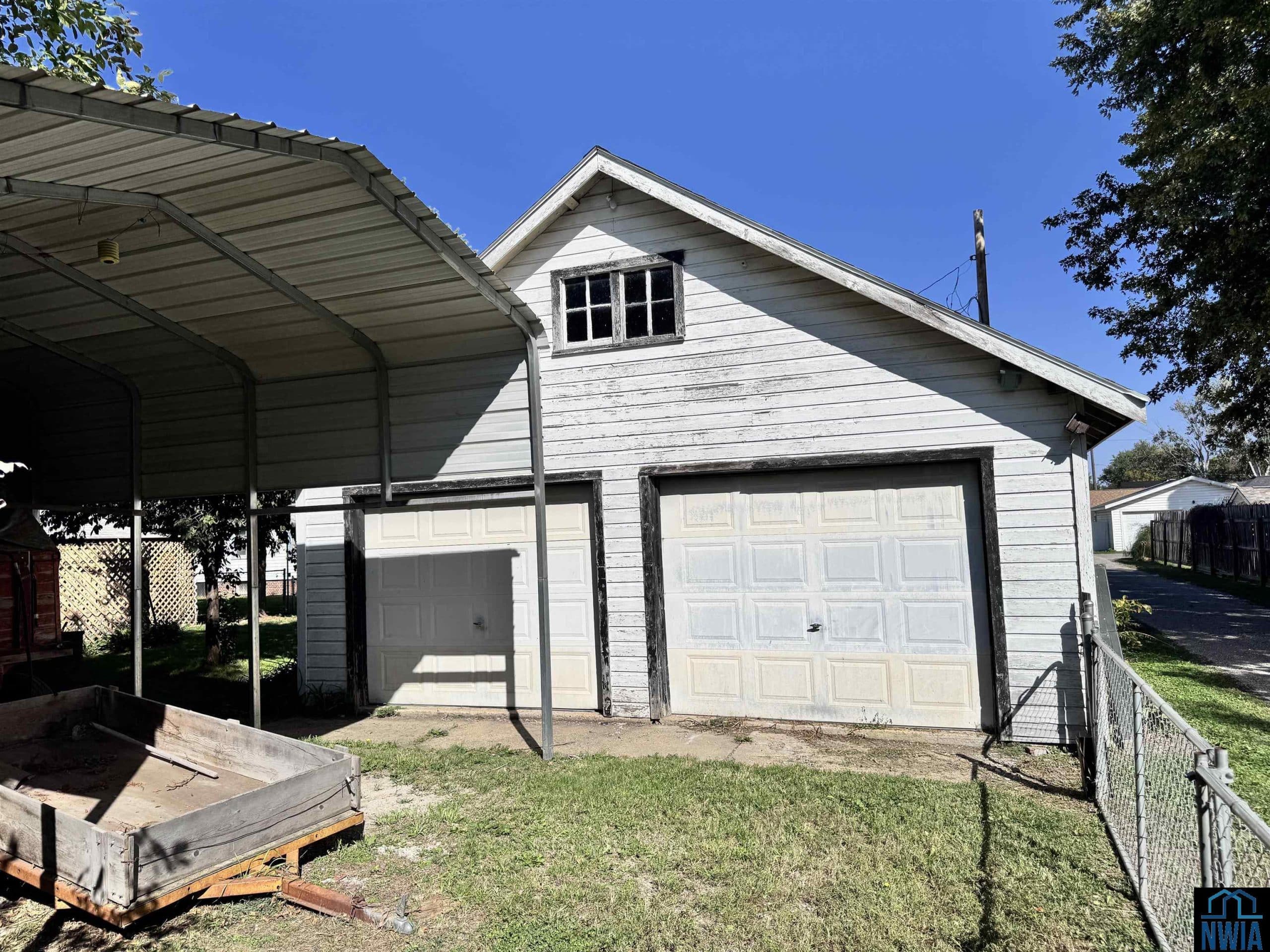 Check out the curb appeal of this beautiful 2 -story home that sits on 2 full city lots. The outside of the home is stunning with a NEW black roof ,white steel siding, and covered front porch. The 2-car attached garage sits on the side of this house for easy off street parking. There is also a detached 2 car garage and carport off the back alley for more storage of lawnmowers, gardening tools, or extra vehicles. The fenced in portion of this side yard is whimsical with the gorgeous landscaping. Within the fenced in yard you have an inground concrete pool, mature trees, a patio, and a covered pavilion. It feels like a small acreage within city limits. Inside the home you have two bedrooms on the main floor, a formal dining room, a half bath, and a sunporch off the kitchen. With the original hardwood floors that could be refinished underneath carpet in the Livingroom, this home has so much potential. Upstairs you have high ceilings and two more bedrooms with a full bath. The bedrooms each have original hardwood flooring and a desk area overlooking the upstairs windows. Each upstairs bedroom also has double closet spaces. The basement of this home is unfinished and contains the utilities, along with an upgraded furnace. The air conditioning unit has also been upgraded. The basement also has its own storm shelter, which is a great spot to go during storms and for extra storage. The sunporch off the back of the house has already been screened in and is a nice spot to relax to enjoy the views of the yard. This home has so much character and with that yard it is a must see.