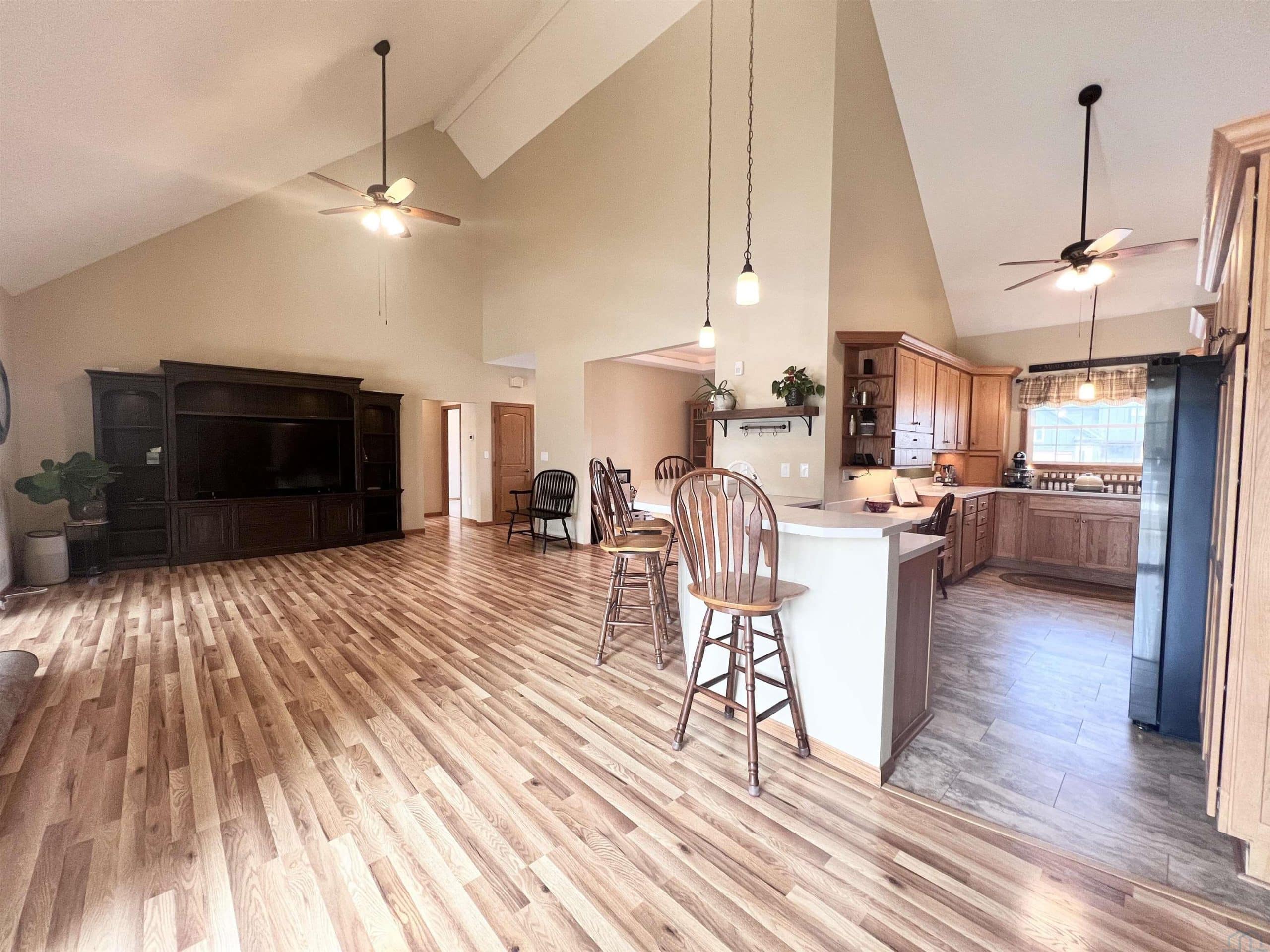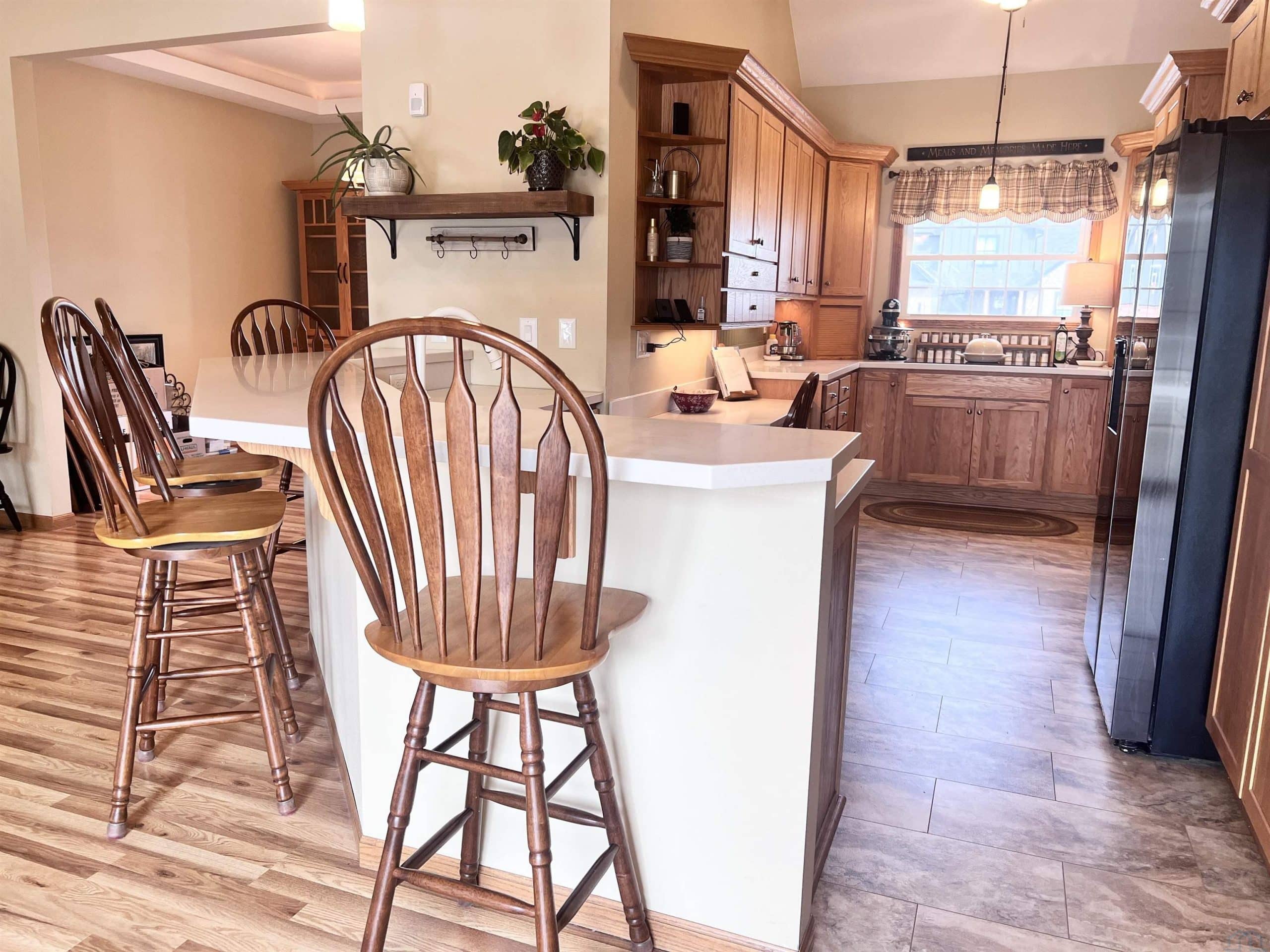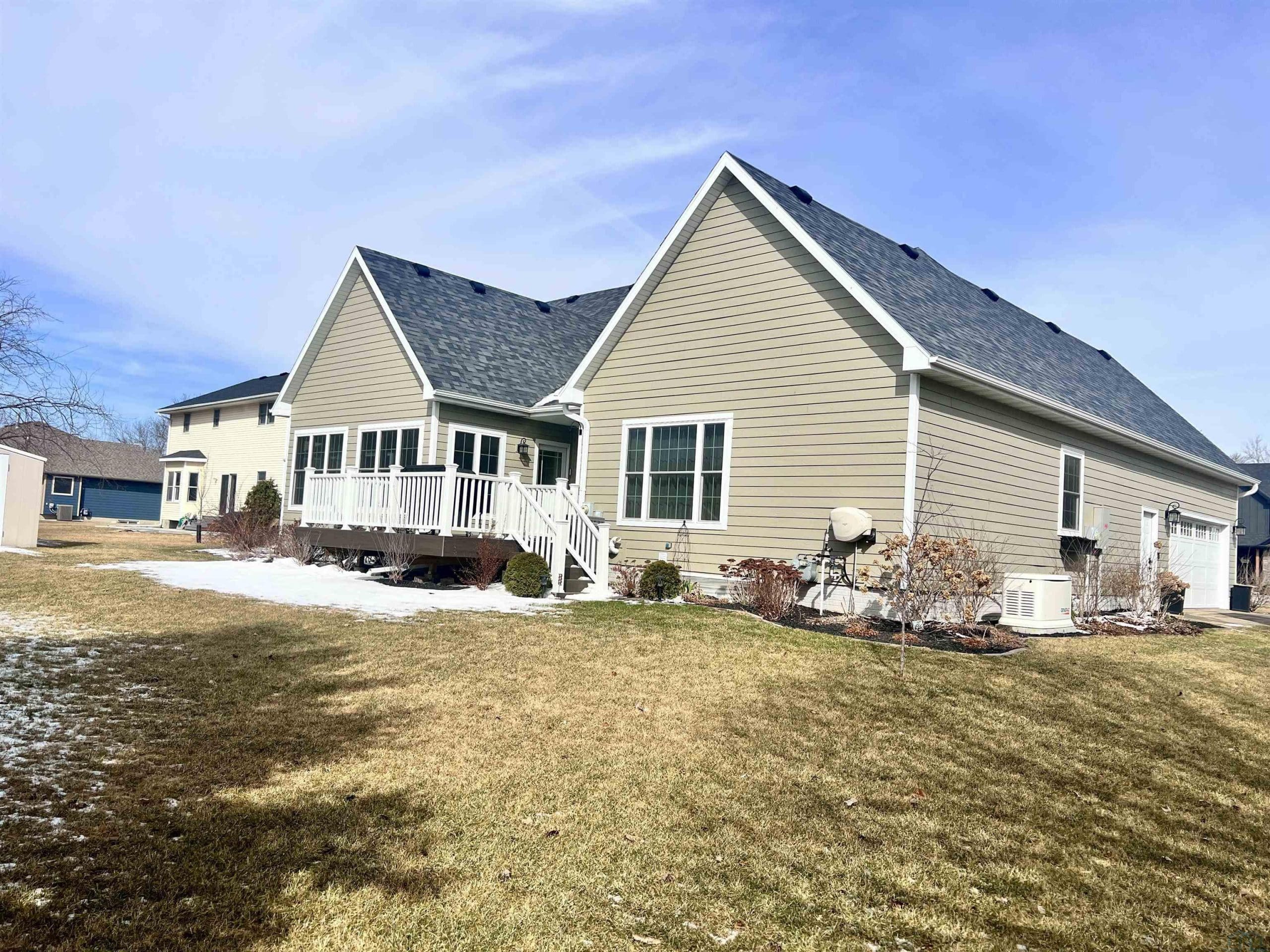 The quality of construction as well as the care and attention sellers have infused into this beautiful home are totally apparent from the exterior to the first steps inside and beyond. Besides an abundance of space (over 4000 finished square feet) the sellers have improved the value of this home with many big ticket projects (see detailed list) that mean years of carefree living for the next lucky owner. Some of those include entirely new Smart Siding, new windows throughout, new high impact shingles, gutters, Trex deck, garage door, heater in garage, whole house generator, new kitchen appliances, new flooring, new tankless water heater... and so much more. Additionally, there are so many unique features that distinguish this home including a dramatic 2 story vaulted ceiling in the main living area, brand new combination laundry room/pantry with beautiful cabinetry (roll out shelving, sink, loads of storage) from Dakota Kitchen and Bath, a second full kitchen with 9x9 walk in pantry in the lower level, large 4 season room, and a bonus room above garage, to name a few. Open concept main floor living area includes large living room, formal dining, dinette, 4 season room and kitchen which has ample cabinetry, again with several roll outs, and a raised breakfast bar with seating for 4. There are 5 bedrooms, three on the main floor and two down. All closets have clothing and storage organizers installed. Baths include a full master, second full main floor and 3/4 bath in lower level. Plenty of storage space and an additional lower level room perfect for office, workout or crafting. Extra 10x9 workspace in heated garage. Gas furnace, two tankless, gas on demand water heaters, and Kinetico water conditioner. All this located adjacent to the golf course and swimming pool! If you're after quality and need space, this is the home for you!