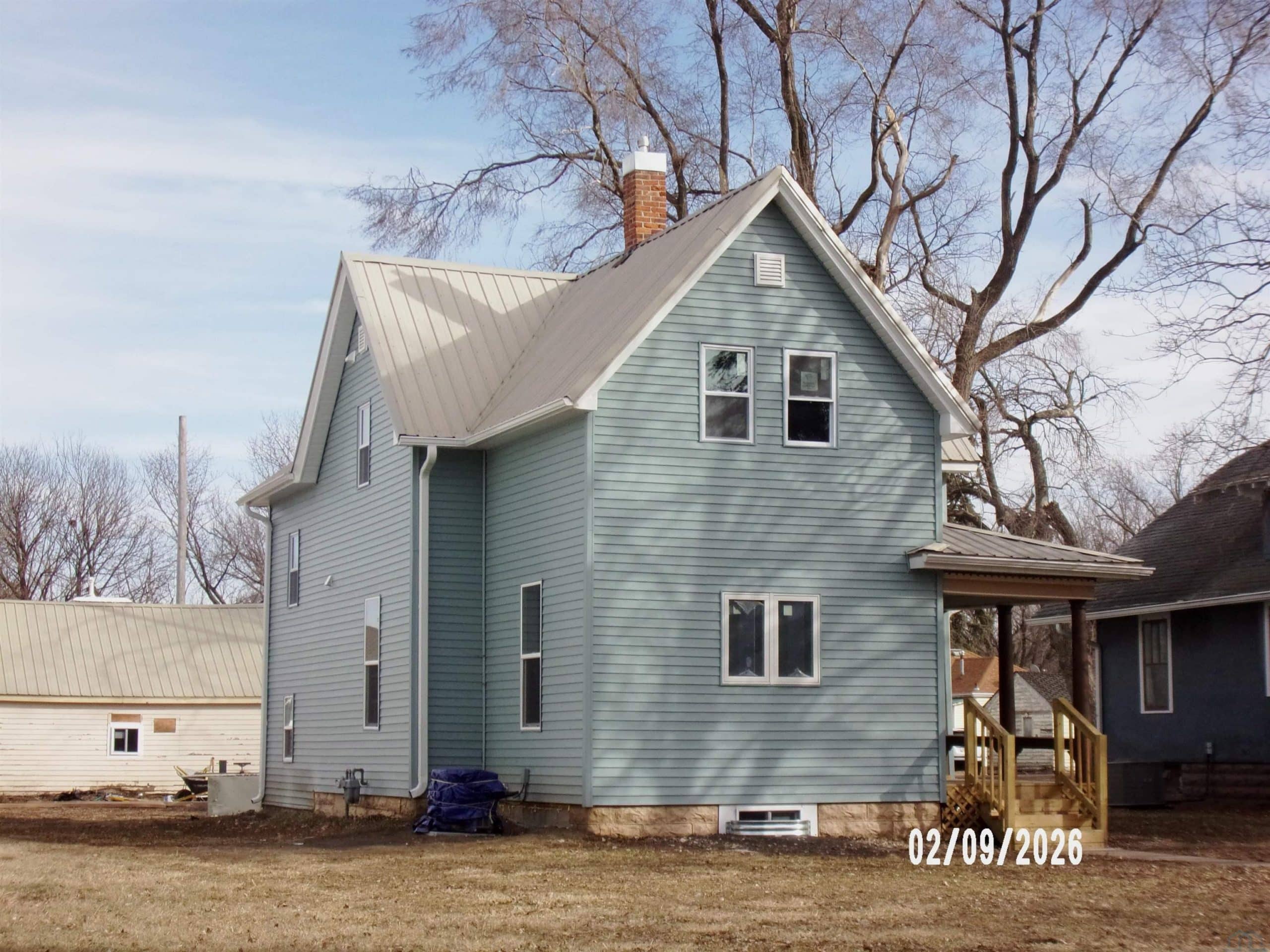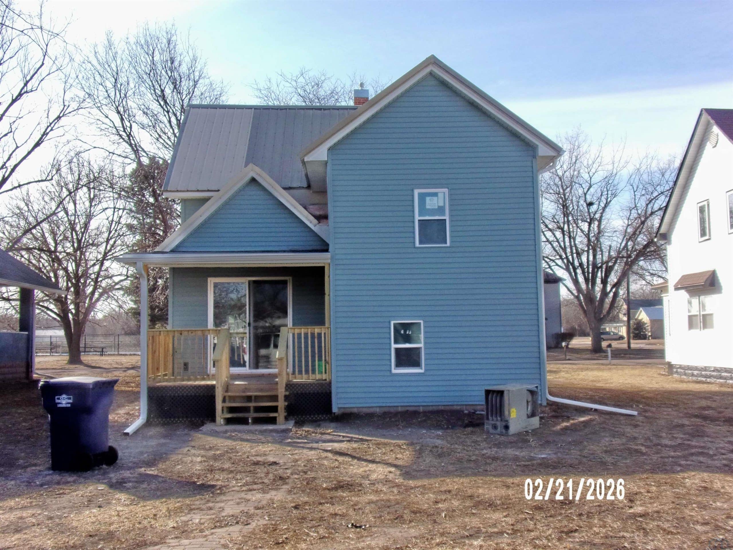 One and a half story home with a recent complete renovation. Great location on quiet street close to swimming pool, park, daycare, and school. Main level has an eat in style kitchen and dining area, living room, 3/4 bath, large laundry room, and an extra room for den (currently used as a bedroom but has no closet). Upper level has three bedrooms and a full bathroom. Home has a front porch (12 x 7) and back porch (5 x 10) as well as a large two stall attached garage off of the alley (22 x 26).