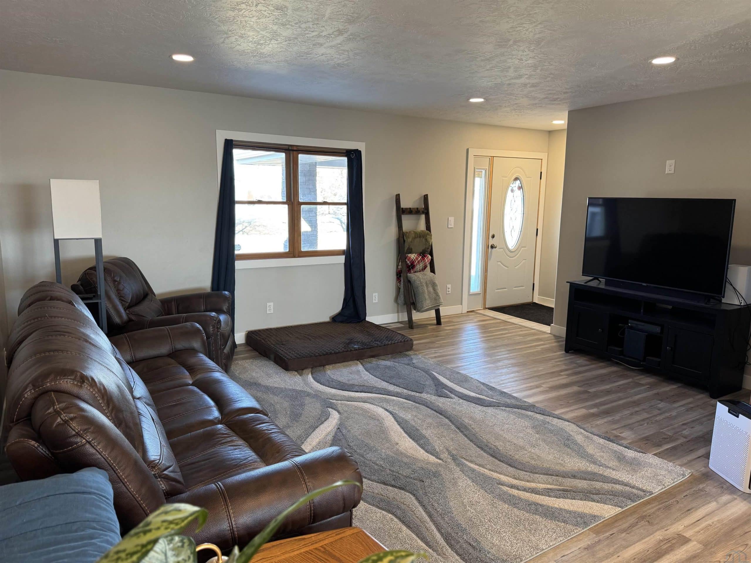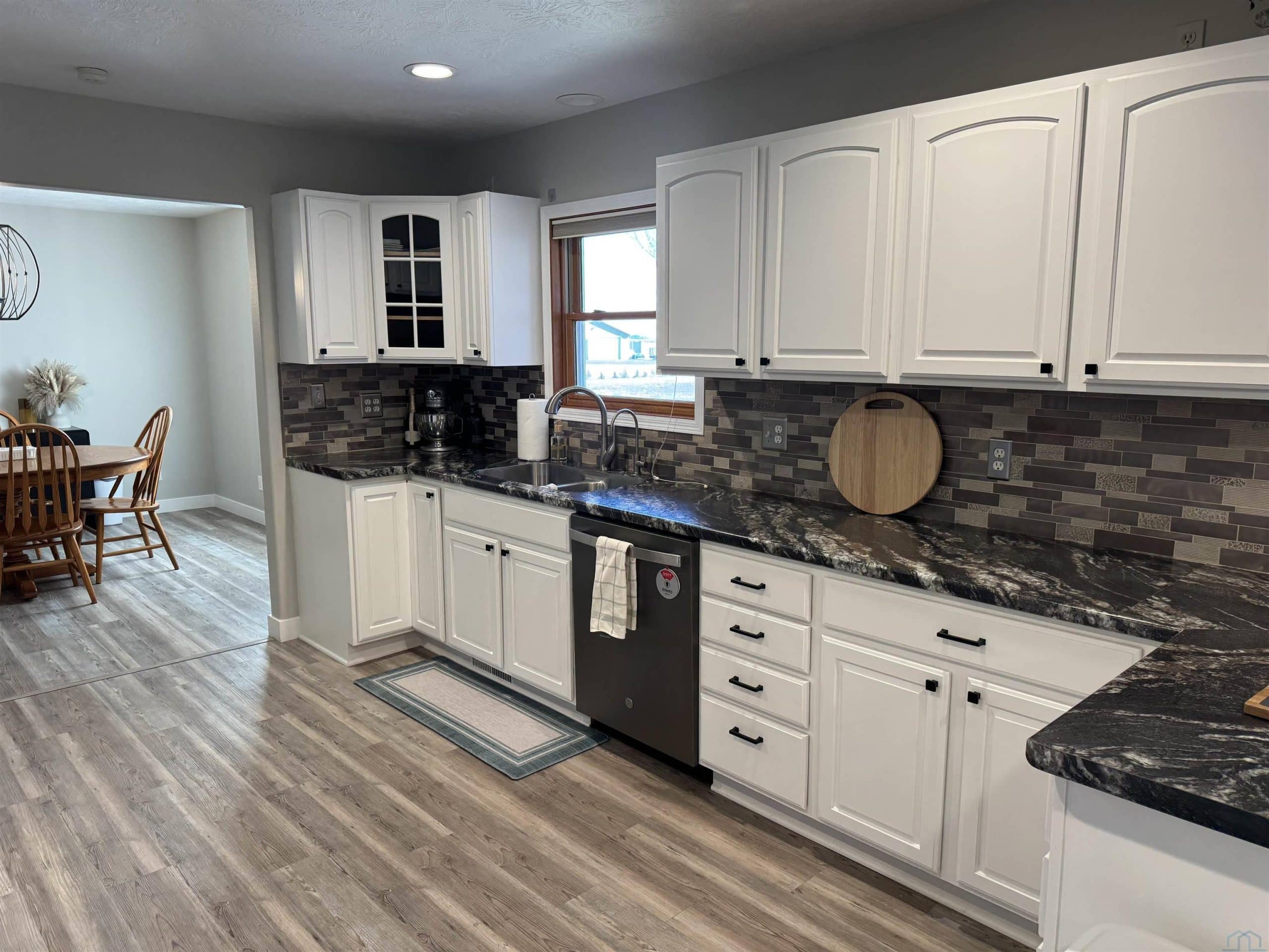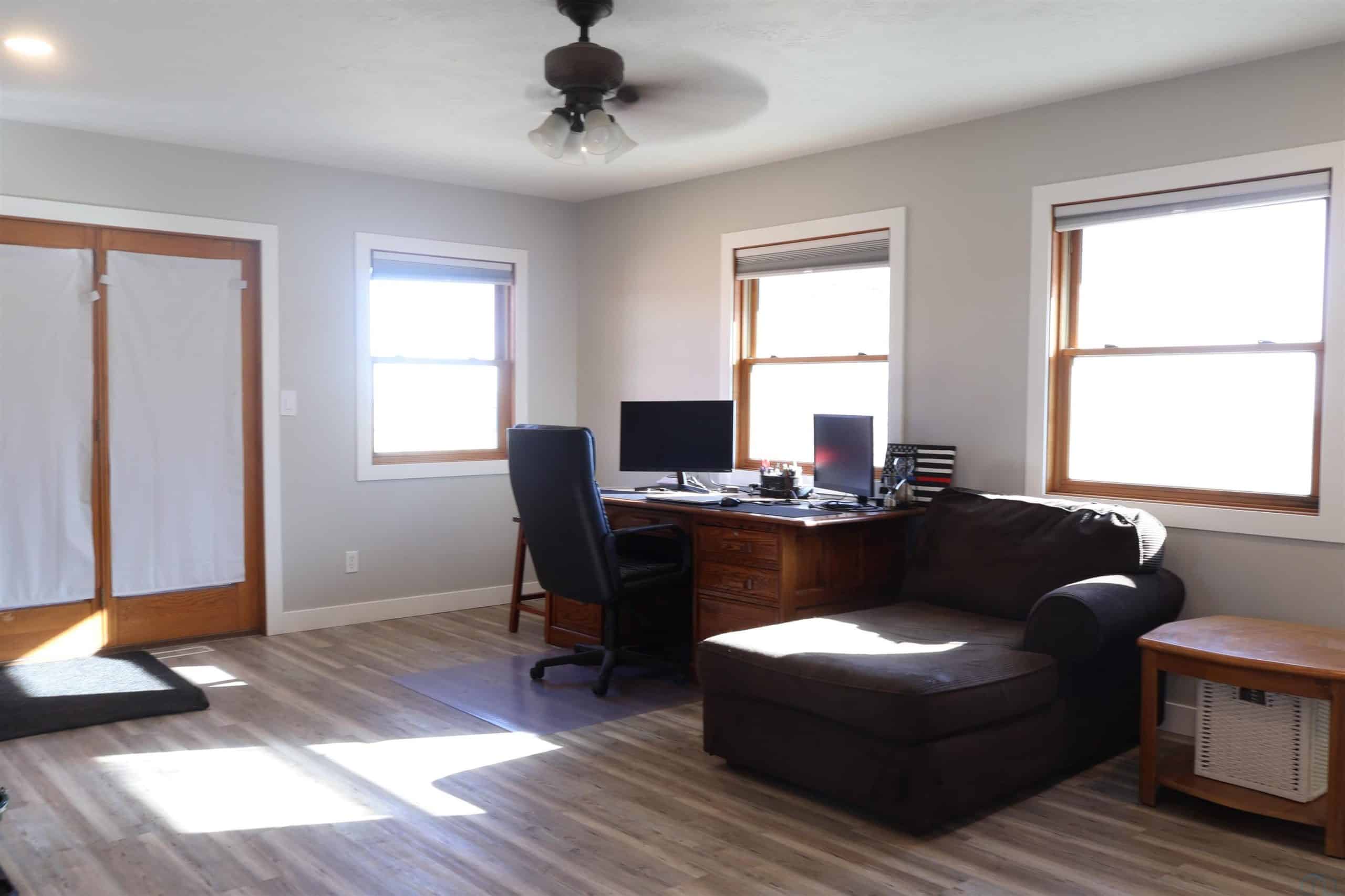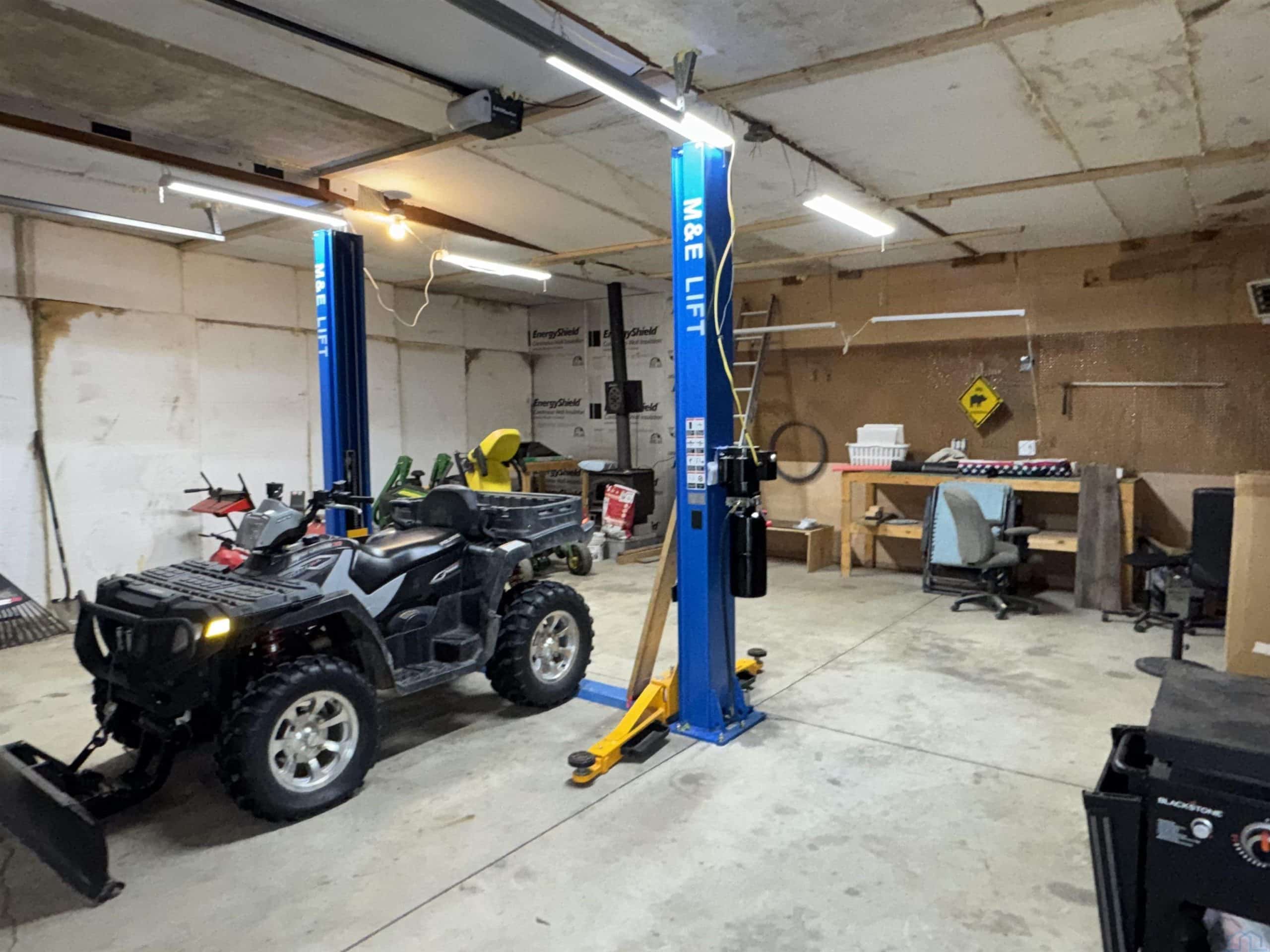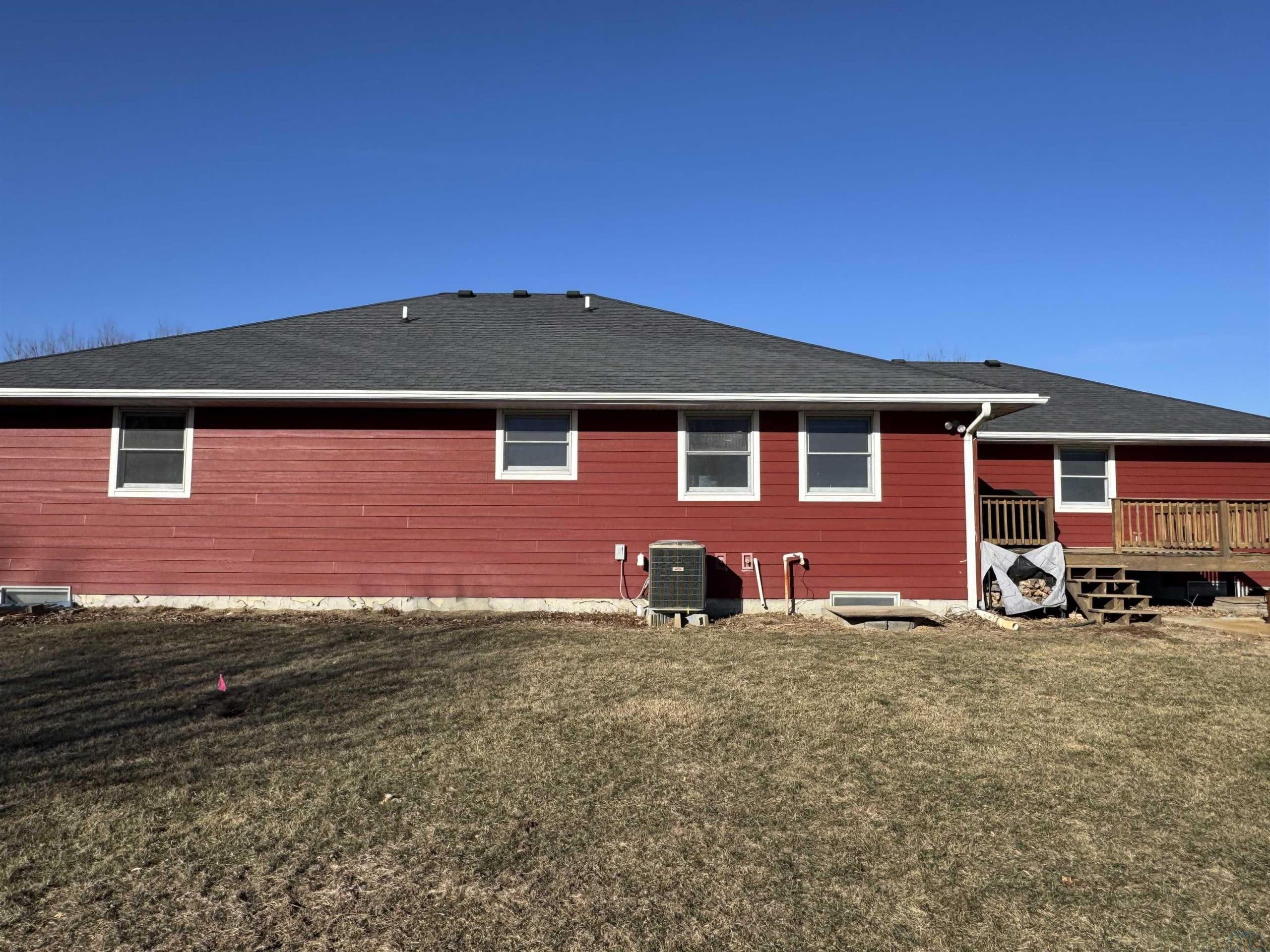 Experience the blend of country living and convenience on this stunning 2.2 acreage, located on a hard-surface road just minutes from Interstate 29 and Sergeant Bluff. This impressive 4-bedroom ranch-style home offers approximately 3,600 square feet of thoughtfully designed living space. The main level features two spacious gathering areas, an eat-in kitchen with tile backsplash, and a convenient laundry room complete with cabinetry and utility sink. The primary suite is located on the main floor, along with a separate suite. A sun-filled family room/sunroom at the back of the home features tile flooring and access to the 18â x 14â deck, perfect for enjoying the peaceful acreage views. A half bath completes the main level. The finished lower level offers an expansive living room with a wet bar including sink, dishwasher, and refrigerator. Two additional bedrooms each feature egress windows and double closets, along with a den/office with French doors and egress window ideal for a home office, gym, or guest space. Outside, the property truly shines. The 2.2 acres are fully irrigated by a sprinkler system reaching every corner, fed by a 75-foot well. Enjoy mature apple and peach trees, raspberry bushes, asparagus, raised garden beds, and a partially fenced area just off the large back porch. A 1,000-gallon owned propane tank adds to the propertyâs efficiency. Car enthusiasts and hobbyists will appreciate the 30â x 50â heated shop with a 2-post car lift, as well as the oversized heated 3-stall attached garage.