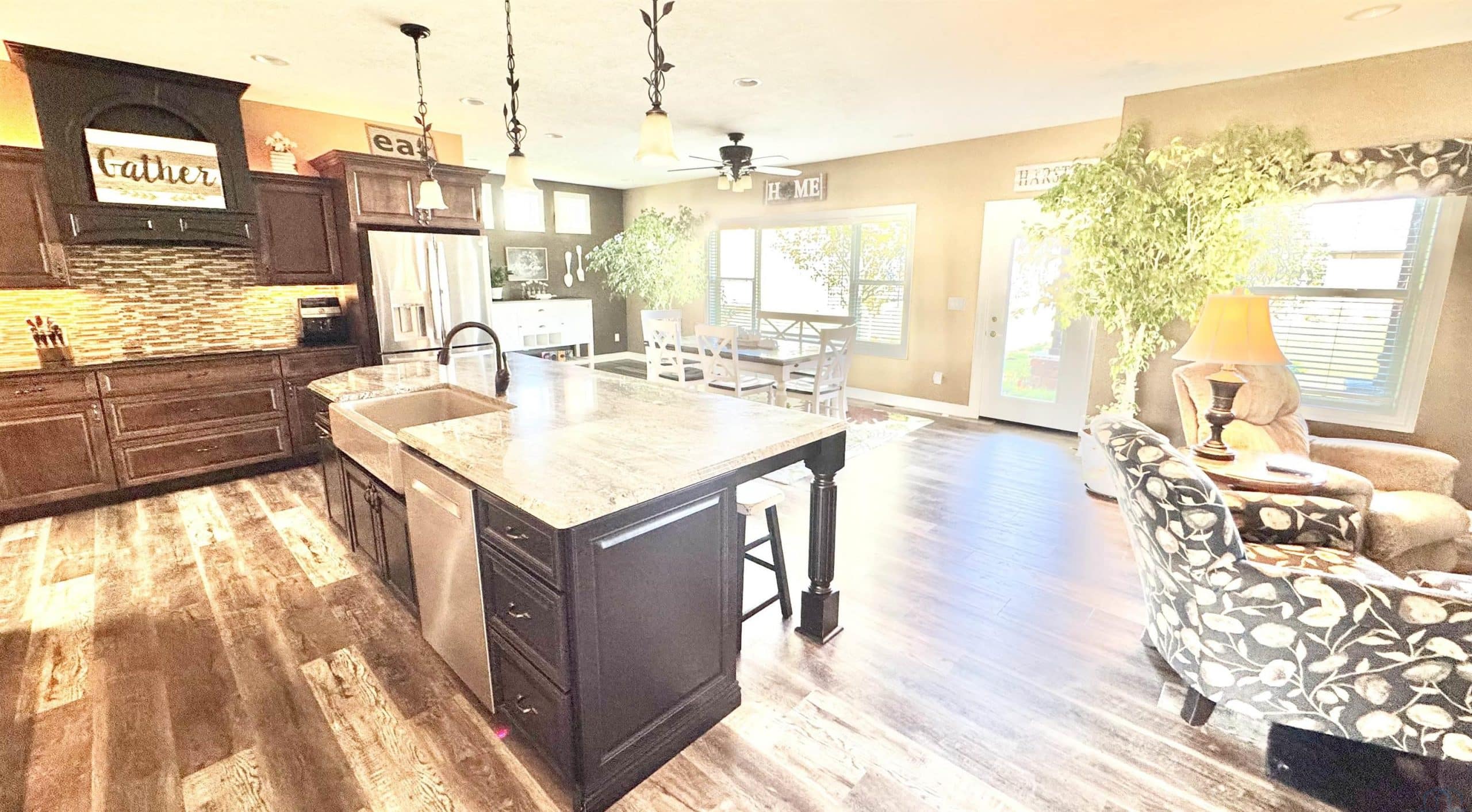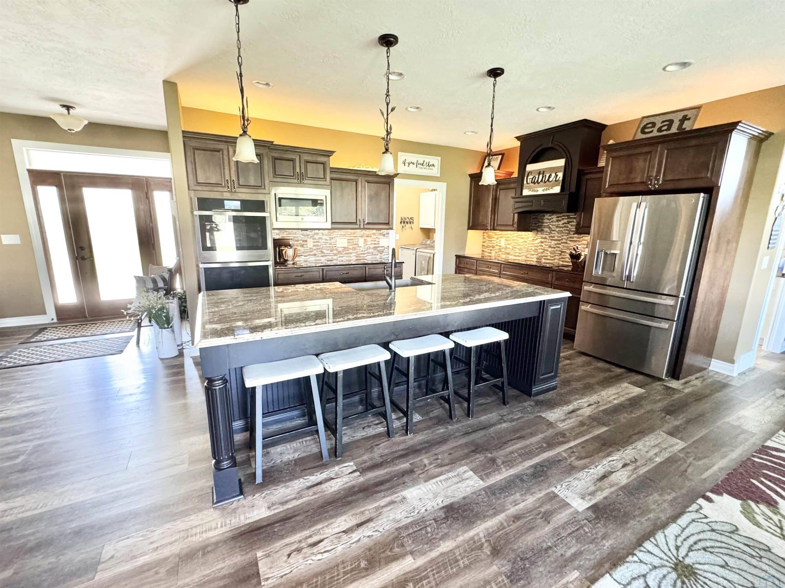 Custom built, pride of ownership, one owner home on cul-de-sac in South Sioux City. This SIX bedroom 3 bathroom home has curb appeal and too many upgrades to list. Walking in the home the open concept living, kitchen and dining area has all the natural light in the daytime and a cozy feel in the evenings. The living room features a stone fireplace, tray ceiling and LVP floor. The kitchen is a chefs dream with double ovens, a large island and WOW a fantastic pantry. Off the dining area is a door to a covered poured concrete patio. It's a perfect place to sit and enjoy the beautiful landscaping and established birch trees throughout the flat yard. The laundry room, on the main floor by the garage entrance, complete with a sink, drop zone area, hooks and storage space. The master bedroom has a spa like bathroom with soaker tub, tile shower, walk in closet and double vanity. Two additional bedrooms with double closets on this level. Full bathroom with granite vanity and tile floor, located in the hall near these bedrooms. Multiple storage closets throughout the main floor. The lower level has an additional THREE bedrooms all with large closets, carpet and egress windows. The den without a window is a space to be creative in. Spacious living space with lush carpet, a 3/4 bathroom with a double vanity, shower, glass surround and LVP floor and barn door. This home is tucked away in an established neighborhood with walking trails and wildlife. Before you look at building from scratch everything is here at 149 Rottunda Way, take a look! Just in time for the holidays.