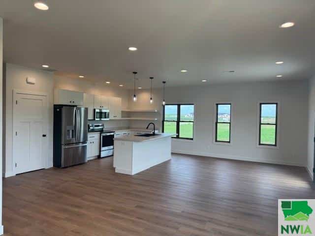 Welcome to your dream home! This brand new 3-bedroom, 1.75-bathroom residence combines modern design with thoughtful functionality in every detail. Featuring a zero-entry (step-free) entrance, this home offers ease of access. Step into an open floor plan that seamlessly connects the kitchen, dining, and living areasâperfect for entertaining and everyday living. Enjoy the luxury of in-floor heating not only in the home but also in the attached garage - a rare and cozy upgrade for Iowa winters. Flooded with natural light, the interior feels bright and welcoming. Outside, you will appreciate the established lawn, continuous landscape curbing, and a cozy patio to extend your living space outdoors. This home truly checks all the boxesâstyle, comfort, and move-in ready.