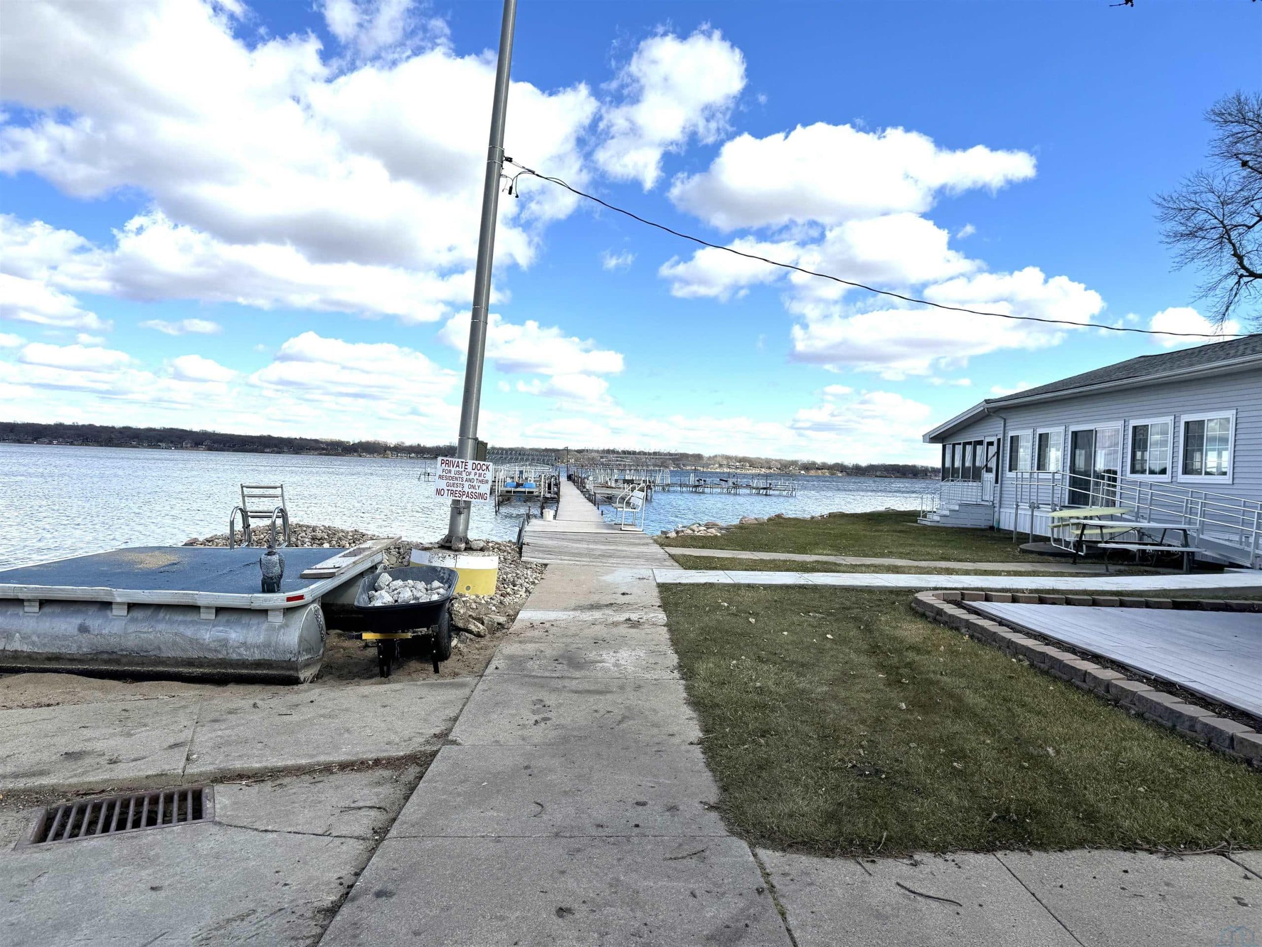 Enjoy West Okoboji in this beautiful 2 bedroom, 2 bathroom year round lake home in PMC on the North Bay of West Okoboji. This property offers all the benefits of a fantastic sandy beach, raft, clubhouse, hoist space, and a beautiful view. This home features a single-level design with an open floor plan that combines the kitchen, dining, and living areas, along with two spacious bedrooms. You can enjoy this quiet community with all the benefits of West Lake in an association that takes care of the yard work. Okoboji sunsets are calling with the perfect view from your front deck. You can enjoy the Okoboji lifestyle on the bike trail, easy highway access, Arnolds Park, and water sports. Don't miss this rare opportunity to start making memories the Okoboji way at a great price.