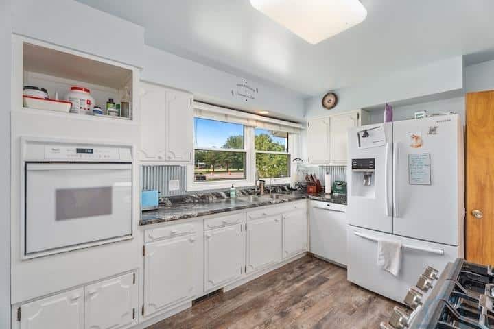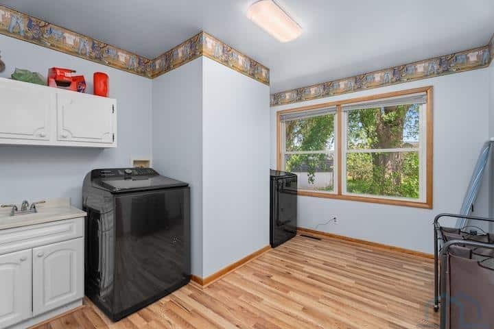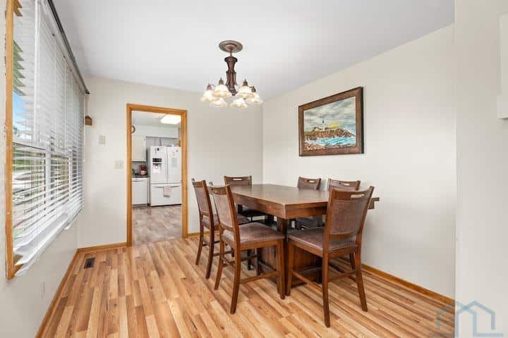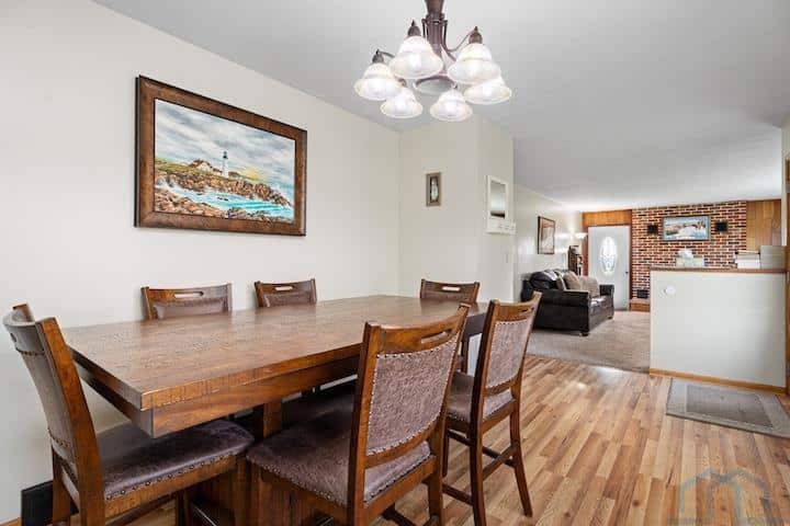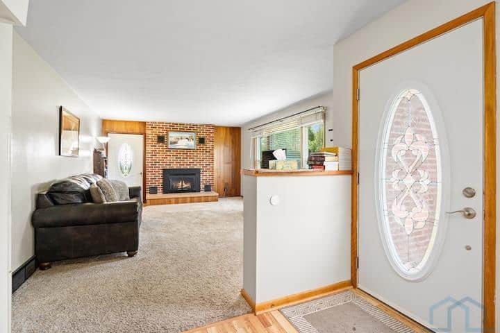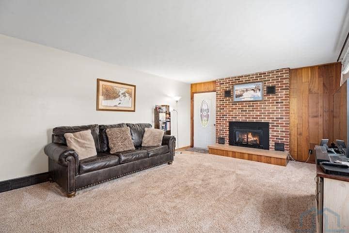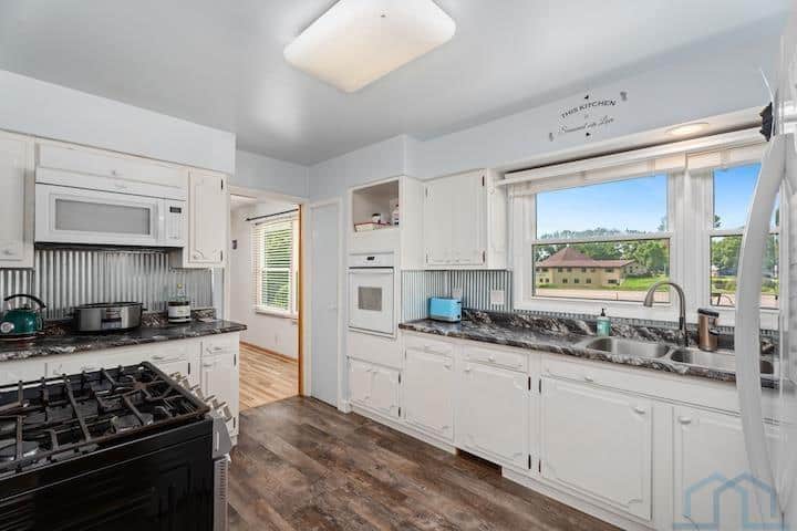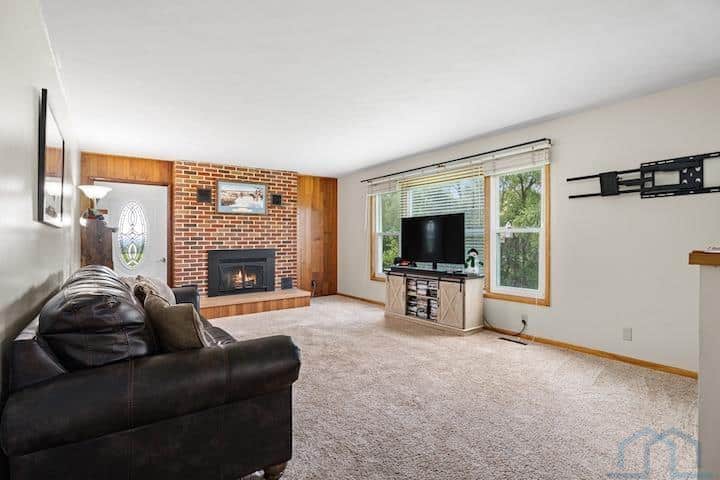 This mid-century ranch home is situated on a spacious .94-acre lot in the city of Vermillion. One of its standout features is the stunning western view of the Missouri River Valley, which can be enjoyed all day from the patio on the west end of the house. Inside the house, you'll find alovely living room with a fireplace that opens up to the dining room, creating an open and inviting space. Adjacent to the dining room is the kitchen, which is equipped with a wall oven and a freestanding oven, providing ample cooking options. The main floor of the house features two bedrooms, a bathroom, and a bedroom that has been converted into a laundry room, offering convenient main floor living. The primary bedroom on this level also boasts an en suite half bath for added convenience and privacy. Most of the windows in the house have been replaced, ensuring energy efficiency and afresh aesthetic. Additionally, important updates such as the roof, gutters, flooring, and septic system have all been completed within the last seven years. And if hardwood floors is preferable to you, you can see the original ones by the west end patio door. The basement of the house has a captivating mid-century vibe, with built-in shelving, a bench, and a fireplace, adding to the charm and character of the space. This basement area has great potential and can serve as a versatile family room or entertainment area. It also includes a basement bedroom and bathroom, providing additional living space. Moreover, there is a large storage room in the basement, perfect for storing belongings, as well as utilities. The garage has been insulated and features its own furnace, allowing for a comfortable working environment even during colder months. Overall, this mid-century ranch home offers a blend of modern updates and mid-century charm, making it a desirable property with plenty of potential for comfortable living.