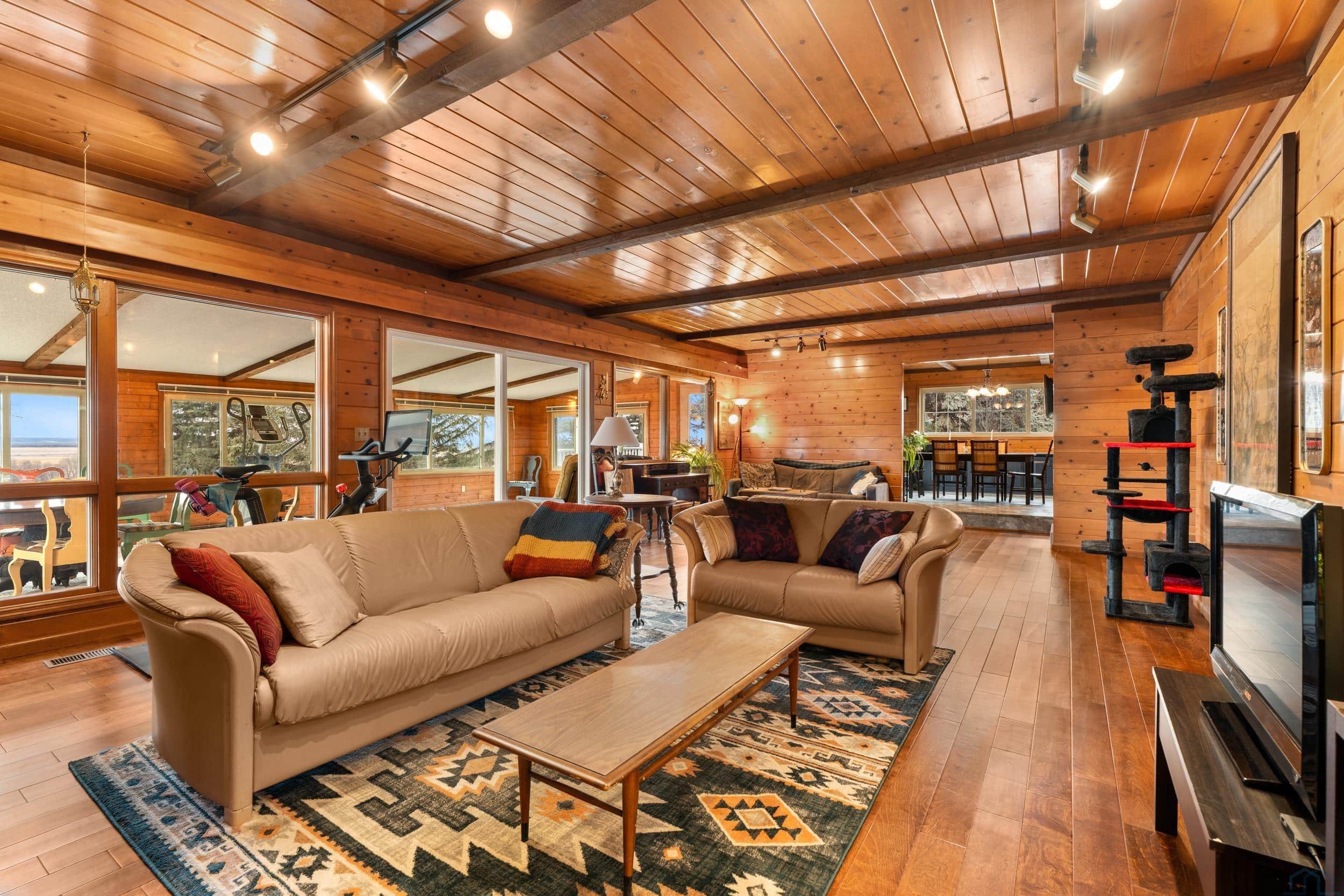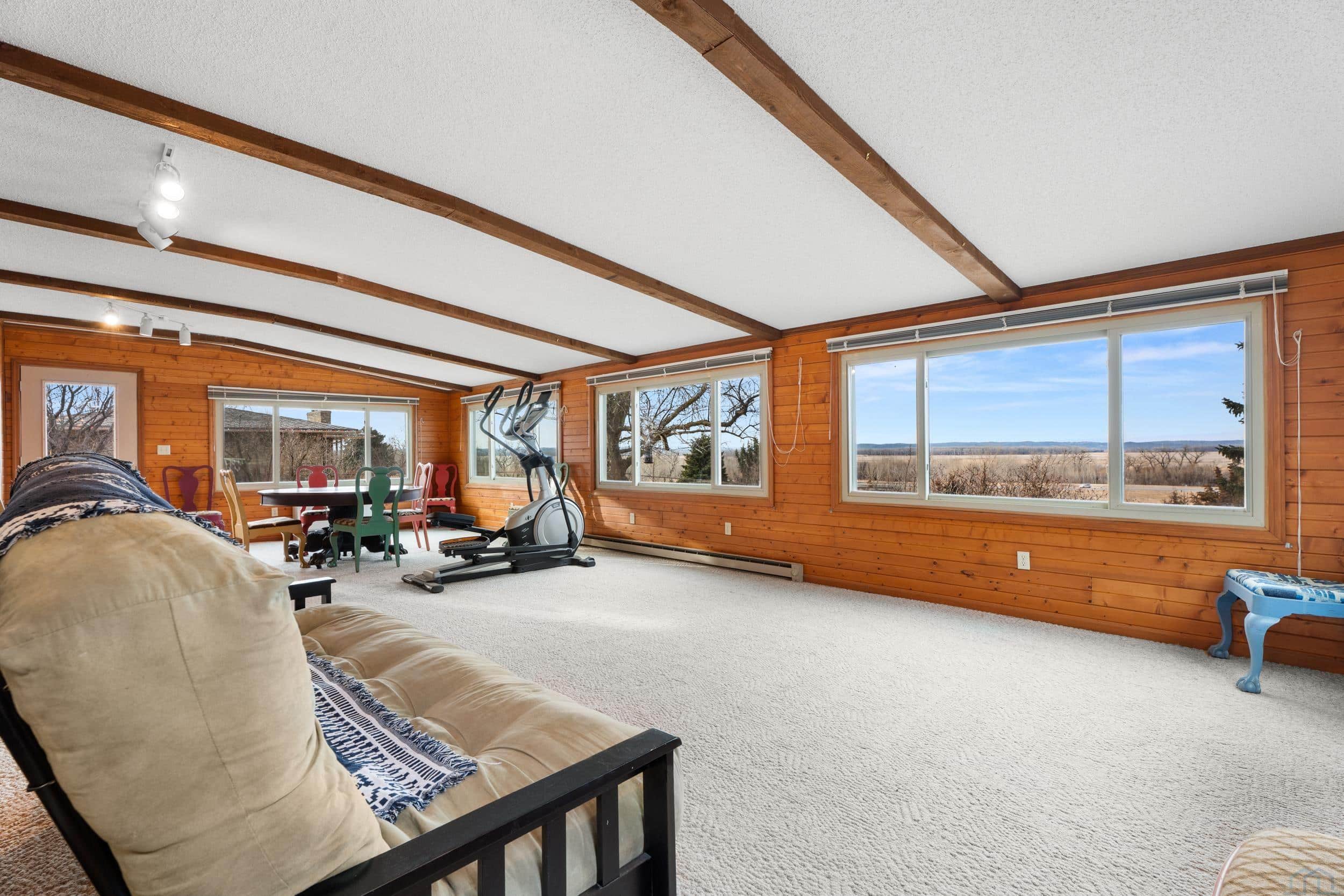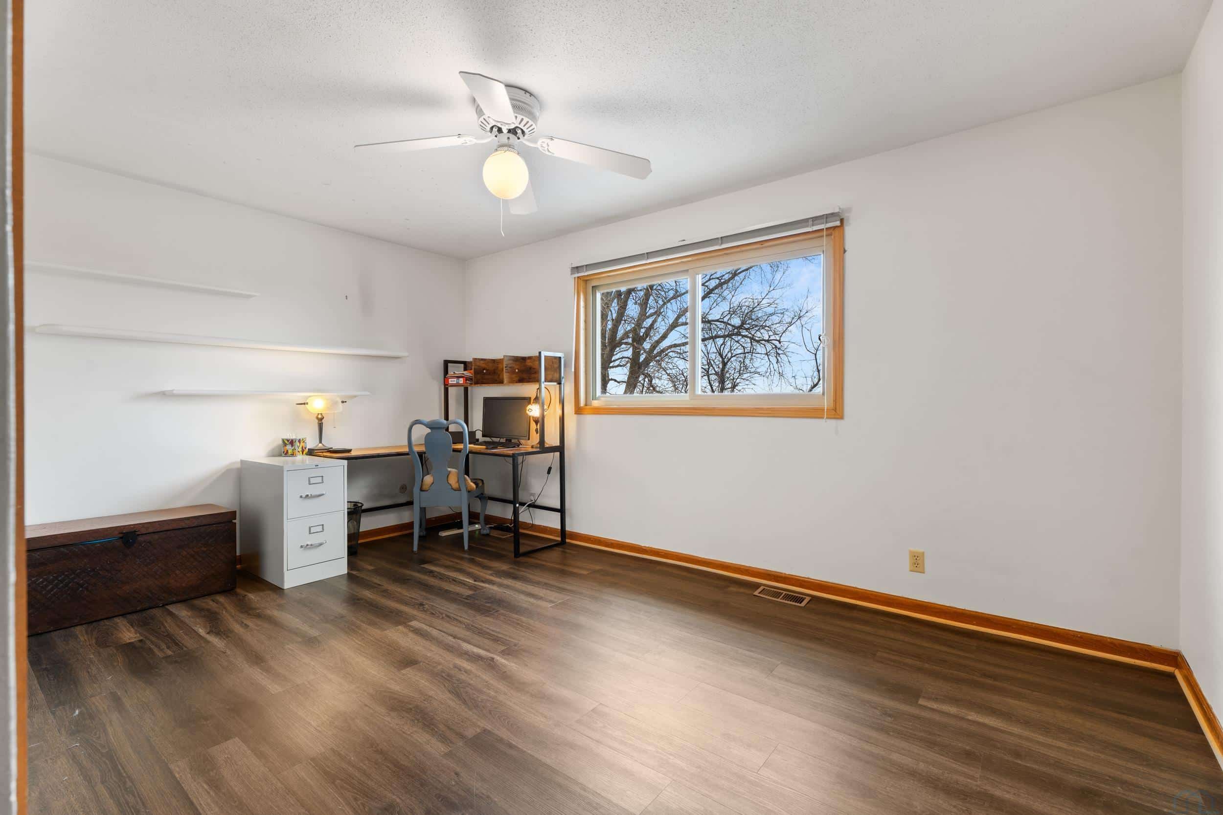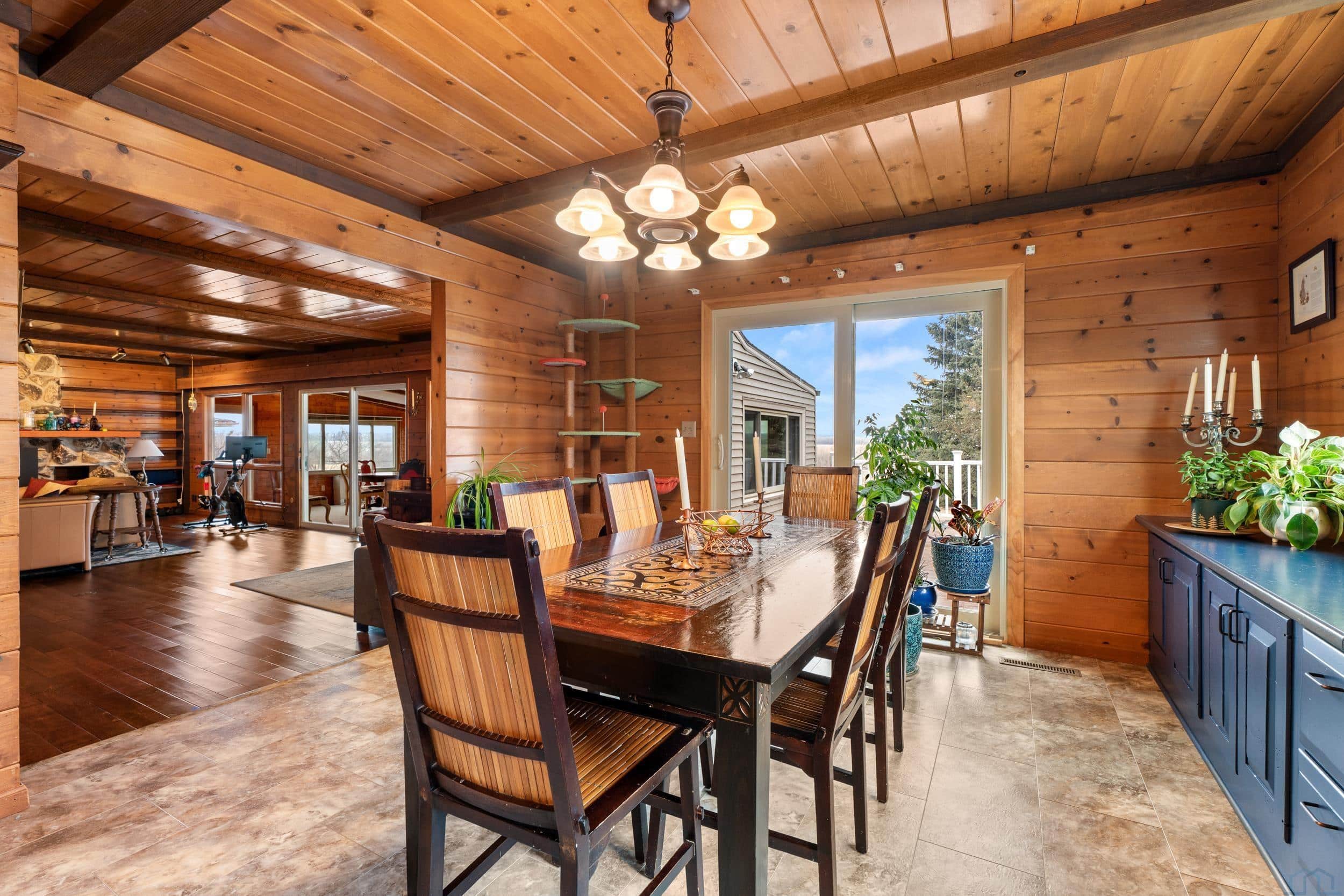Beautifully situated on approximately 2.4 acres on the west edge of Vermillion, this three-bedroom, three-bath home offers space, privacy, and truly spectacular bluff views that greet you the moment you enter the front door. Inside, the home features hardwood floors and a welcoming layout designed to highlight the scenery. The step-down living room showcases a vaulted ceiling, wood-burning fireplace, and sliding glass doors leading to a stunning sunroom with expansive windows and is the perfect space to enjoy the breathtaking landscape year-round. A step up brings you to the dining area, complete with a built-in hutch and sliding door to the deck, creating a seamless connection between indoor and outdoor living. The dining room flows into the kitchen, which features a center island with cooktop & new convection over, copper hood vent, and functional workspace for everyday living or entertaining. Just off the kitchen is a spacious mudroom with washer and dryer, generous storage for coats and gear, and convenient access to both the garage and basement. The main level also includes a guest half bath and a primary suite with walk-in closet and full private bath. Upstairs, youâll find two additional bedrooms and a full bathroom, with both bedrooms offering elevated bluff views. The basement offers approximately 1,688 sq. ft., including about 221 finished sq. ft. currently used as an office. The remaining space provides excellent storage or future finishing potential. Recent updates include a newer UV HVAC system with built in dehumidifier for improved efficiency and comfort. This property combines scenic surroundings, functional living space, and room to make it your own, all in a desirable west-Vermillion location. Once you step in side and take in the beautiful view, you will not want to leave!