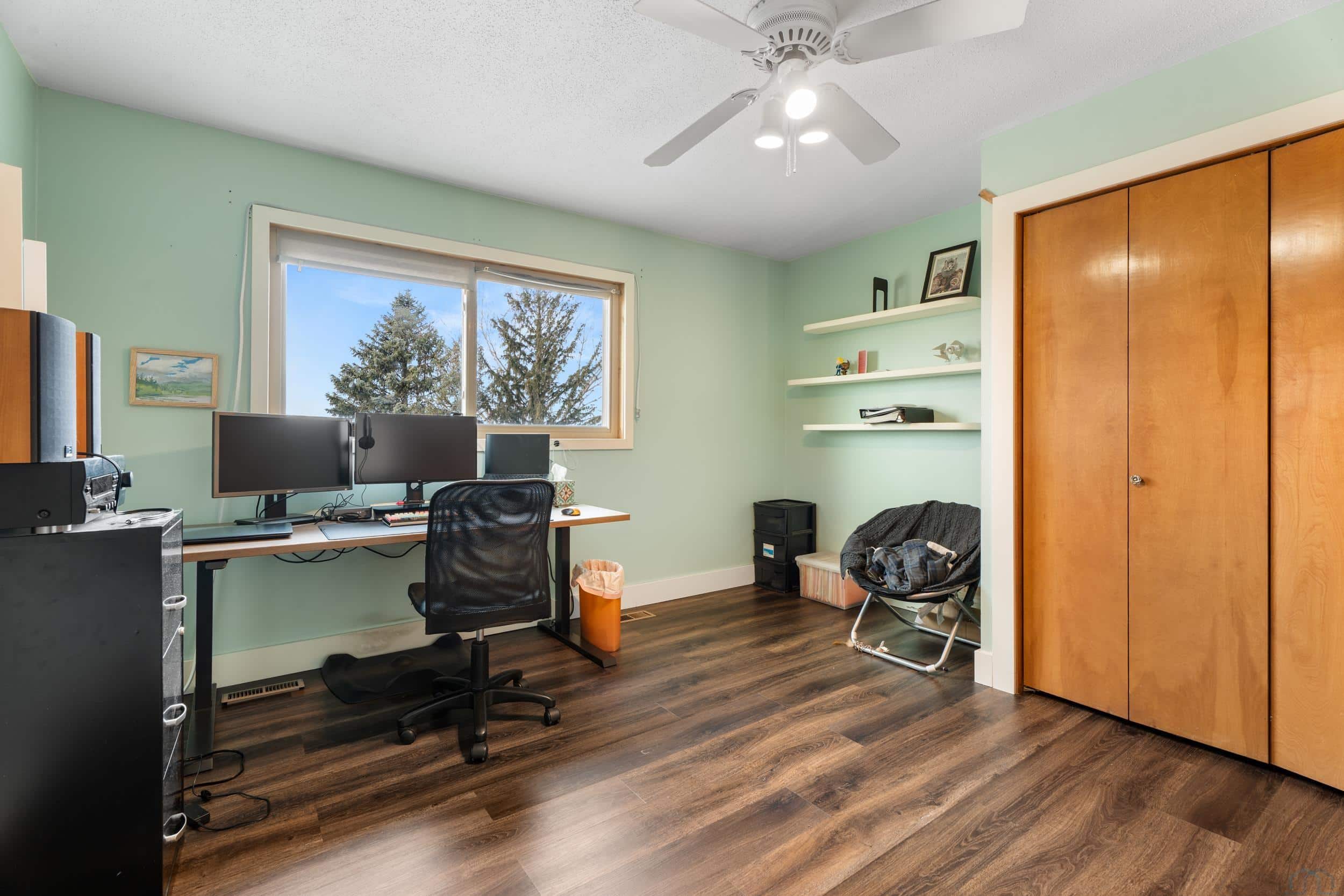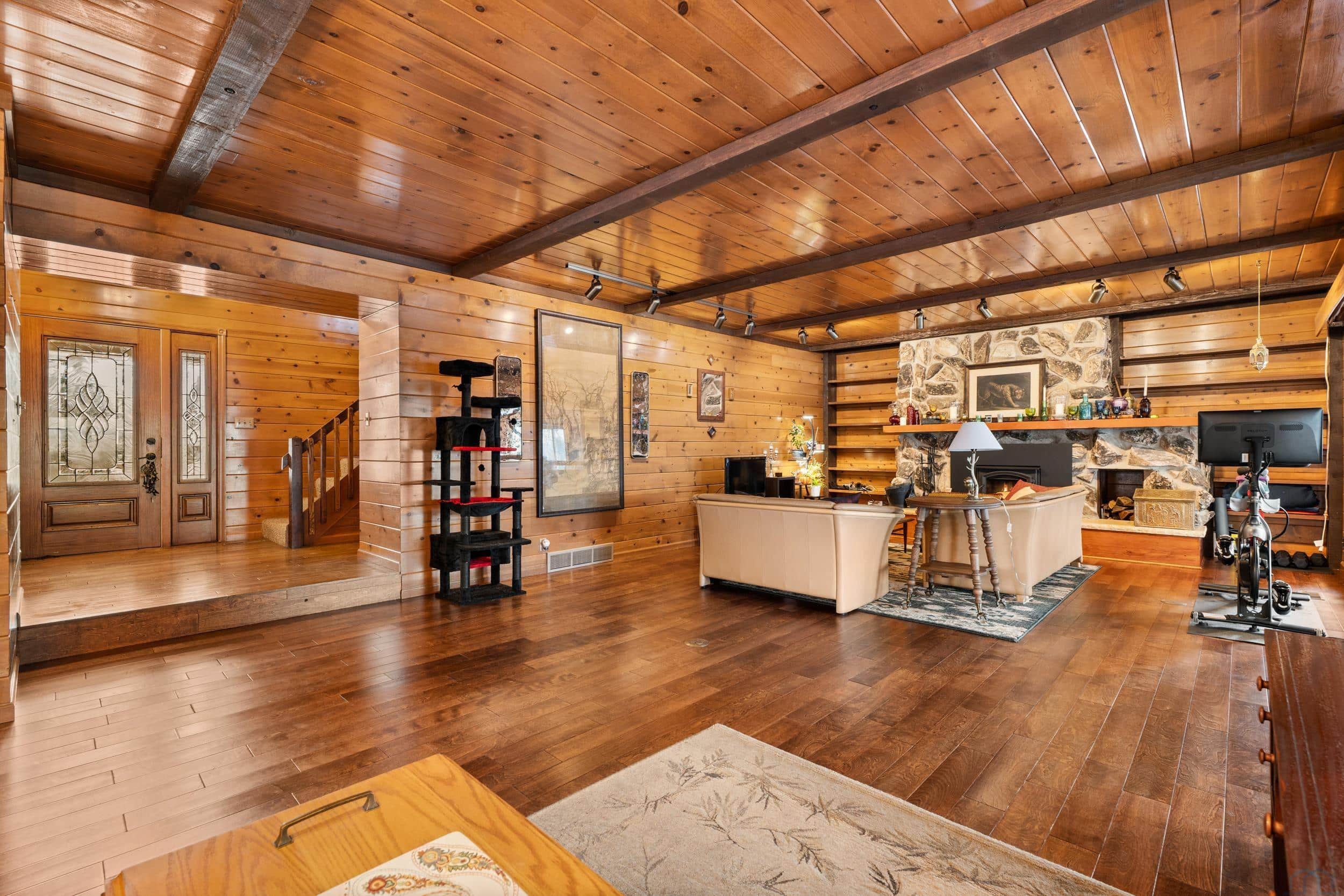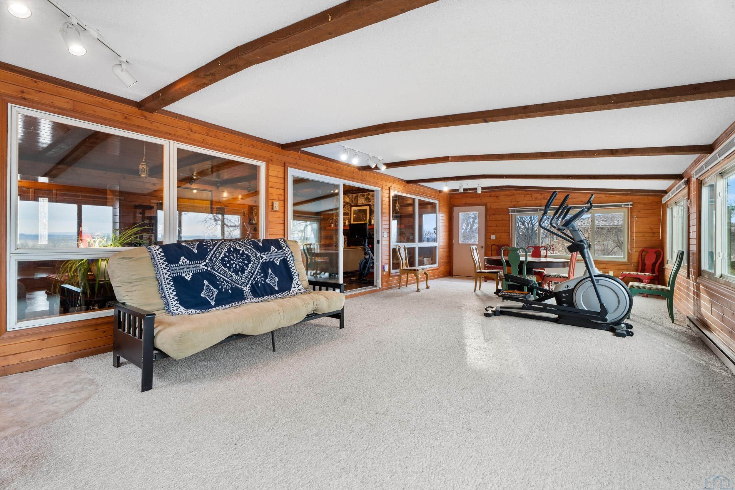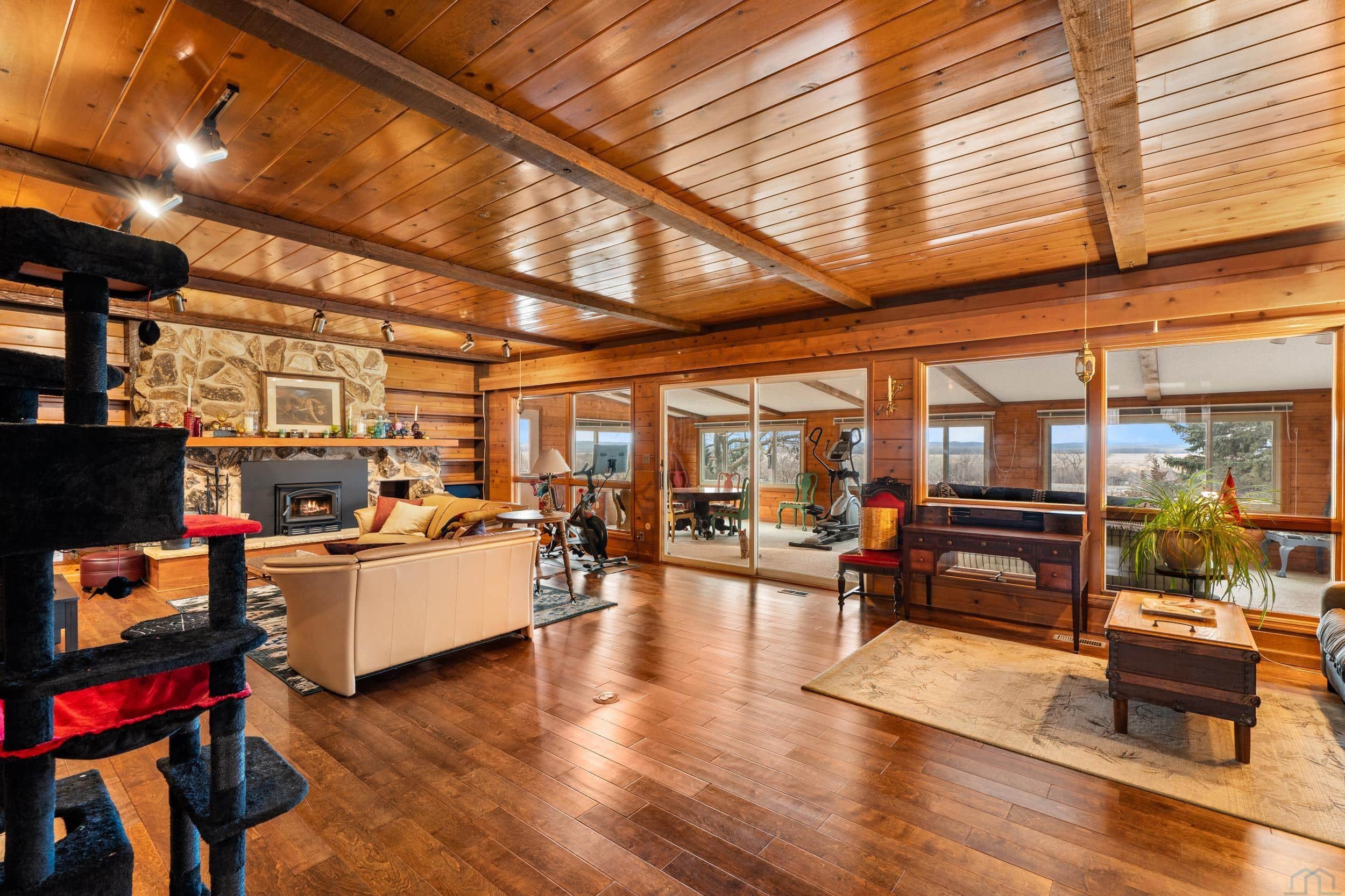 Beautifully situated on approximately 2.4 acres on the west edge of Vermillion, this three-bedroom, three-bath home offers space, privacy, and truly spectacular bluff views that greet you the moment you enter the front door. Inside, the home features hardwood floors and a welcoming layout designed to highlight the scenery. The step-down living room showcases a vaulted ceiling, wood-burning fireplace, and sliding glass doors leading to a stunning sunroom with expansive windows and is the perfect space to enjoy the breathtaking landscape year-round. A step up brings you to the dining area, complete with a built-in hutch and sliding door to the deck, creating a seamless connection between indoor and outdoor living. The dining room flows into the kitchen, which features a center island with cooktop & new convection over, copper hood vent, and functional workspace for everyday living or entertaining. Just off the kitchen is a spacious mudroom with washer and dryer, generous storage for coats and gear, and convenient access to both the garage and basement. The main level also includes a guest half bath and a primary suite with walk-in closet and full private bath. Upstairs, youâll find two additional bedrooms and a full bathroom, with both bedrooms offering elevated bluff views. The basement offers approximately 1,688 sq. ft., including about 221 finished sq. ft. currently used as an office. The remaining space provides excellent storage or future finishing potential. Recent updates include a newer UV HVAC system with built in dehumidifier for improved efficiency and comfort. This property combines scenic surroundings, functional living space, and room to make it your own, all in a desirable west-Vermillion location. Once you step in side and take in the beautiful view, you will not want to leave!