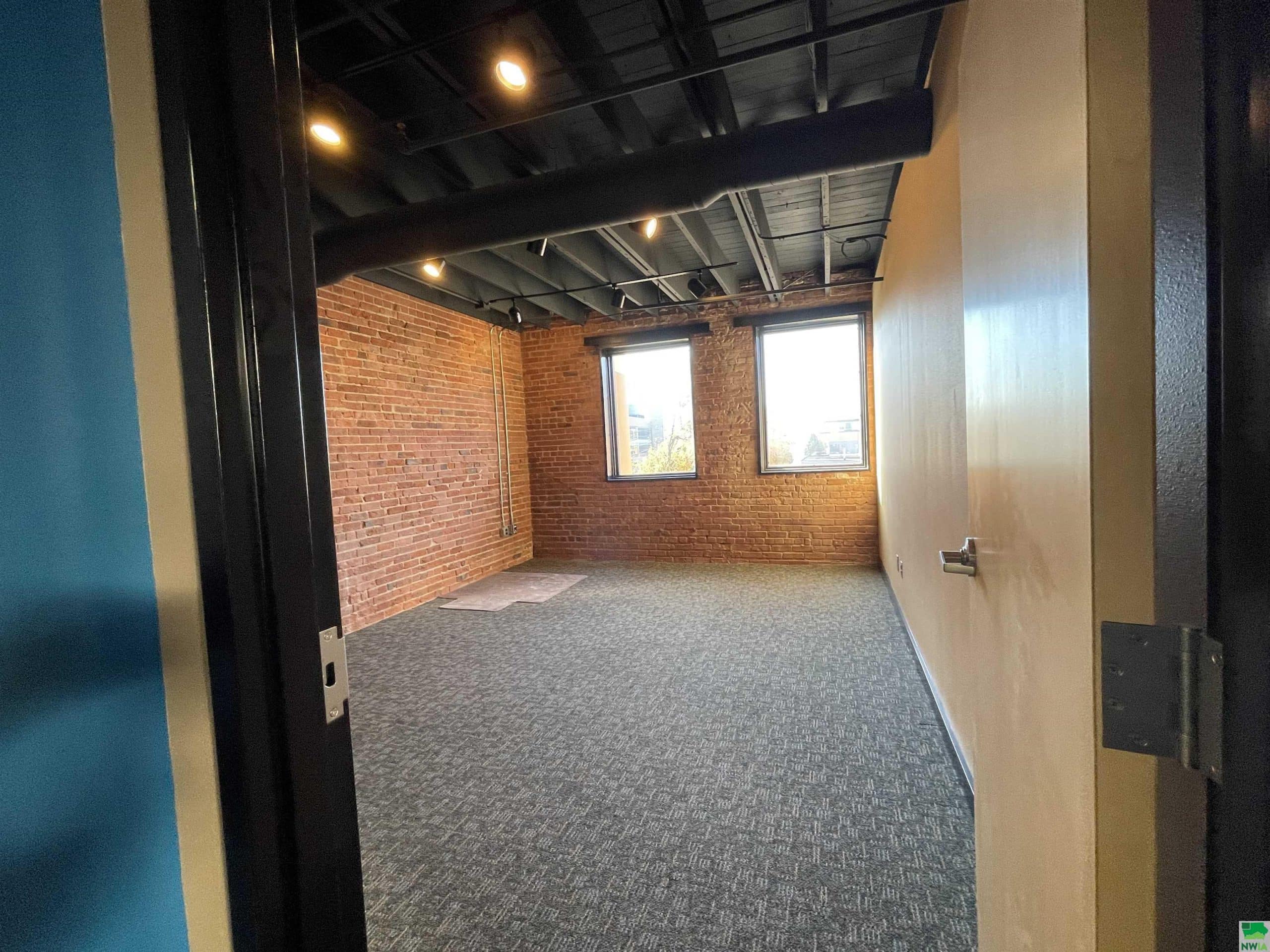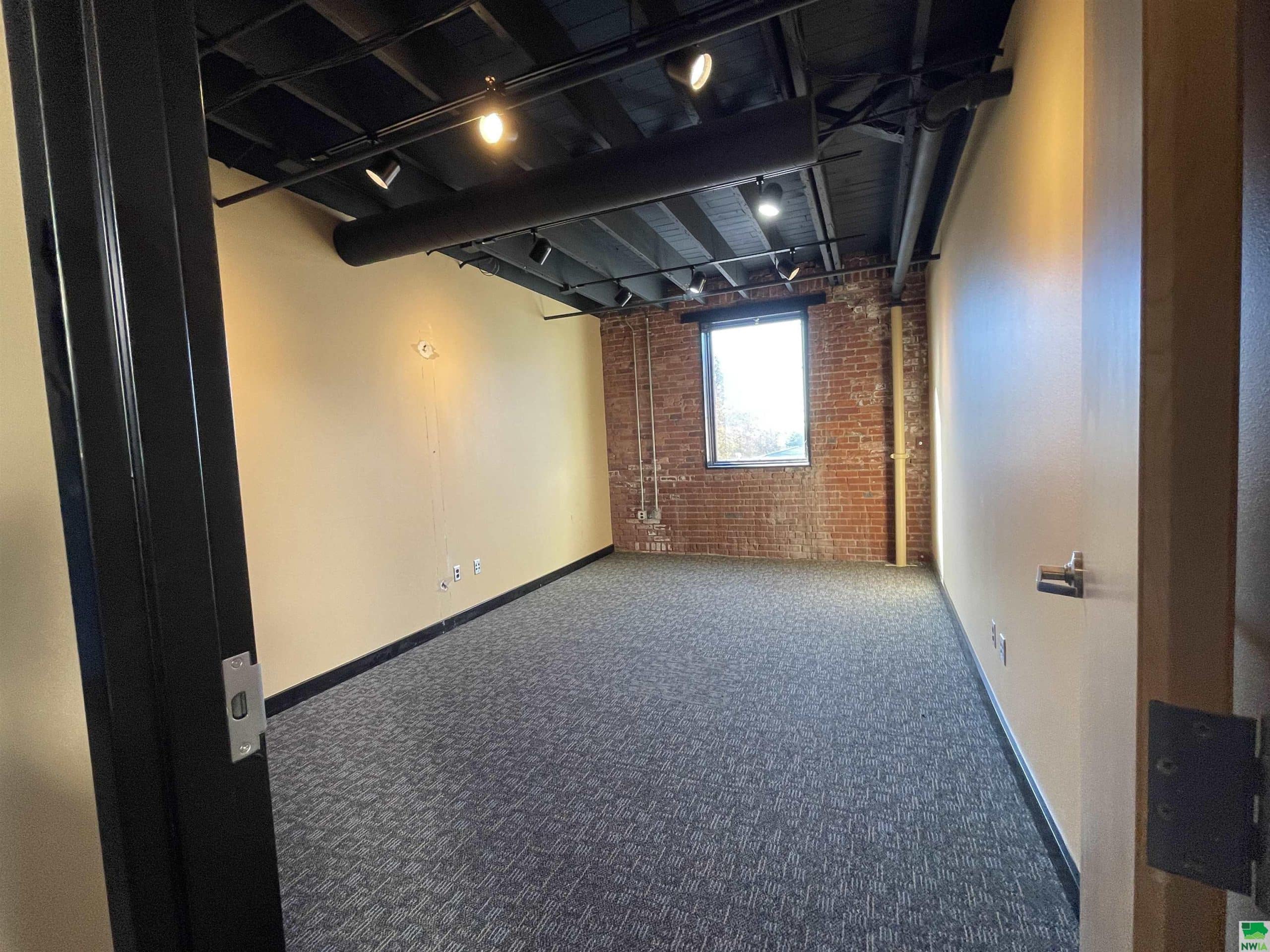 Open the door to a true hidden gem in downtown Sioux City. Currently the 3,500 sf space has a very large open works space with a large, central skylight giving the space beautiful natural light. There are three private offices, a conference room, kitchenette and private restrooms that surround the perimeter. This suite has an added bonus of your own private entrance facing the west. Ample parking and high visibility. Neighboring tenants include Famous Daveâs, Bliss Salon and others. Signage available on windows, building, and interior way-points. TI negotiable.