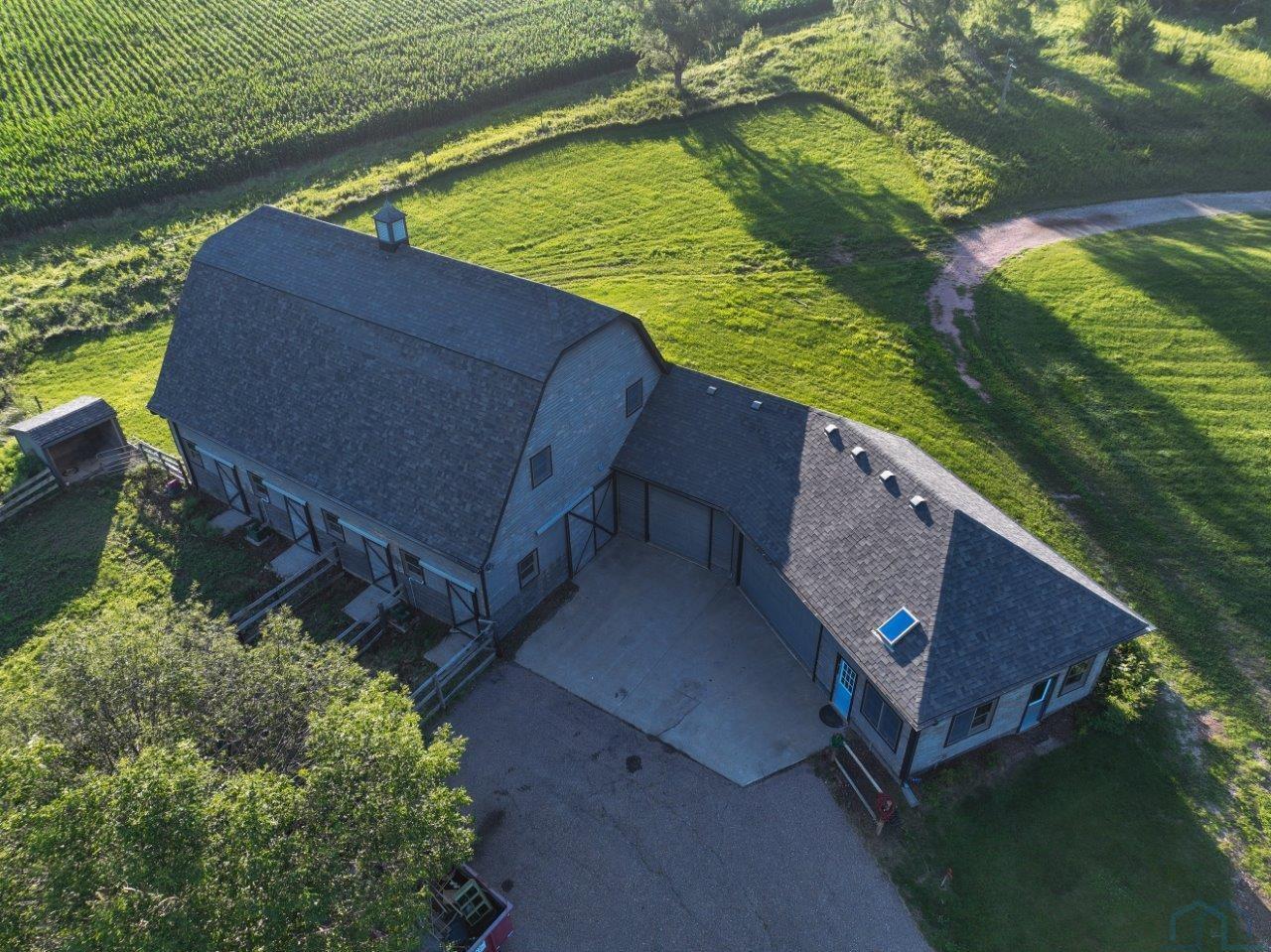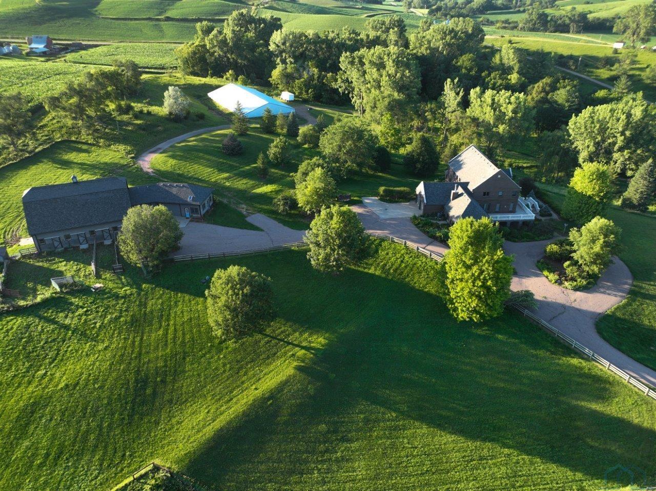 One-of-a-Kind Equestrian Estate on 34 Acres. Just north of Sioux Cityâs city limits, this exceptional all-brick estate offers the perfect blend of privacy, luxury, and functionalityâset on 34 picturesque acres with two ponds (one stocked for fishing) and a private asphalt drive. The stunning home features over 5,700 square feet of finished living space, including 4+ bedrooms and 5 bathrooms. The main floor boasts a private guest bedroom with ensuite bath, a home office with fireplace, and a cozy den. The massive four-season roomâcomplete with in-floor heat in the lower portion and its own heating and cooling systemâprovides panoramic views of the property. The geothermal zoned heating and cooling systems ensures comfort and efficiency throughout the year. The walkout basement includes a spacious family room with fireplace, home gym, ¾ bath, abundant storage, and an additional oversized garage for all your equipment and vehicles. Equestrian and hobby farm enthusiasts will appreciate the barn with 4 horse stalls (room for 3 more), a tack room, wash room with in-floor heat and also includes an oversized 3-stall garage, hayloft, and a charming lofted playroom. Additional features include: 2 private wells, lawn sprinkler system, Premier fiber optic service recently ran fiber to the home. This remarkable property offers the rare opportunity to enjoy acreage living with all the conveniences of being close to Sioux Cityâan ideal retreat for those seeking space, serenity, and sophistication.