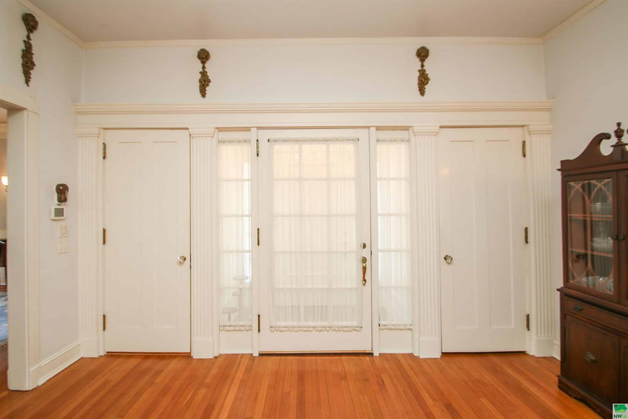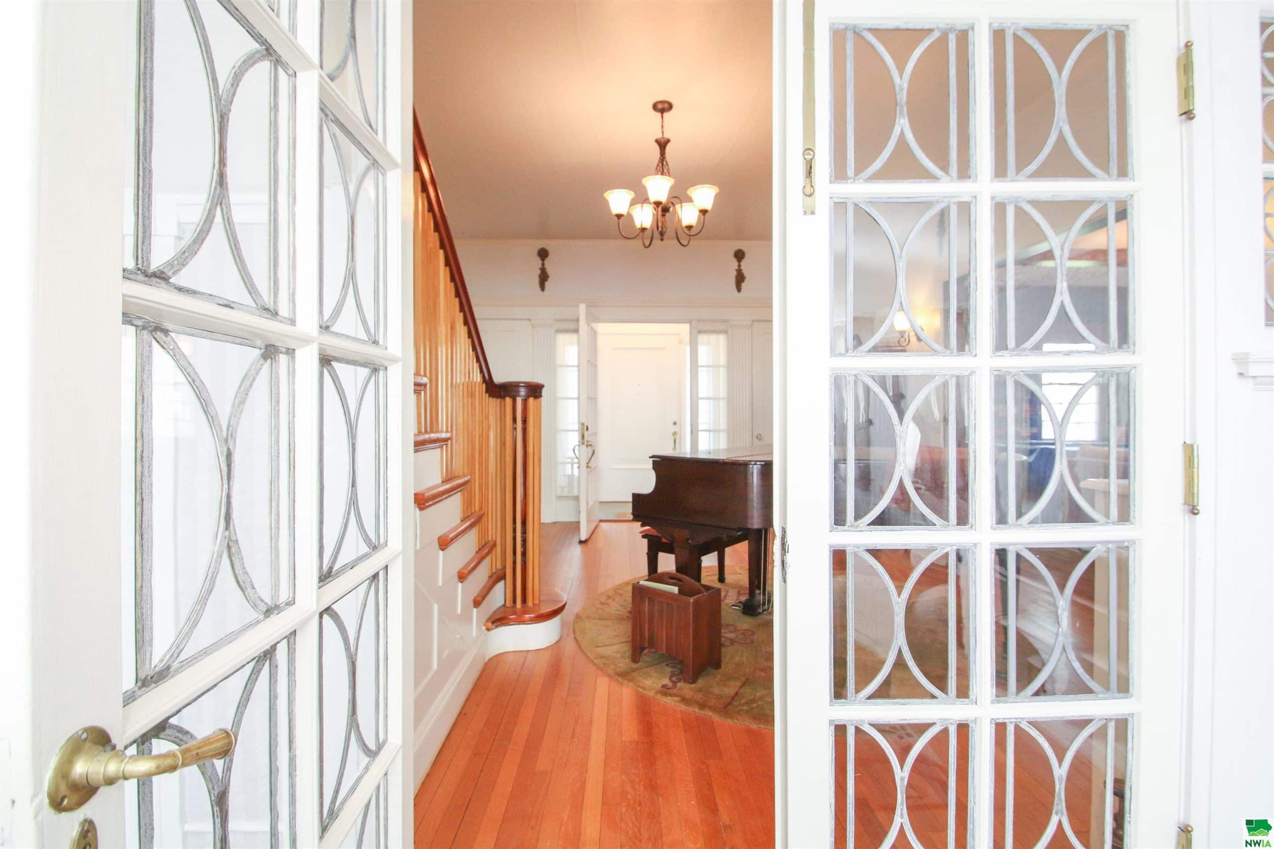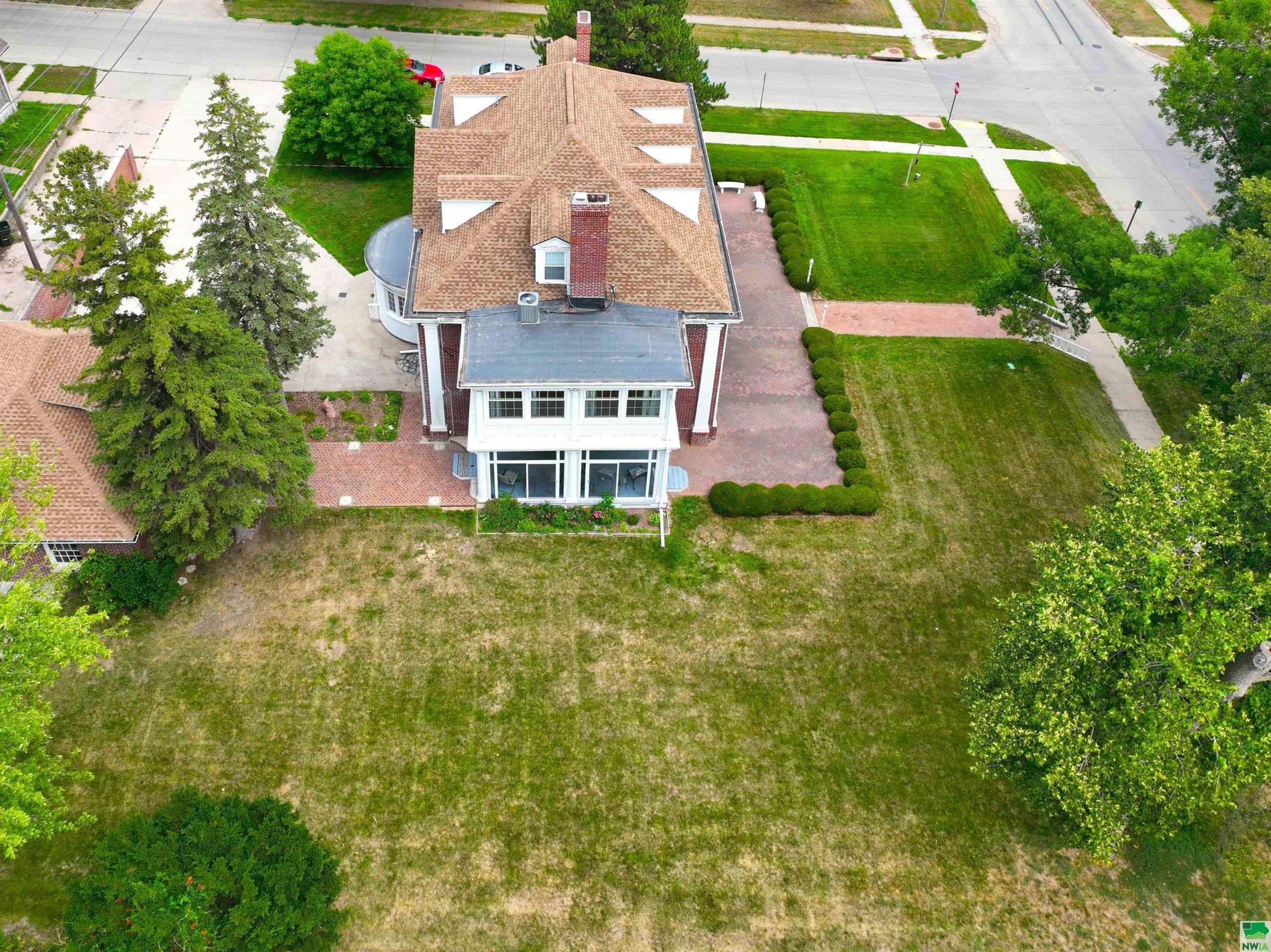 Here is your chance to own a piece of Sioux City history with this Georgian Mansion. The architect was Howard Shaw from Chicago and the builder was Frank Clark from Sioux City. This home has 3 stories with 8 bedrooms, 4 bathrooms, lots of living areas and sits on a half acre lot. As you approach the front there is a brick paver patio leading you to the front door. Entering the foyer you will see a grand staircase and leaded glass doors which lead to a family room with wood floor, a unique circular wall and door to a patio. There is a convenient half bathroom and coat closet in the foyer. To the left of the foyer is the living room with wood floor, wood walls, beamed ceiling, gas FP, bookshelves and 2 doors to the 10 x 20 sunroom. To the right of the foyer is the formal dining room with wood floor, gas FP and corner hutch. Tucked behind is the eat in kitchen with white cabinets, pantry, granite counter, and all appliances stay. Going upstairs you will notice the spindles have been redone and all wood floors refinished by Don Hanna. There are large landings halfway up. Second floor has 2 bedrooms and a full bathroom with original tile that could be a master suite as there is a pocket door for these rooms. There is a door from each of these rooms to the second level porch. There are 3 more bedrooms on the second floor, each with wood floor, a full bathroom with tub/shower combo, original tile, and there is lots of storage in the hallway. The third floor has 3 more bedrooms. One bedroom has carpet and a bathroom with a claw foot tub. The other 2 bedrooms have dormers and wood floors. The back staircase goes from the kitchen to the third floor. The basement is partially finished with a 10x18 rec room. 2 car detached garage. All the windows have been replaced. The boiler has been updated. Central air has been added for some of the bedrooms. The entire lot is sprinkled with a separate water meter. New shingles on house and garage 08/2023.