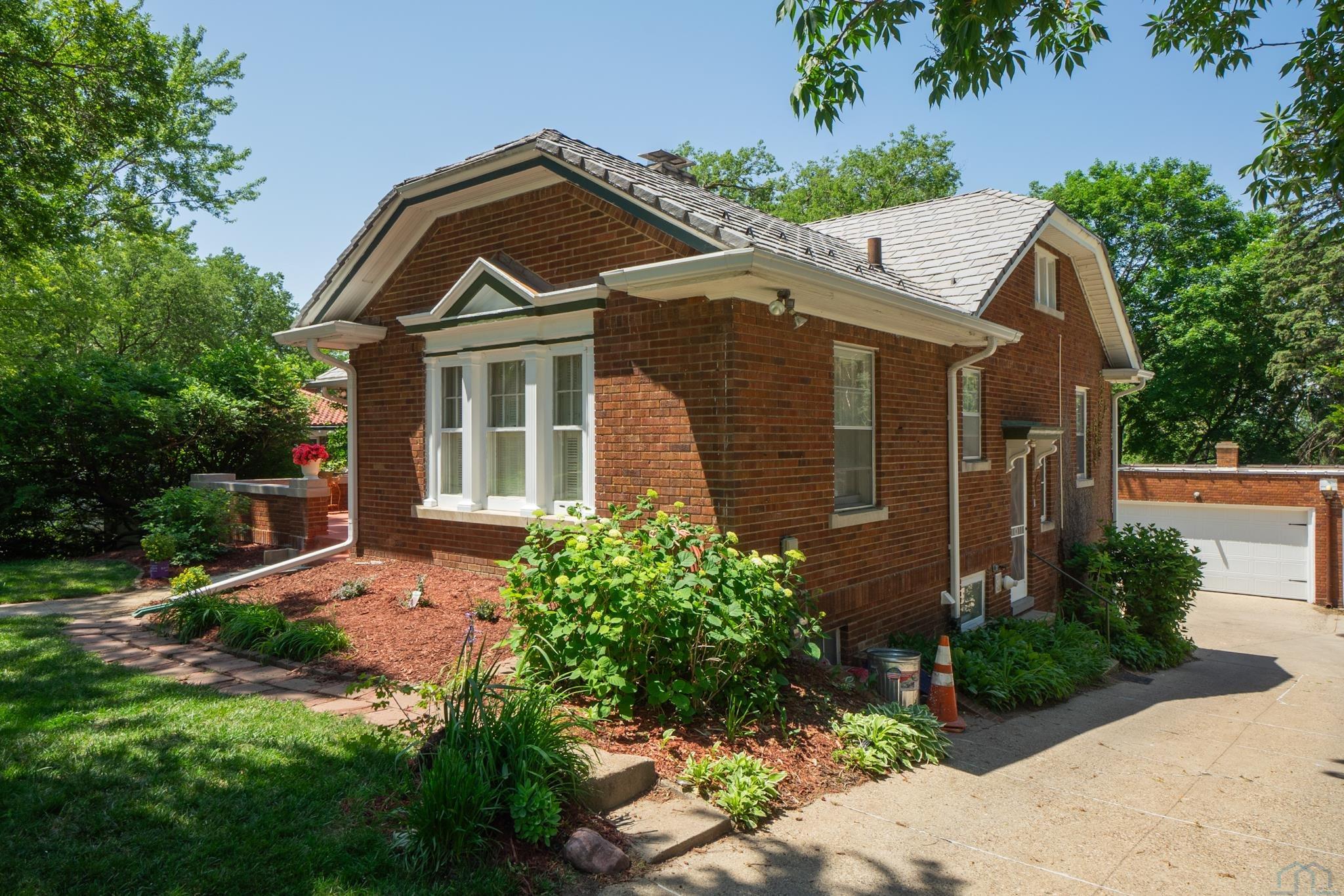 Welcome to 2403 E Solway St., a picturesque cottage located in the highly desirable Historic Heights area. This charming all-brick residence has excellent curb appeal, highlighted by a welcoming front porch featuring a fresh, professionally applied floor coating. Step inside and be transported to a bygone era, where a touch of Arts and Crafts styling blends seamlessly with modern comforts. Discover exquisite quarter-sawn oak woodwork, original hardwood floors, elegant crown molding, and classic French doors, all contributing to the home's timeless appeal. The heart of this home is its beautifully remodeled kitchen, it's a delight! Featuring luxurious Cambria countertops, ample cabinetry, and thoughtful details reminiscent of the Roaring Twenties, this space perfectly blends functionality and nostalgic charm. The main level offers two generously sized bedrooms and a beautifully remodeled bathroom and a family room addition providing comfortable and stylish living. Descend to the finished walk-out basement, where you'll find additional living space, complete with two more bedrooms, a bathroom, and an entertaining room featuring a fireplace â perfect for relaxing or entertaining. Enjoy peace of mind with a newer composite Davinci shingled roof, offering exceptional durability and virtually eliminating future roofing concerns. The home also features a high-efficiency Munchkin boiler, ensuring comfort and energy savings. Outside, the property transforms into a private oasis. Spectacular gardens abound, showcasing vibrant perennials and mature trees that provide shade and beauty. A whimsical treehouse adds to the outdoor charm, while an ample two-stall garage provides convenient parking and storage. This exceptional property offers a unique blend of historic charm, modern updates, and an unbeatable location. Don't miss your opportunity to own a piece of Sioux City's history in the desirable Historic Heights.