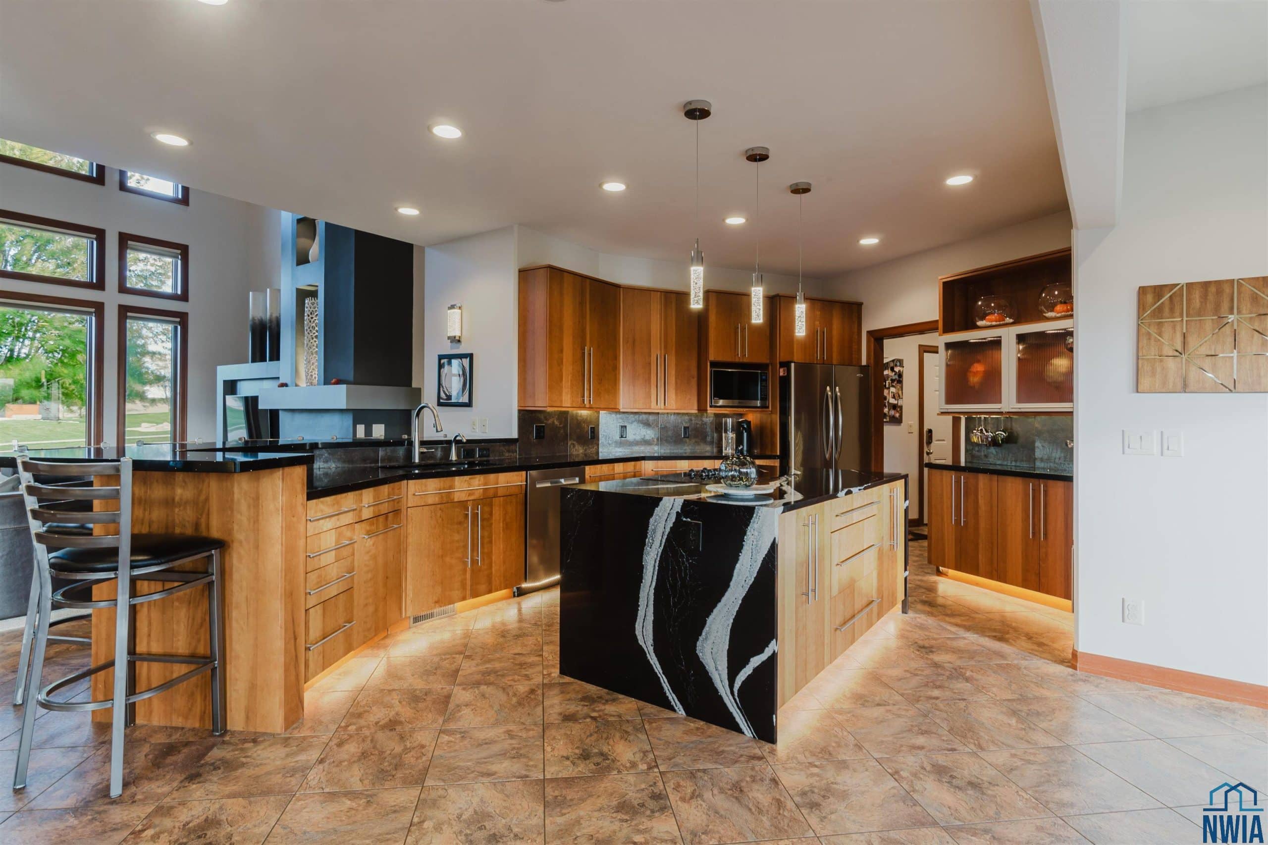 Residence of Distinction in the Ice Cream Capital of the World~ Some homes make a statement the moment you arrive â exuding grace, confidence & presence. This remarkable 5 bed, 4 bath home does exactly that. Perfectly set on a beautifully landscaped ¾-acre lot in one of Le Marsâ most private neighborhoods, it represents the very best of refined living in the Ice Cream Capital of the World. From the stately exterior to light-filled interiors, every inch of this home reflects thoughtful design & meticulous care. Step inside the grand great room with soaring ceilings, custom millwork & a sweeping staircase that sets an unforgettable tone. Natural light fills the space, accentuating the elegant fireplace & open flow that makes entertaining effortless. The main-floor ownerâs suite offers a true retreat~ with heated floors, onyx rain shower, freestanding soaker tub & cozy fireplace. A custom walk-in closet completes this sanctuary of comfort & sophistication. At the heart of the home, a chefâs kitchen shines with custom cherry cabinetry, Cambria quartz countertops & a stunning waterfall island. The open layout connects dining area & flowing to an east-facing deck with outdoor kitchen~perfect for gatherings or peaceful mornings. The upper level features three spacious bedrooms & a full bath, while the walkout lower level impresses with a full kitchen, granite-topped bar, home theater & game area. Heated floors add warmth throughout & the patioâs wood-fired pizza oven makes outdoor entertaining unforgettable. A spacious three-stall garage with direct basement access, mature landscaping & a welcoming neighborhood with basketball court & picnic area complete this exceptional property. A true residence of distinction~elegant, livable, and impossible to replicate at todayâs prices.