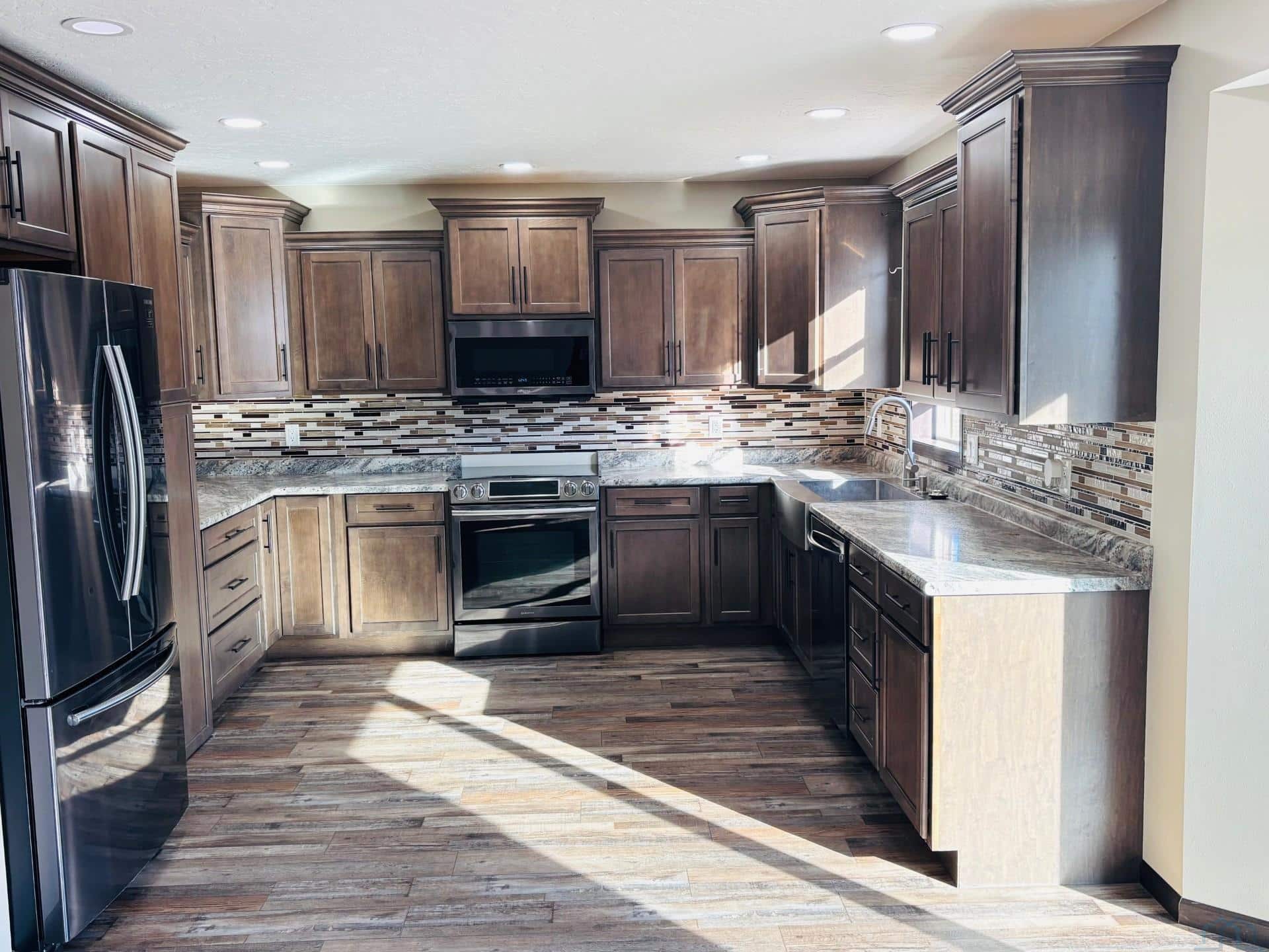 If youâve been searching for a newer-build home in the Hawarden area, this one is a must-see! The builder spared no expense when designing this beautiful ranch-style home, offering over 2,700 square feet of thoughtfully finished living space. The open-concept main floor connects the kitchen and living room, creating a welcoming space with room for an eat-in dining area. Youâll love the durable LVP flooring throughout the main level, along with carpet in the bedrooms and living room. The stunning media wall features stacked brick and a tasteful mantle, adding warmth and character to the space. The kitchen offers a hidden walk-in pantry for plenty of food and storage, and the appliances stay with the home. Main-floor laundry is conveniently located just off the kitchen and garage. Sliding patio doors lead to the backyard, where youâll find over half an acre of space and a concrete patio - perfect for relaxing or entertaining. The primary suite is tucked just off the living room and includes a 3/4 bath and walk-in closet. Two additional bedrooms are located on the main floor of the home, along with a full bathroom and an extra linen closet in the hallway. Downstairs, the basement offers even more living space, including a large family room ideal for entertaining. There is an additional en-suite room with a walk-in closet and 3/4 bath (no egress), plus two more bedrooms with egress windows. The basement bathroom offers double access from both the en-suite and the main living area. Located in a quaint neighborhood with plenty of privacy, this home truly has it all. Donât wait - this could be the one youâve been waiting for!