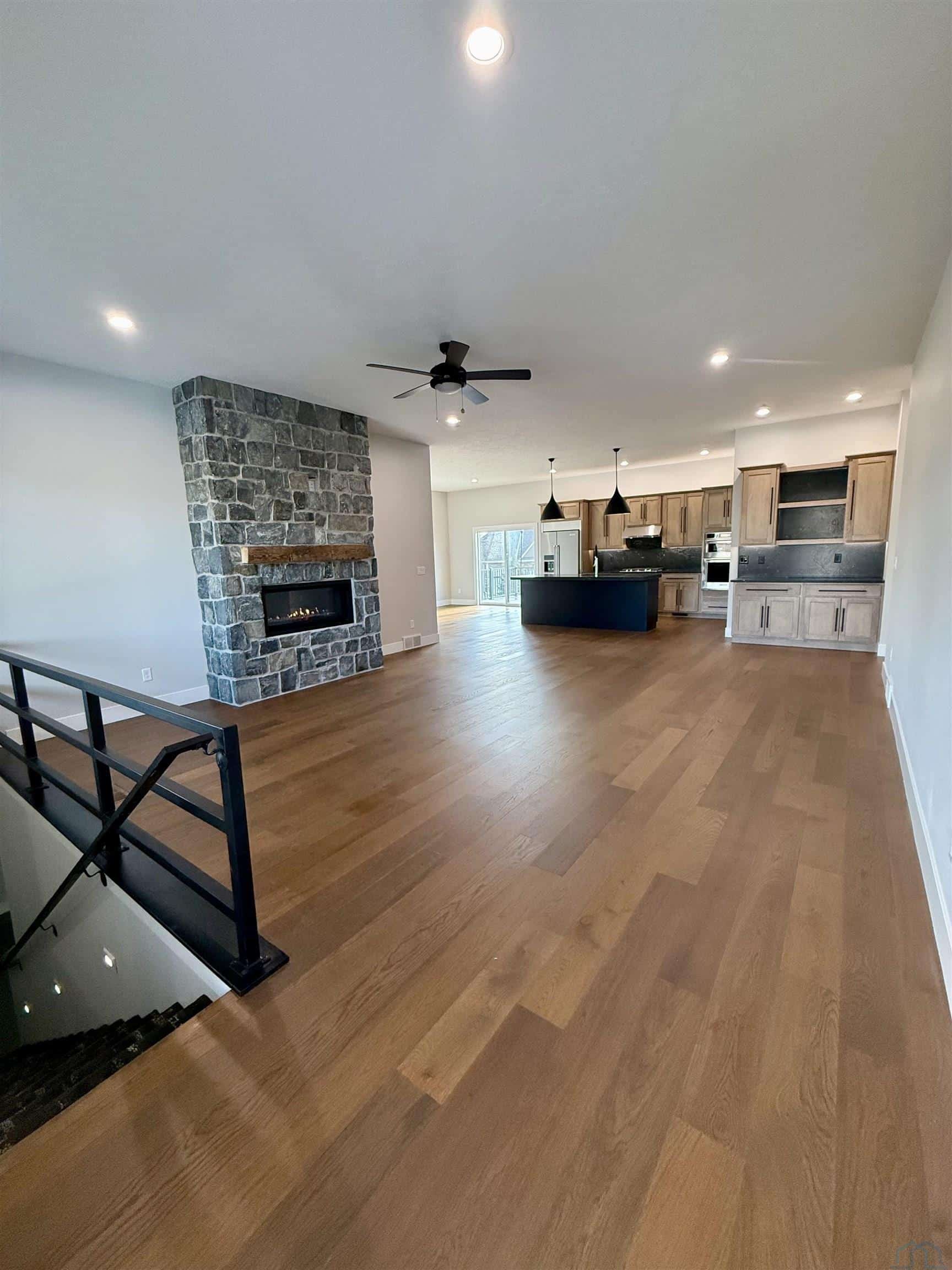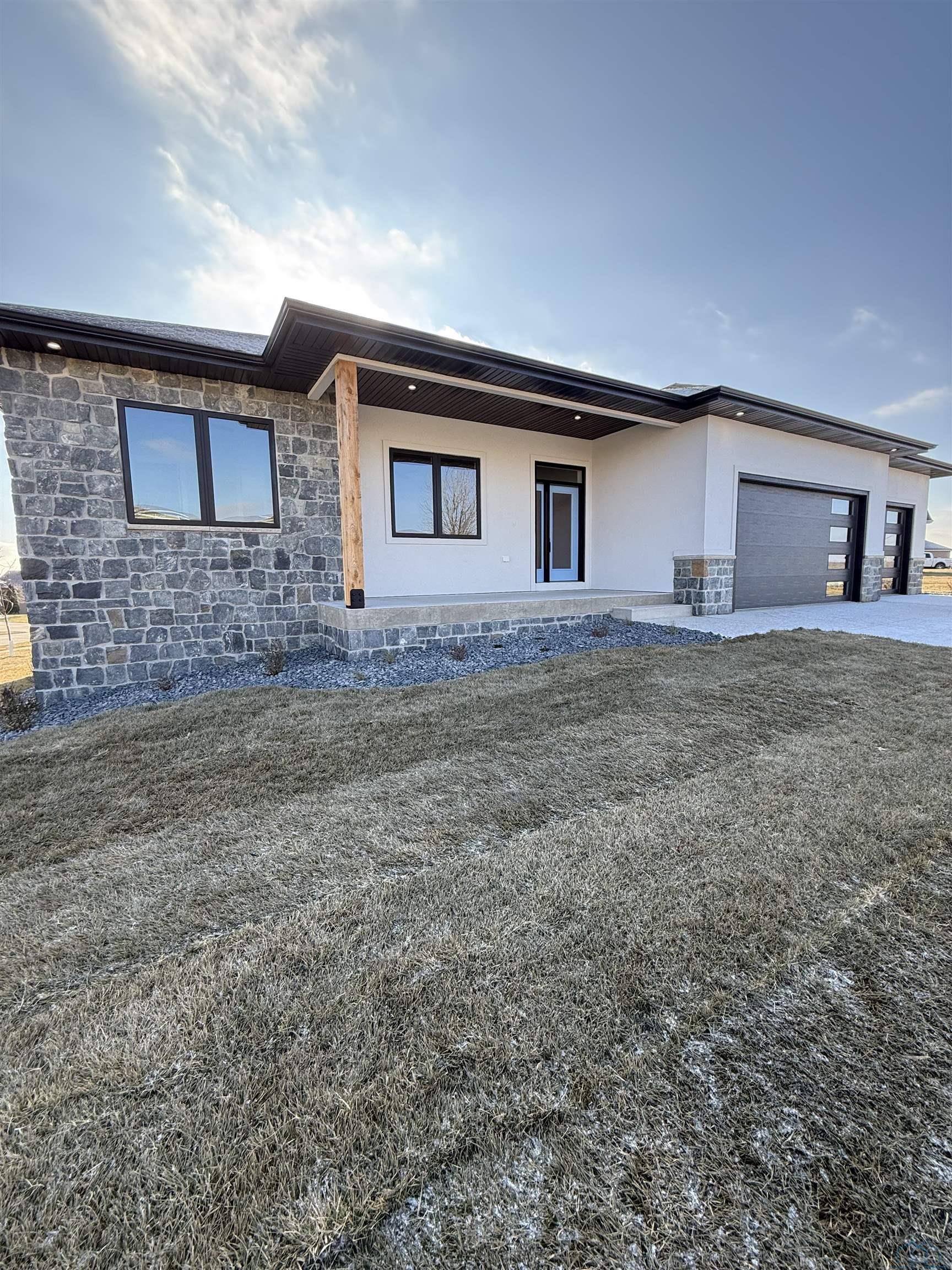 The wow factor is apparent in this new construction 4 bedroom custom-built ranch home in Whispering Creek. The builders designer picked out high end finishes including a granite that is a must see and stunning kitchen pendants. Upon the arrival of the home you are greeted with a front entrance that has the modern look with an added warmth of cedar beams. As you enter the home, the main floor has hardwood floors with matching hardwood custom vents. The amazing stone on the gas fireplace just complements the homes upgrades and the open floor plan to the kitchen. The kitchen has a huge extra thick granite island, stunning pendants, walk in pantry and a coffee/wine bar area that has the solid granite backsplash, soft close cabinets, upgraded appliances, a vented system for the gas drop in stove, double/micro oven, solid granite backsplash so no grout lines! This is a cook/bakers dream. The master bedroom suite includes a walk in closet, heated modern tile floors, large tile shower with modern glass, double sinks, and linen closet. The other main floor bedroom has a nice big window bringing in that natural light and is conveniently located close to the main bathroom which includes modern glass shower. The entry from the garage has a beautiful granite bench and perfect drop zone area for coats, backpacks etc.. and is also the main floor large laundry room. The basement finishes start with a custom iron rail that leads to the fully finished space including lg windows making the basement feel like another floor. The basement has 2 bedrooms, full bath, and family room with modern polished concrete floors. The 3 stall garage is huge featuring custom epoxy floor, wired tv cable, and hot and cold water. A few other items that make this home a beauty is: trex deck, wifi in the bathrooms for music or other listening, stairway lighting, Gerkin windows & doors, rock and shrub landscaping, sod/sprinkler. qualifies for city tax abatement. Seller is related to Listing agent