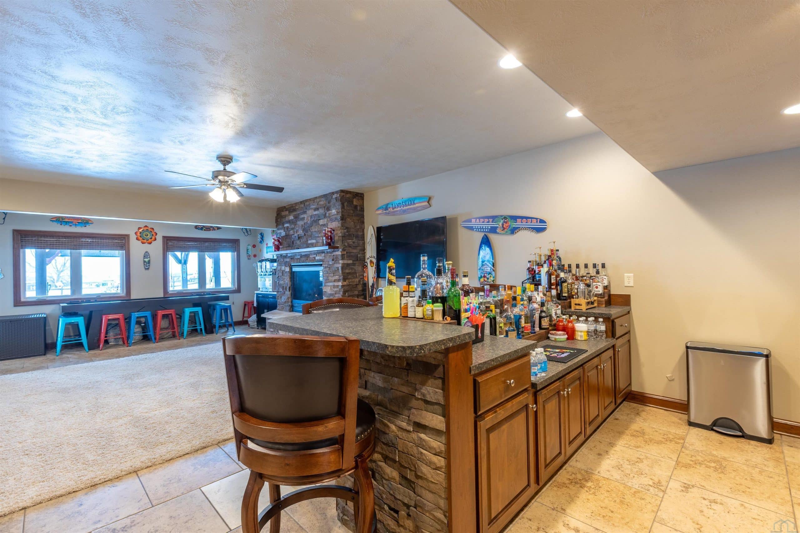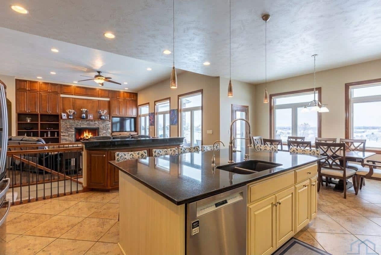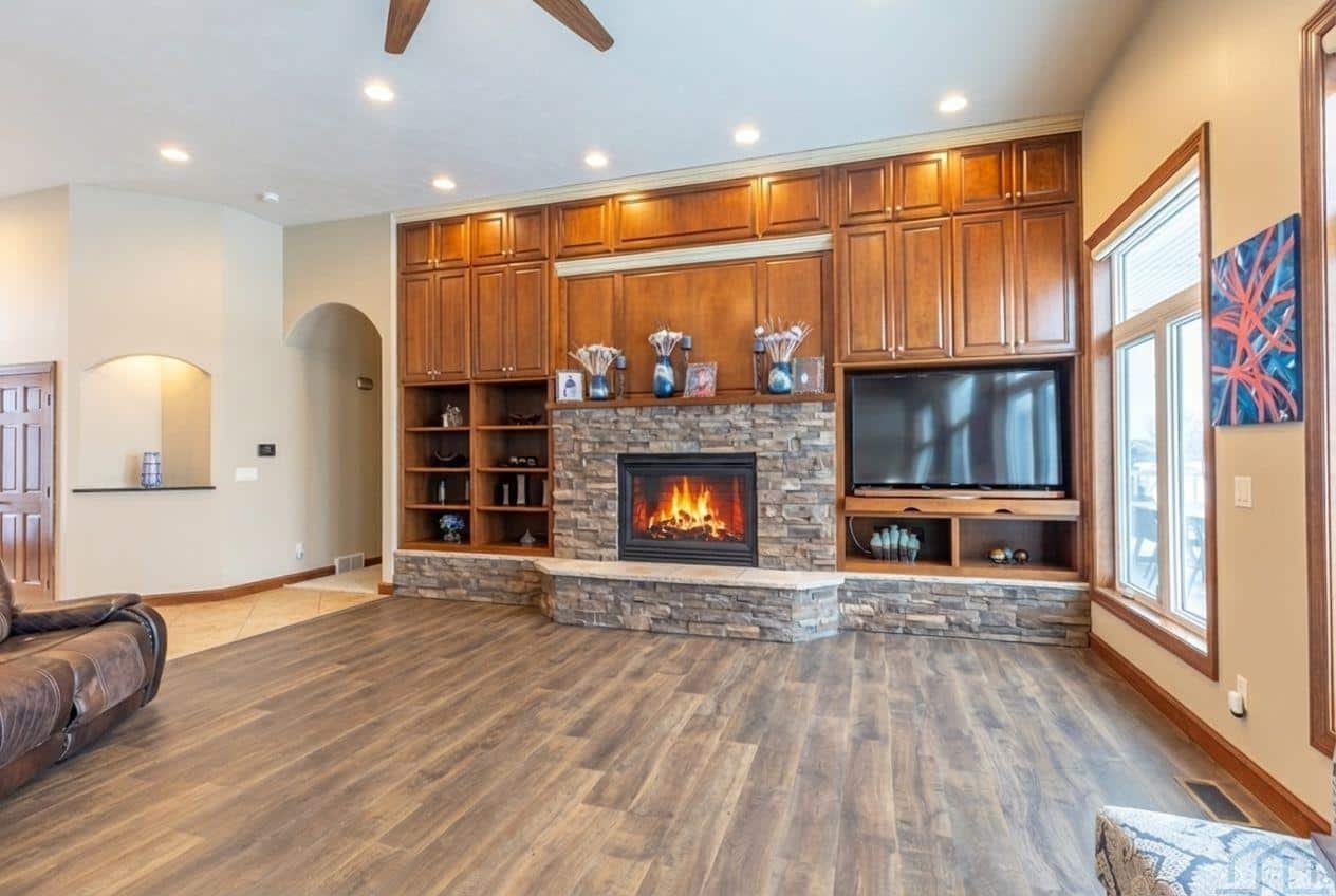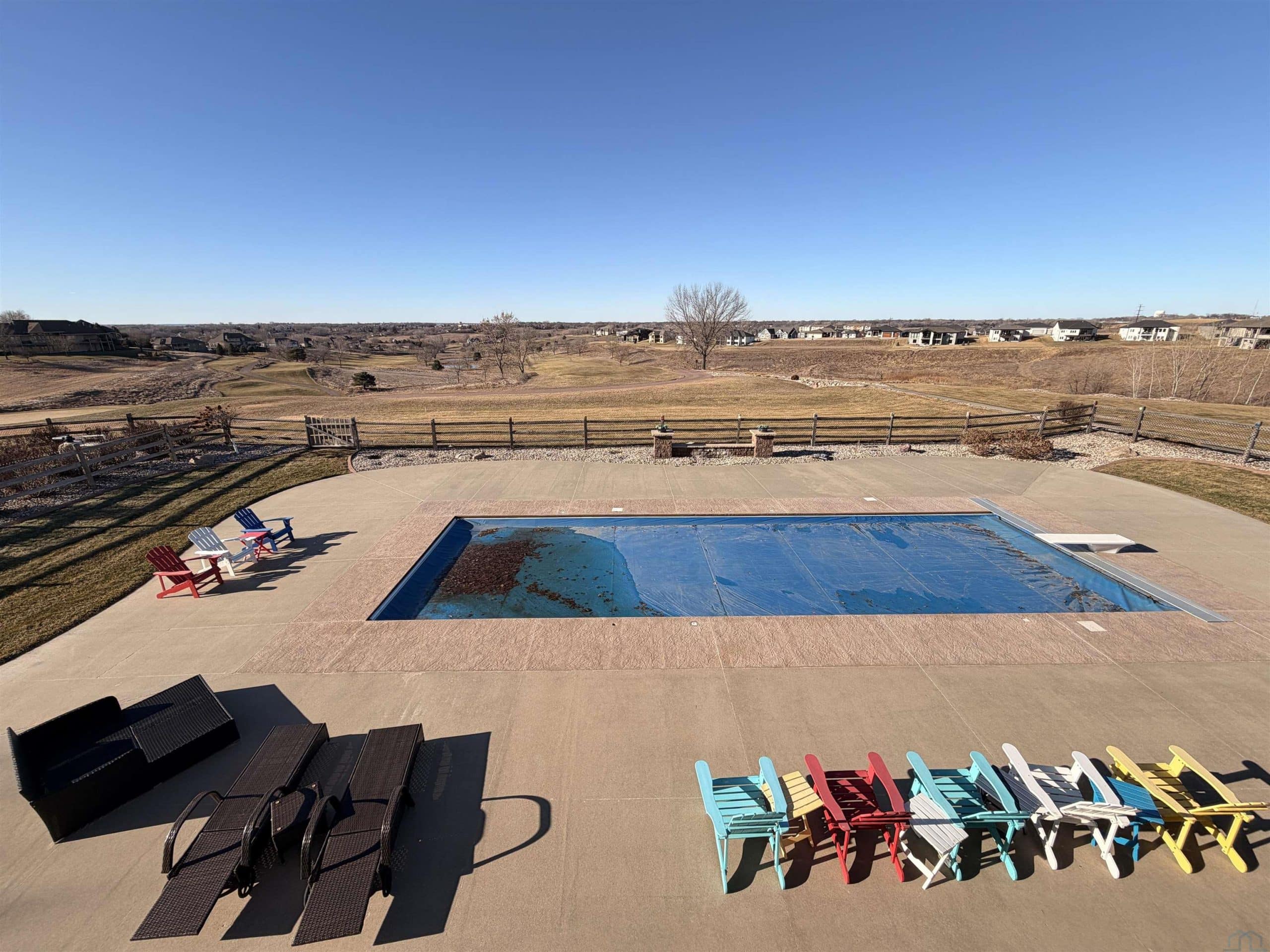 Stunning 5 bed, 3.5 bath ranch on Whispering Creek Golf Course! Set on a .59-acre lot overlooking the #11 Green and #12 Tee box, this custom ranch walkout offers exceptional views and a layout designed for comfort and entertaining. Inside youâll find soaring 12â ceilings, cherry woodwork, and 6-panel doors. The foyer opens to a flexible formal dining room or office and a striking great room with floor-to-ceiling built-ins framing a stone fireplace. West-facing windows capture the golf course panorama. The gourmet kitchen features an oversized island with storage, granite counters, GE appliances, gas stove, and a built-in buffet. A partially covered, maintenance-free deck extends your living spaceâperfect for morning coffee or evening sunsets. The primary suite also opens to the deck and includes a jetted tub, tiled walk-in shower, granite counters, and a spacious walk-in closet. Two additional bedrooms (one with WIC) and a full bath complete the main level. A laundry/drop zone and half bath sit off the oversized 3-car garage (room for 4). The walkout lower level offers a large family room with a second stone fireplace, a 13Ã14 bar area with appliances, two more bedrooms, a stylish ¾ bath with tiled shower, and a workout or game room. Access the backyard through the golf cart garage (10Ã18, epoxy flooring). Your outdoor retreat includes an in-ground, saltwater, heated pool (heater 2023) with automatic cover (2023), prowler cleaner, basketball hoop, and diving board. The yard also features a granite island with fridge, gazebo, fenced yard, water feature, and landscape lighting. Mechanical updates include a dual-fuel furnace (2023), two Marathon water heaters, Kinetico water softener, and a sprinkler system with rain sensors. Granite counters are in every bathroom, and automatic Graber darkening blinds enhance all bedrooms. A front-yard water feature adds curb appeal. This exceptional Whispering Creek home offers luxury, updates, and an unmatched golf-course location!