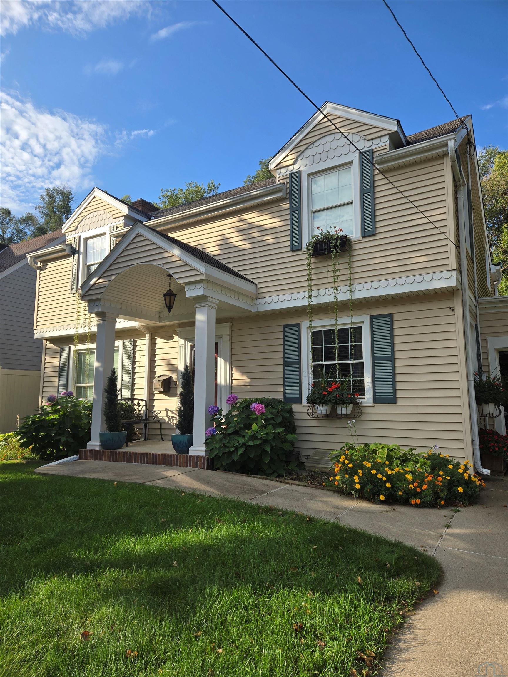 This beautifully updated 2-story home combines classic charm with modern upgrades throughout. Featuring an updated kitchen, baths, wiring, windows, and sidingâthis home is truly move-in ready. Upstairs offers three spacious bedrooms, including a master suite with private ¾ bath. The main floor features a warm and inviting layout with a family room that opens to the kitchen area and French doors leading to the living room with a cozy fireplace. The finished lower level includes a rec roomâperfect for additional living or entertaining space. Enjoy the outdoors with a large lot, oversized single-car garage, relaxing covered deck, and patioâideal for gatherings or quiet evenings. This home offers the perfect blend of comfort, style, and locationâjust a short walk to beautiful Grandview Park.