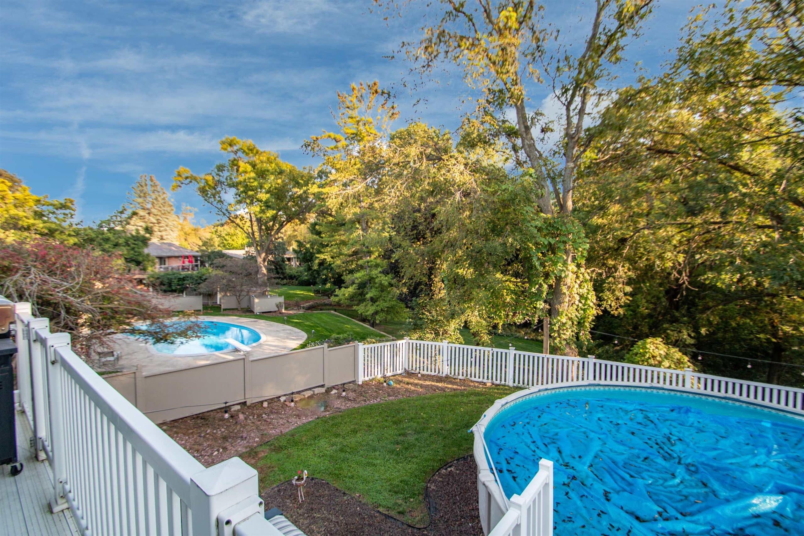 Description: Spacious home on Private .5 Acre Lot with two primary suites. Perfect for multigenerational living! If youâve been searching for space, comfort, and privacy, this home truly has it all for you. Nestled on a beautifully treed .5 acre Northside lot, it offers a peaceful retreat while keeping you close to everyday conveniences. With its contemporary design and expansive layout, this home provides plenty of room for everyone. Step outside to a deck overlooking the backyard and enjoy summers in the heated above-ground poolâideal for both relaxation and entertaining. The gourmet kitchen is a chefâs dream, featuring granite countertops, stainless steel appliances, a walk-in pantry, and a stylish tile backsplash. A large picture window brings in natural light and frames serene outdoor views, elevating the space with warmth and beauty. Adding to its charm, the spa-inspired atrium includes a working hot tub (note: resurfacing needed for the patio surround for hot tub area), creating a unique bonus space to unwind. Situated on a quiet, desirable street, this home perfectly blends privacy, comfort, and convenience. All new electrical service to the house along with new soffit lights & new stone front accent as well. Come check it out!