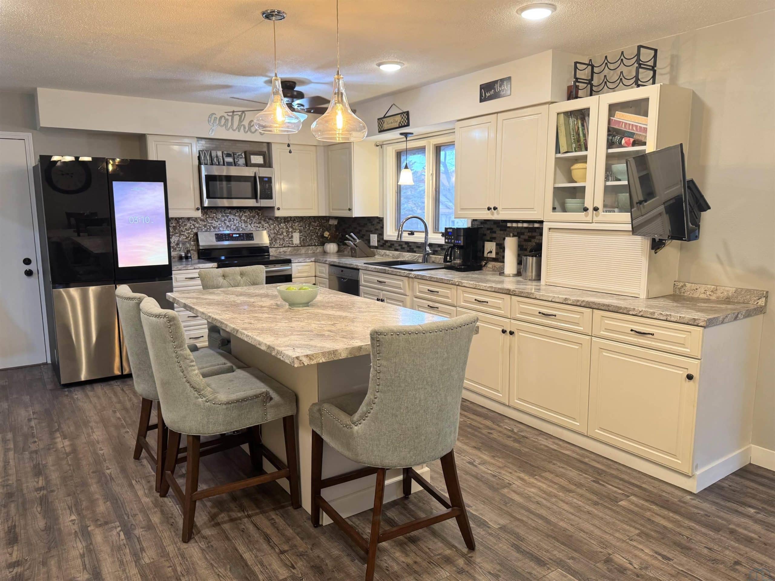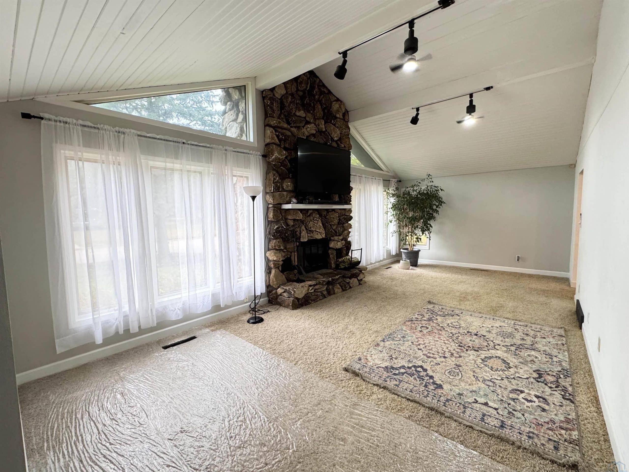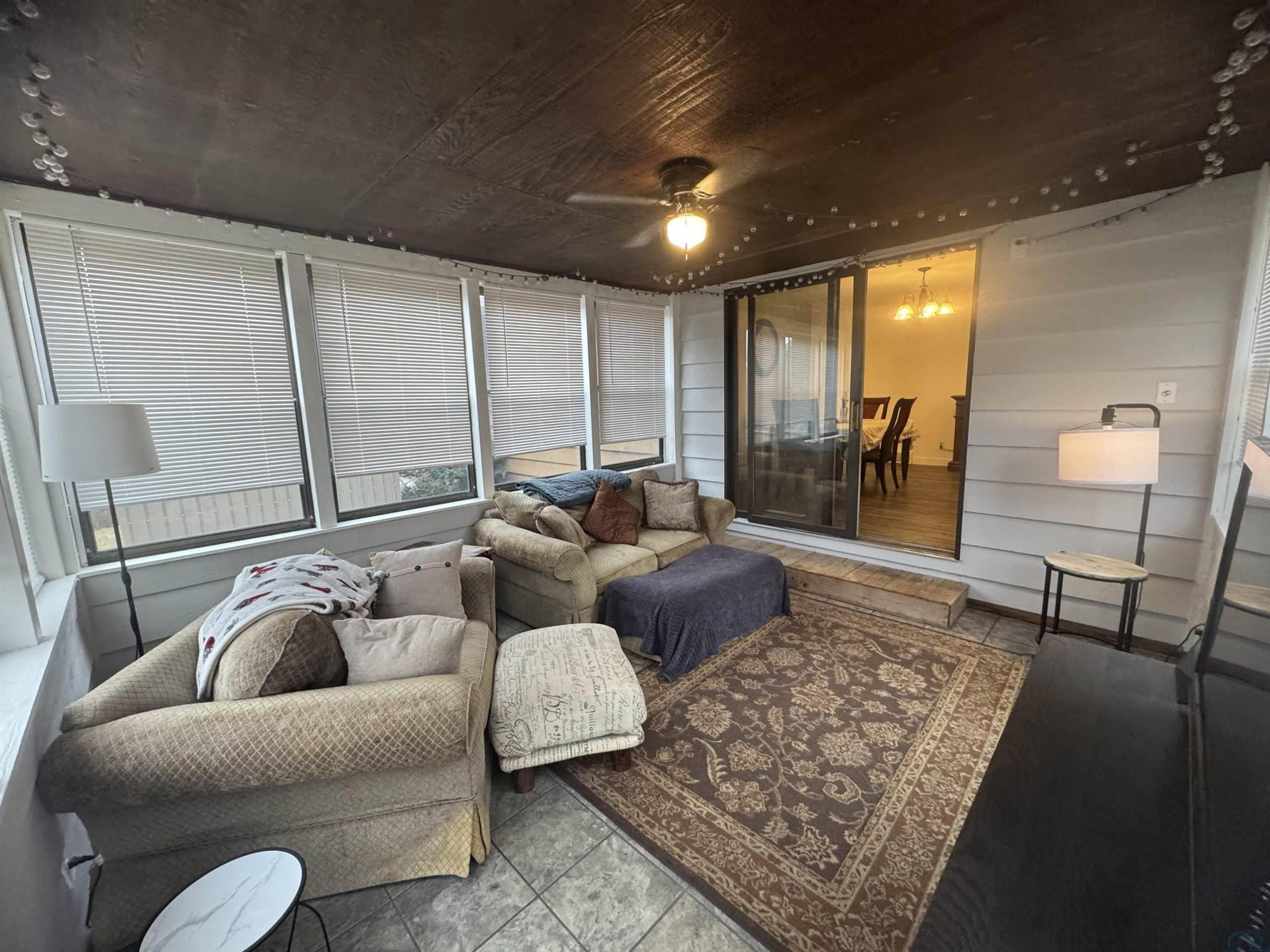 This 3 bed, 3 bath residence that might be just what youâve been searching for! The two car garage has a newly painted floor! The exterior captivates with its cedar siding and impressive tall stone chimney. Inside, youâll find a front living area boasting a vaulted ceiling and a distinctive wood-burning fireplace, perfect for cozy evenings. The spacious kitchen features a center island thatâs ideal for baking. Adjacent to the dining area is a 12â x 14â three-season porch. The main floor hosts three bedrooms and two bathrooms, one of which features heated floors for ultimate comfort. Venture to the lower level to discover a sizable entertainment room with a wet bar, a newly added Egress window, and an expansive laundry area perfect for all your folding needs. Additional highlights include another bathroom with heated floors, and a small kitchenette making it a dream for canning enthusiasts. The backyard offers a variety of trees and plants, and a generously sized storage shed. This home is a MUST-SEE to truly appreciate all it has to offer.