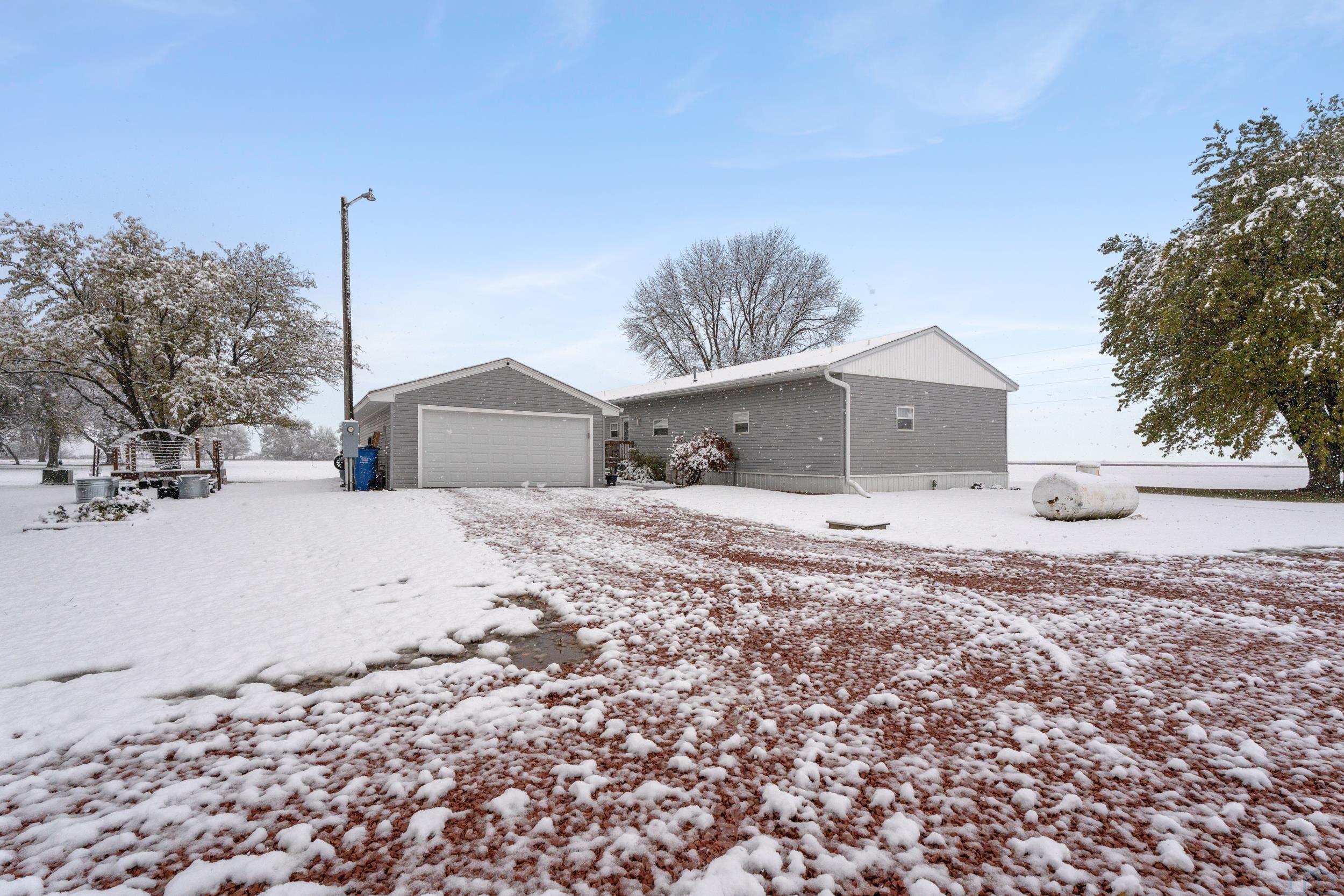 Rare 1.42-acre acreage on a paved road with lots of square footage for only $250,000! Donât miss your opportunity to get gorgeous sunsets, fantastic gardens, a spacious master suite, detached garage and large shed so close to Vermillion and USD! Set on 1.42 acres along SD-19, this 3 bed 2 bath, 1,456 sq ft manufactured home offers country elbow room with quick Vermillion access. Two outbuildings provide room for everything; a detached garage and a large machine shed with a concrete floor, suitable for equipment, shop, or storage. The home has newer HVAC (2020), siding (2019) and a complete interior upgrade in 2018. Outdoor space supports gardening, play, and gatherings with extensive parking for trailers or toys. Located .4 miles to Spirit Mound trailhead, about 6.4 miles to USD campus and downtown, about 6.5 miles to Hy-Vee and coffee shops on Cherry Street, and about 12 miles to I-29 at Exit 26.
