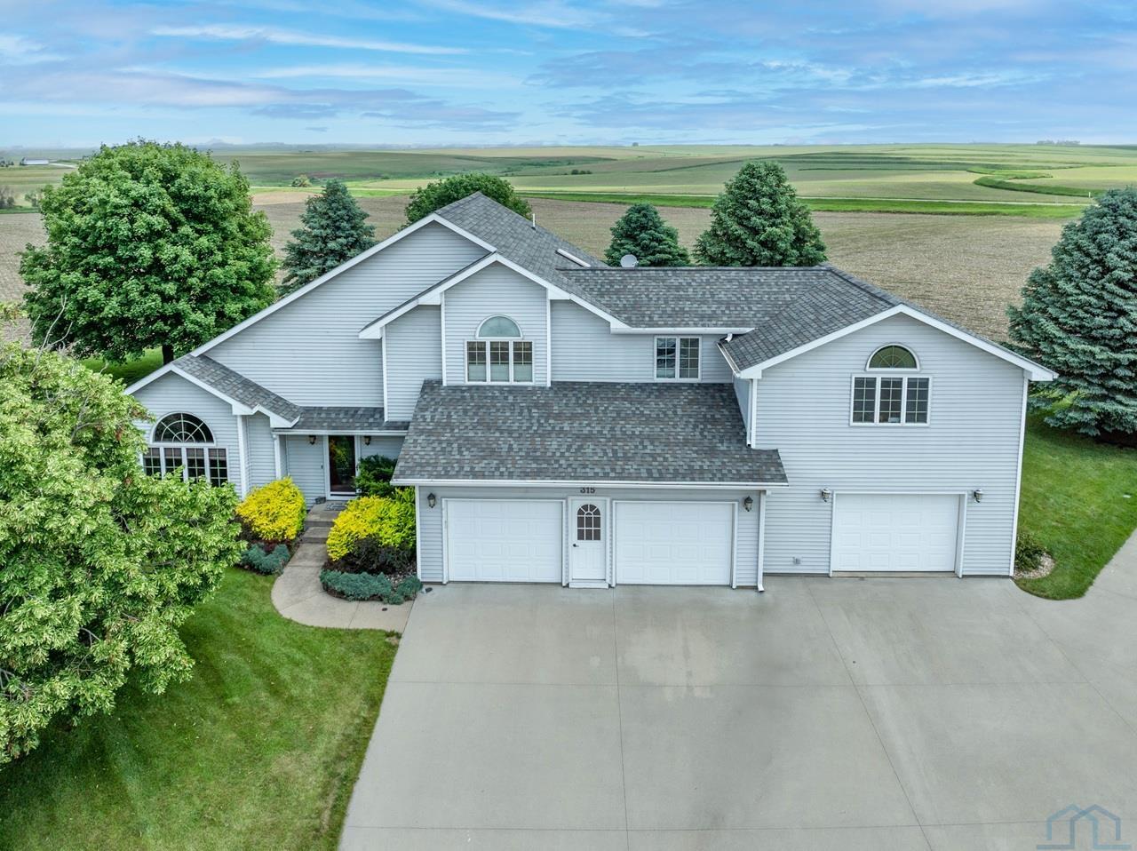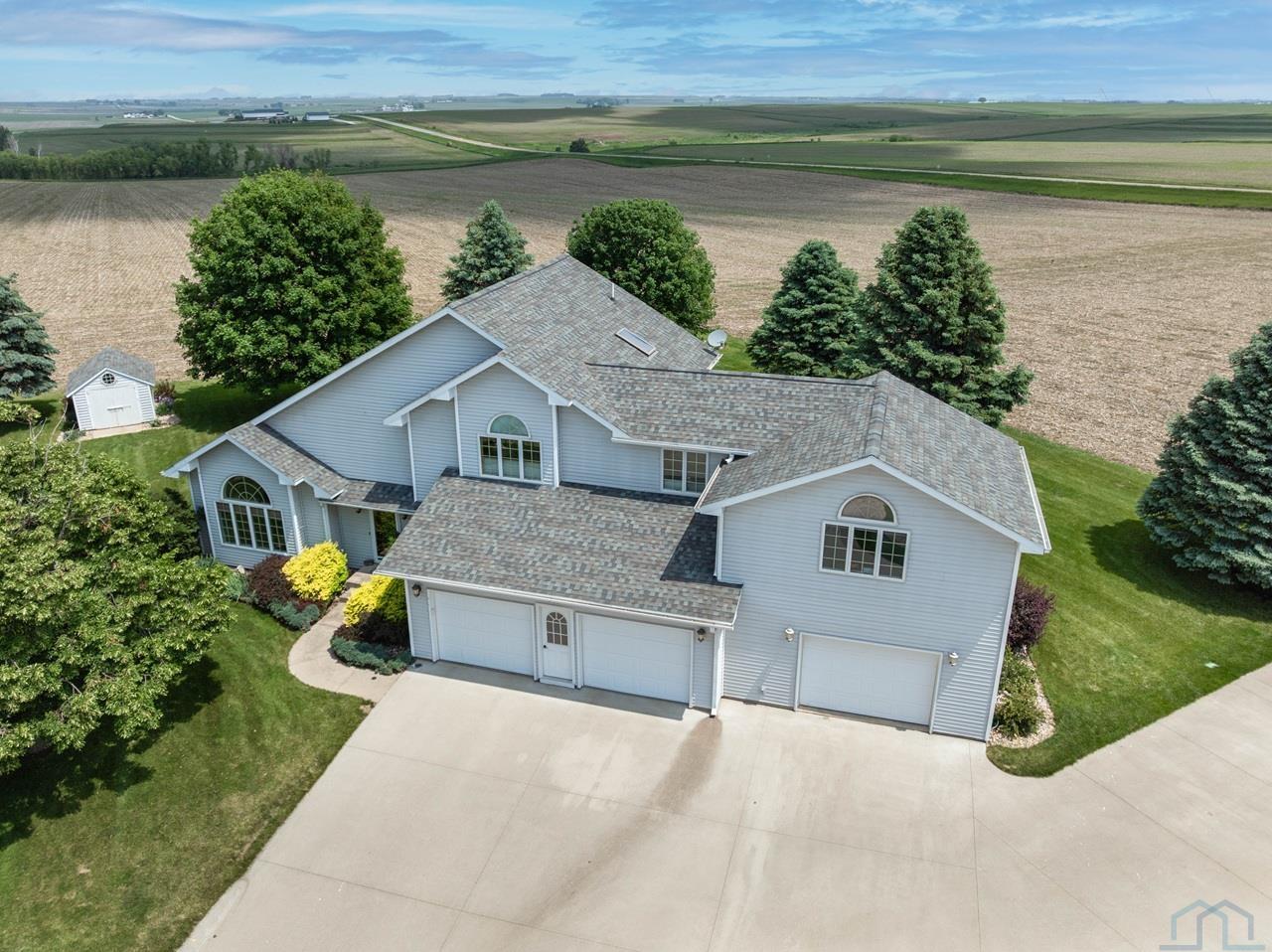 This is the home that takes your breath away! This gorgeous, up-scale home is at the end of a cul-de-sac nearly within a rural setting. Entering the front door is the vaulted foyer with a sky light and leads into the formal living room. The formal living room has a bay window, an open stairway and at the far end of the room is the formal dining room. Stepping into the eat-in kitchen with stainless steel appliances and warm wood cupboards and flooring. The open concept design gives the kitchen, family room and sunroom considerable living space. The views out the sunroom's expansive windows are visually impressive! Iowa farmland and rolling hills, beautiful! In the sunroom and the family room are gas fireplaces, lots of natural light and those awe-inspiring views are breathtaking! The half bath, the doors to the attached 3 car garage and the basement are in the hallway off the kitchen. Down stairs are 2 bedrooms, a 3/4 bathroom with laundry, a 3rd living space, utilities and storage areas. Up the stately open staircase to the second floor is a bedroom, a full bathroom, and a large master suite with a luxurious master bathroom, laundry, and walk-in closet. Also off the master suite is a bonus room, a great place for reading or doing crafts. At the side of the home is a large parking pad for an RV with sewer dump and 30/50 amp power. Out the back of the home is a large, stamped concrete, outdoor entertainment area to relax and enjoy a glass of sweet tea and the lovely landscaped lawn, garden areas and those magnificent views! This home is absolute perfection and a perfect reflection of you! CERTIFIED HOME -- Seller is having the home pre-inspected (home inspections are on order), and seller will provide one (1) year Home Warranty to the buyer.