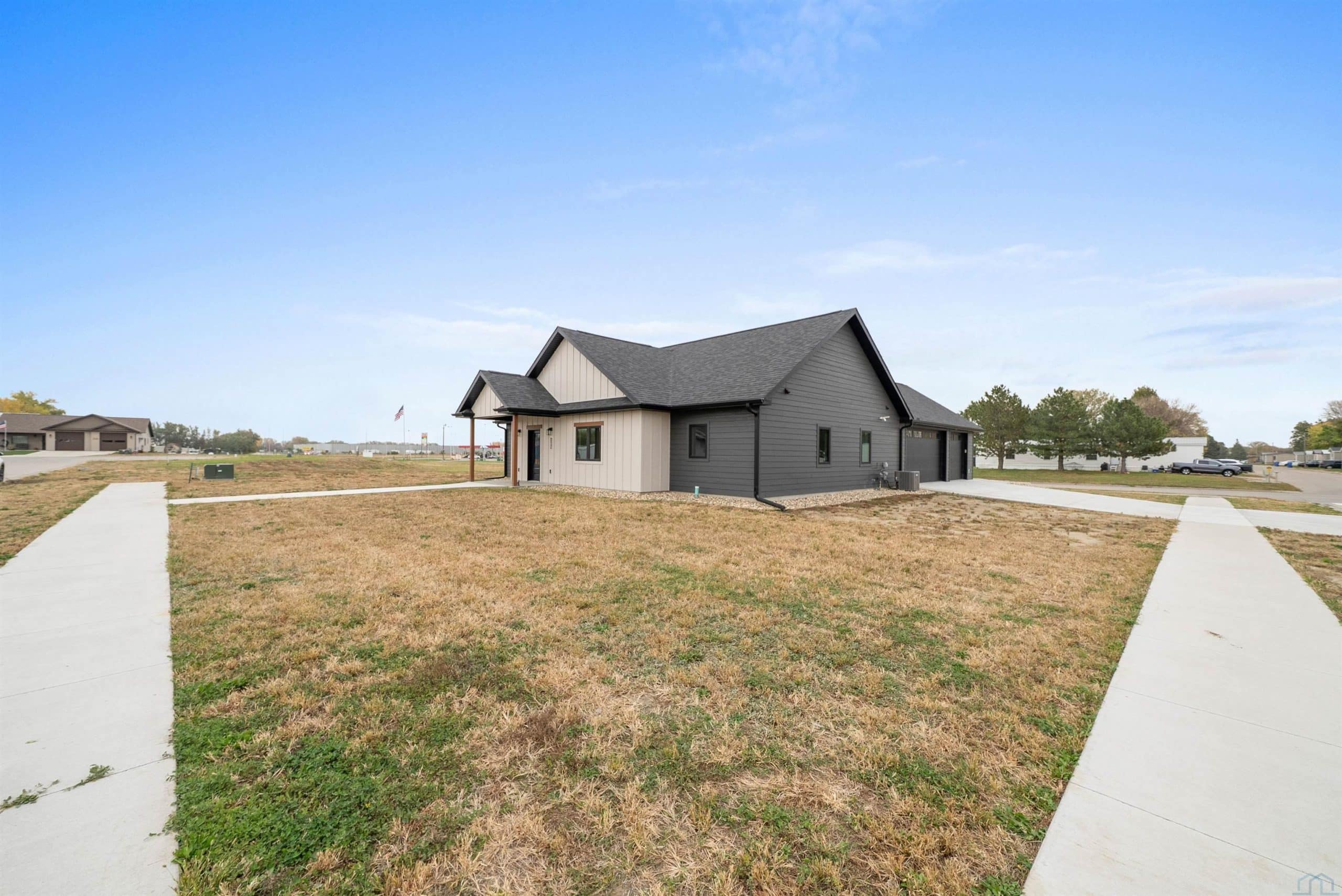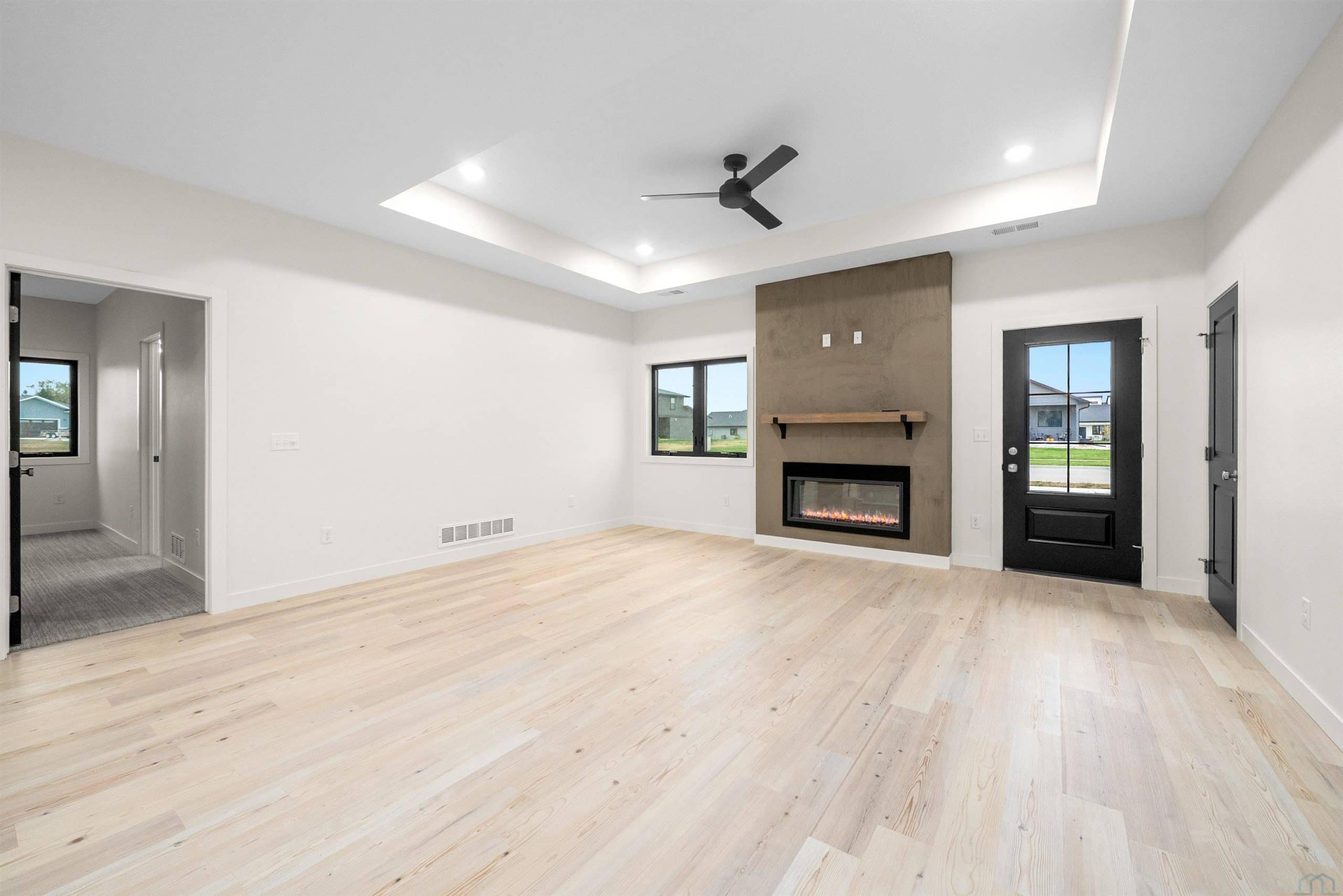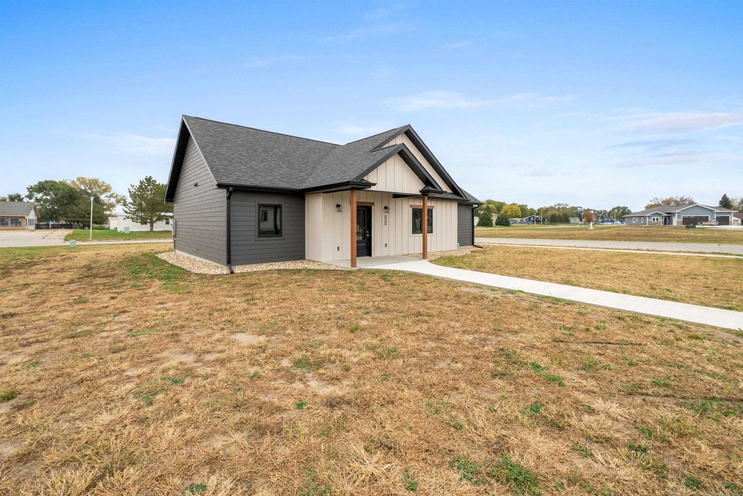 Here's a stunning new construction ranch home by AMS Building Systems that you won't want to miss! This beautifully designed home features a 3-bedroom, 2-bathroom open floor plan. The kitchen is a highlight with stained cabinets, a spacious island, a tiled backsplash, and a walk-in pantry. The living room boasts abundant natural light, a 10-foot tray ceiling, and a floor-to-ceiling electric fireplace, creating an expansive feel. The primary suite is a true retreat, offering a tray ceiling, a walk-in shower, two separate vanities, an extra counter area, a linen cabinet, and a pocket door leading to a large walk-in closet. On the other side of the living room, you'll find two additional bedrooms, both with double closets and organizers, and a conveniently located full bath with a linen closet. The main floor laundry is perfectly situated between the kitchen and garage, providing additional storage with cabinets and a closet. The fully finished, three-stall garage includes a floor drain and a service door to the yard. For outdoor enjoyment, a patio is located just off the kitchen. This slab home offers easy, step-free access throughout. It's located in the beautiful Bliss Pointe development, and the builder is offering a $5,000 appliance credit to the buyer at closing. No HOA fees.