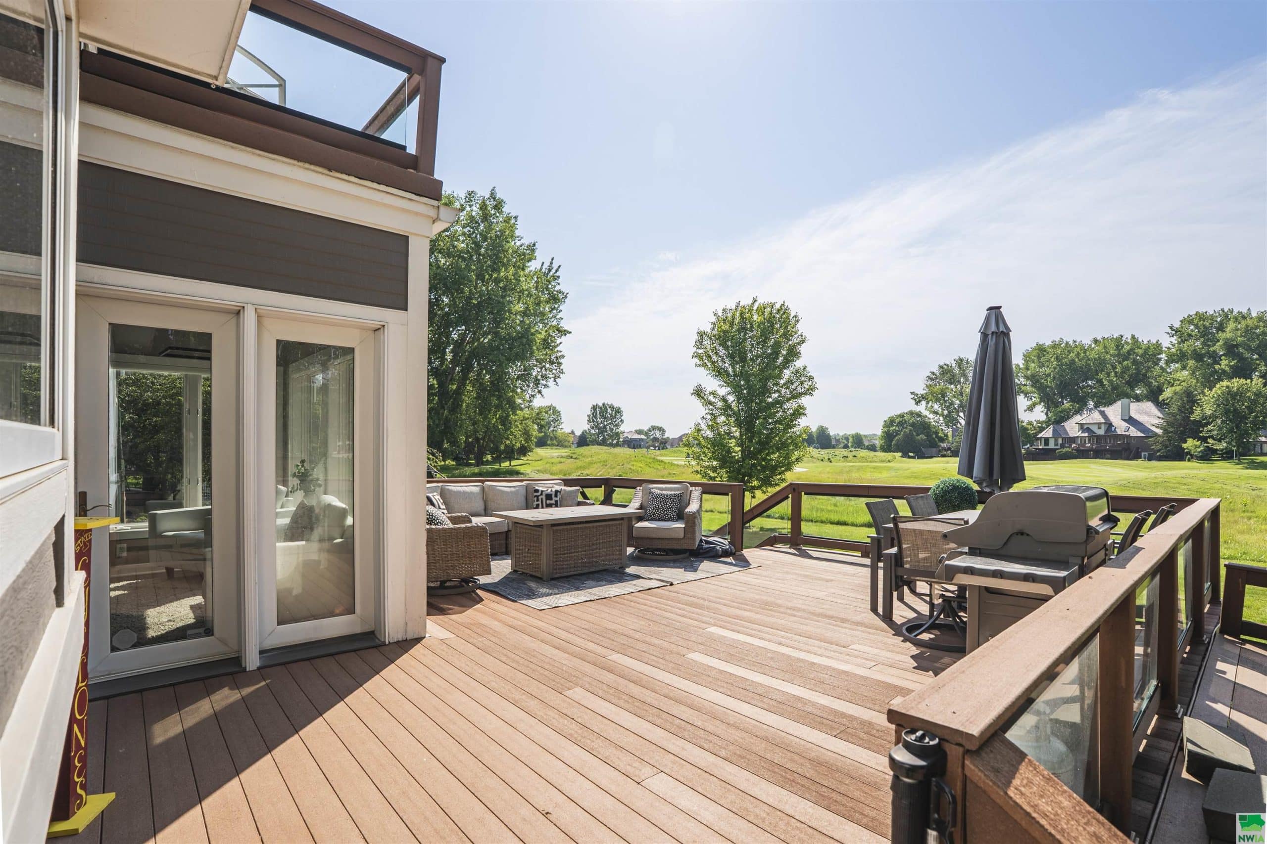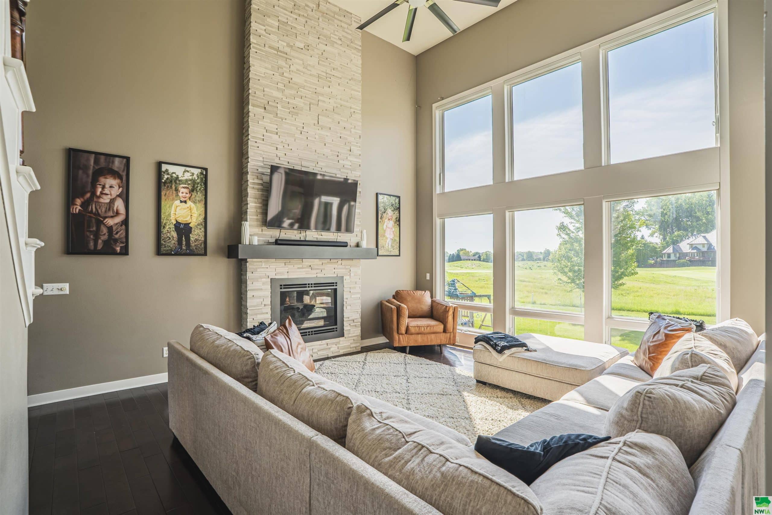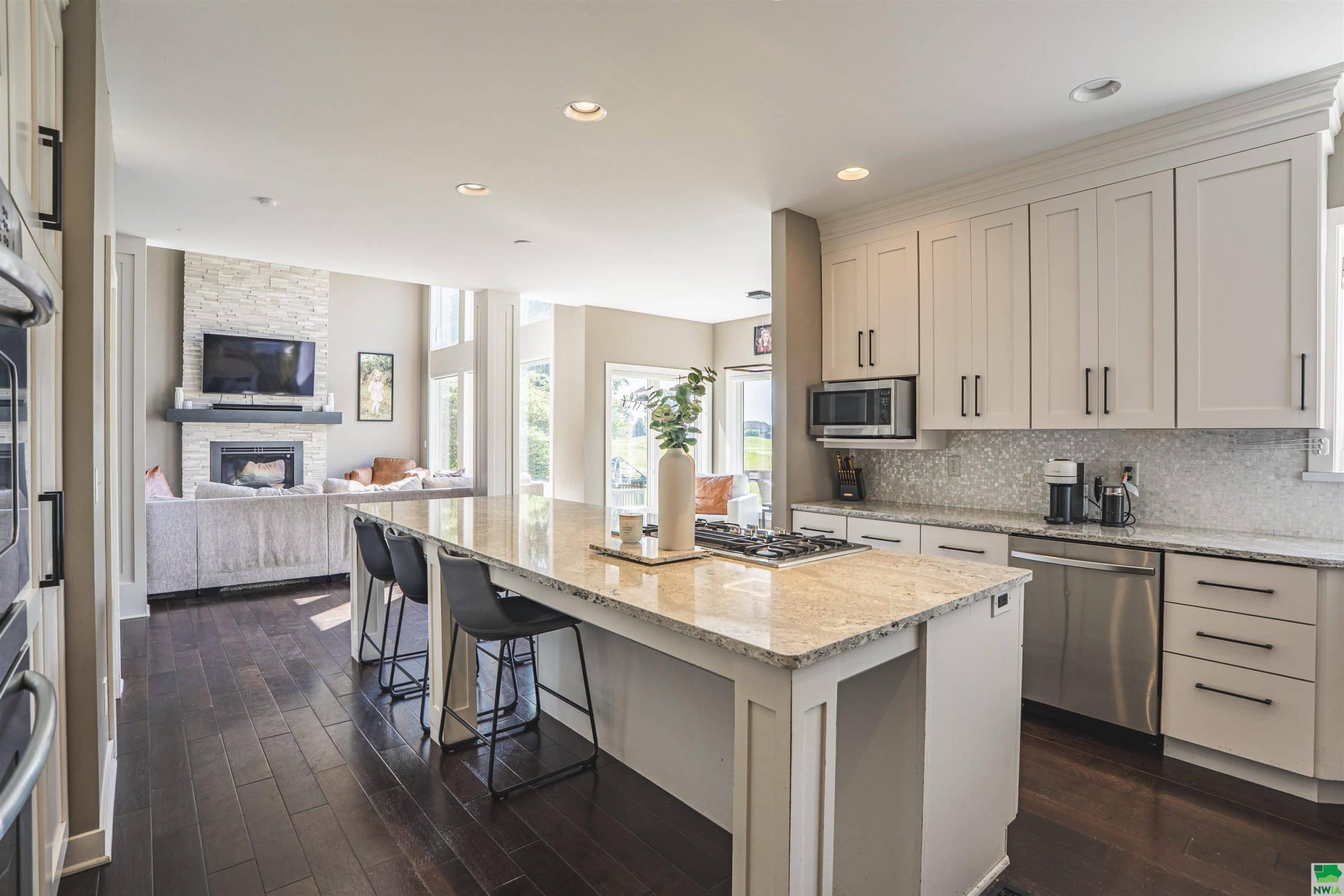 5 BD 3.5 BA Beautiful 1 1/2 Story home located on the 12th Fairway of Dakota Dunes Country Club Golf Course!! Grand entrance with 18 Ft ceilings, spacious great room with stunning view of The Golf Course! Newly updated kitchen cabinets and island and fabulous wood floors! This amazing kitchen flows right into the light and spacious family room! Extra-large main floor master suite with warm and cozy fireplace, 3 bedrooms upstairs, finished lower level with wet bar, large family room, a 5th bedroom and one-of-a-kind entertainment center!