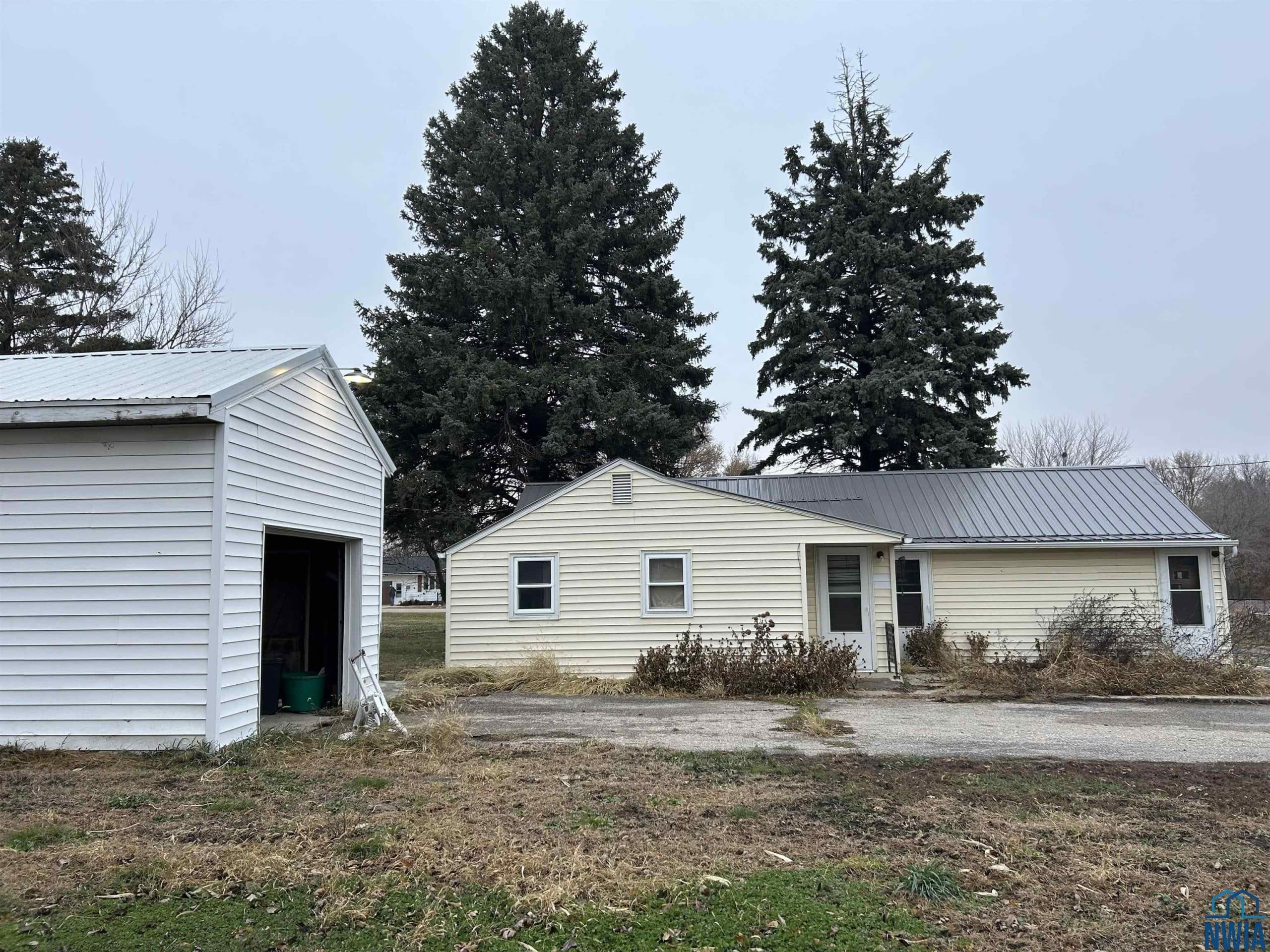 Acreage living in town limits! This ranch style home offers 1.59 acres with mature trees and a few outbuildings. Some need some work, but have potential. Property will be sold AS-IS. Includes 3 beds and 1 bath and main floor laundry.