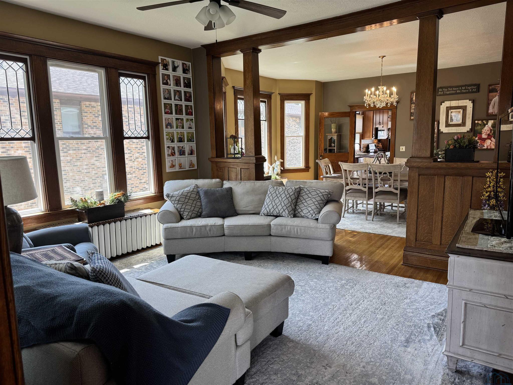 Well built 1915 home with exceptional craftsmanship and modern updates. Built by the Homan Lumber Co, this residence is known by local craftsmen as one of the best built homes in Remsen. The main floor kitchen and entire basement were renovated in 1995. Kitchen features vintage oak cabinetry, Cambria countertops, center island, oak flooring, included appliances, large picture window and door to a spacious composite deck. Dining, living and office areas offer oak floors, colonnades and trim. All windows have been replaced with Gerkin windows, many with leaded glass inserts. Two main-floor bedrooms, remodeled full bath with heated tile and 2 large upstairs bedrooms plus 3 insulated attic/storage rooms (one suitable for future bedroom). Upper level includes a 3/4 bath with radiant heat. Finished basement includes second kitchen, large family room with vintage gas fireplace, full bath and additional flex room. Home has been fully rewired and replumbed, offers boiler/radiators, forced-air gas furnace, central air and 2 heating zones. Exterior features new shingles, fresh paint, cozy front porch, rear composite deck, one-stall garage, plus an additional 60' x 140' lot across the alley with a heated 2 car garage. Agent is related to the seller.