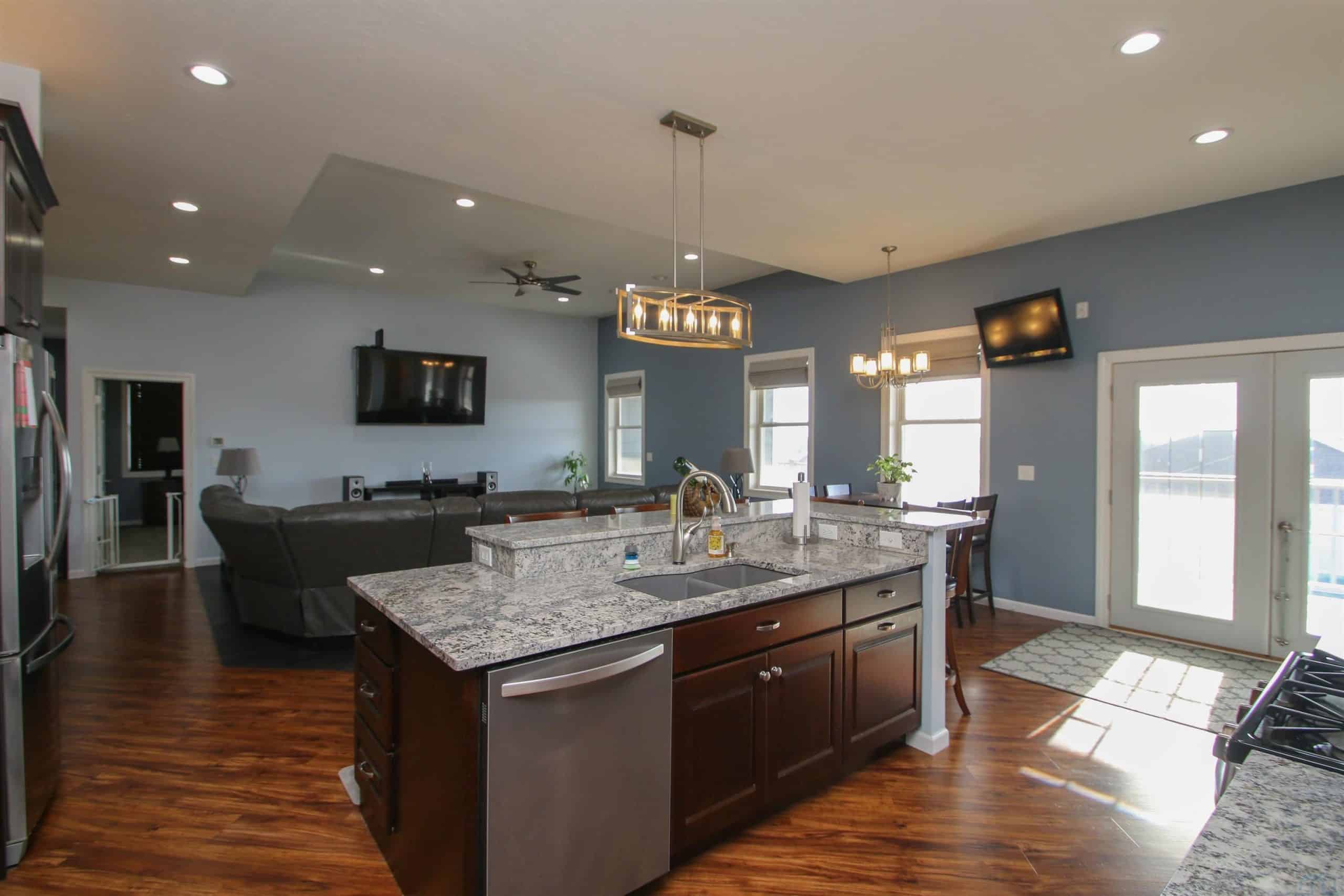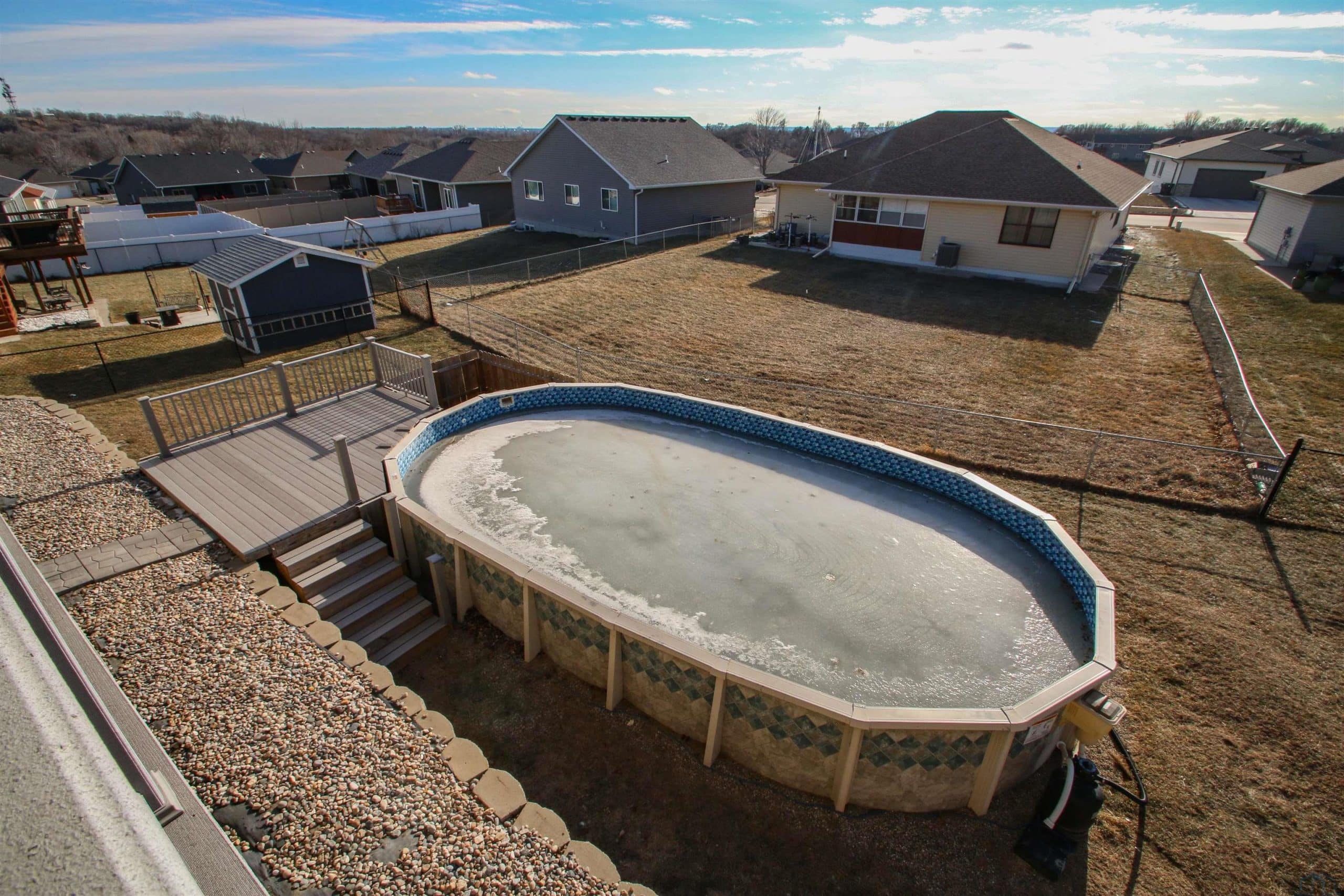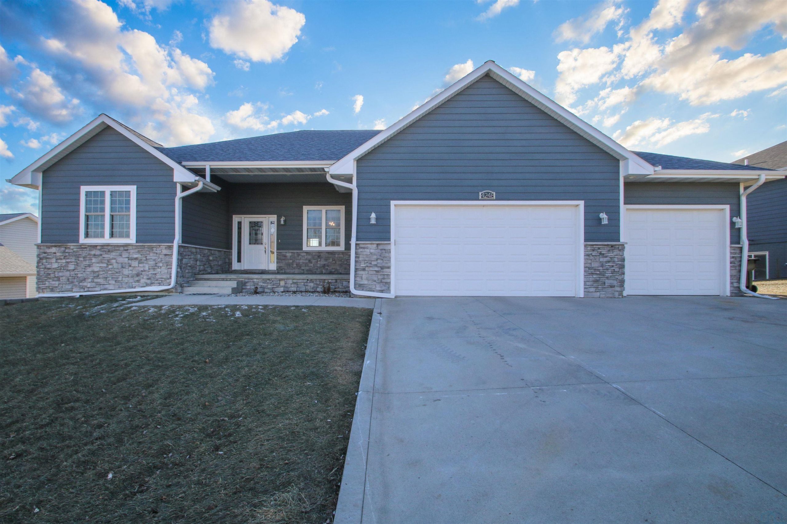 Custom Built One Owner home with fantastic floor plan. Covered front porch, and stone front. Open living room, dining room and kitchen combination, with 10' ceilings. Engineered flooring entry way, dining room and kitchen. Dura Ceramic flooring in living room with rough in for gas fireplace. Kitchen: By Modern kitchen with soft close doors, granite counters, pantry, all appliances stay, island. Off the kitchen is covered deck. Bedroom in front has carpet and double closet. Full bath and Half bath also on the main floor. Primary bedroom has carpet, WIC and 3/4 bath with tile floor, walkin shower, double vanity. Main floor laundry with tile floor and Laundry sink. Lower level just completed with 2 more bedrooms, brand new carpet, walk out family room with 12 x 15 bar area. Only project left is completion of the 3/4 bath. Toilet and vanity are working/ only the shower area is not done. (to be done by the buyer) 1 1/2 lots with this property that is fenced and AG pool is included, with heater and pump. Keystone retaining walls compliment the landscaping. Covered deck. Water heater is getting replaced 1-26. GARAGE: 4 STALL with 220 outlet and heater. For car enthusiasts or workshop people, this garage is 1109 sq.ft. Two years left on city Tax abatement program.