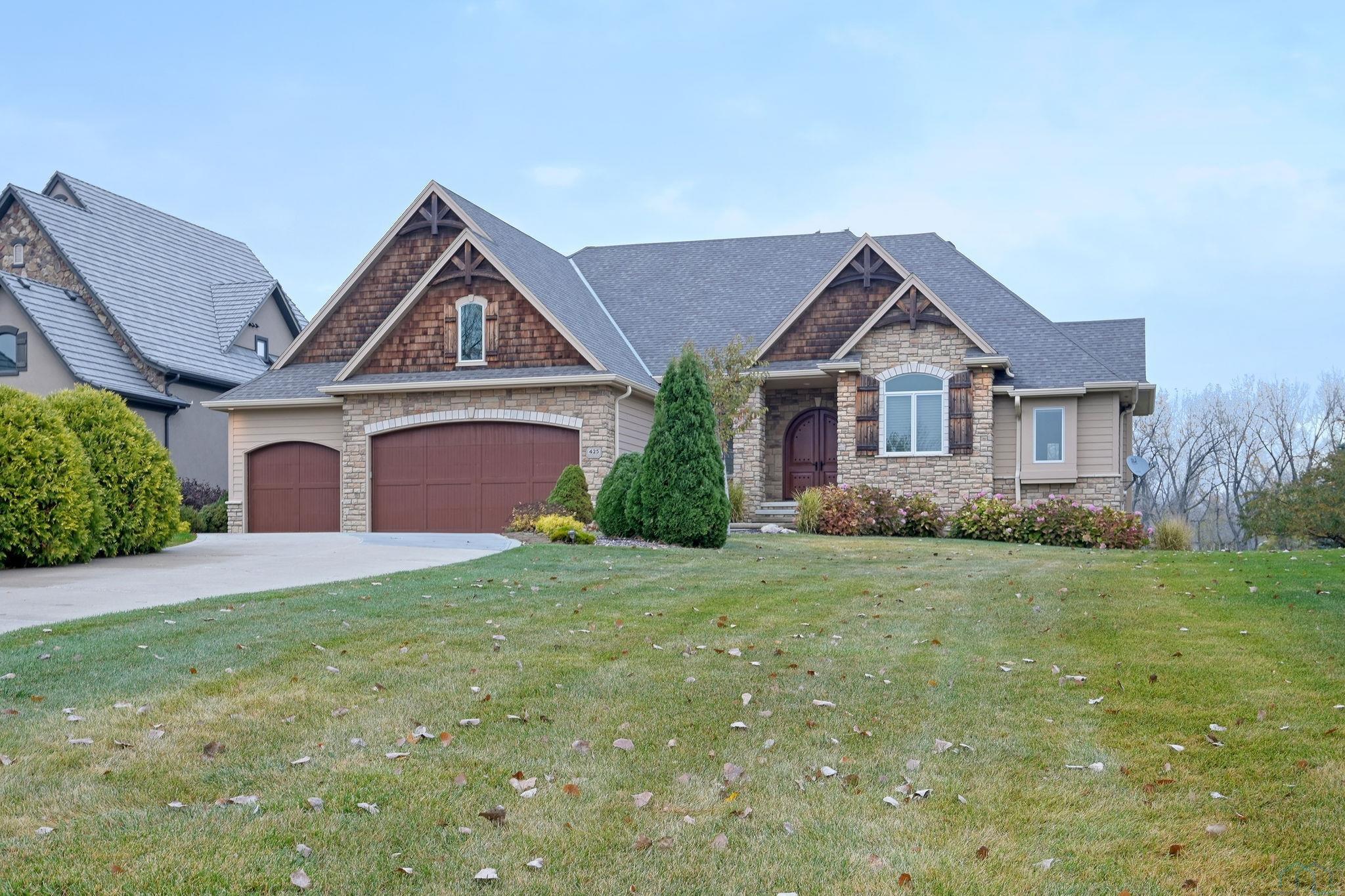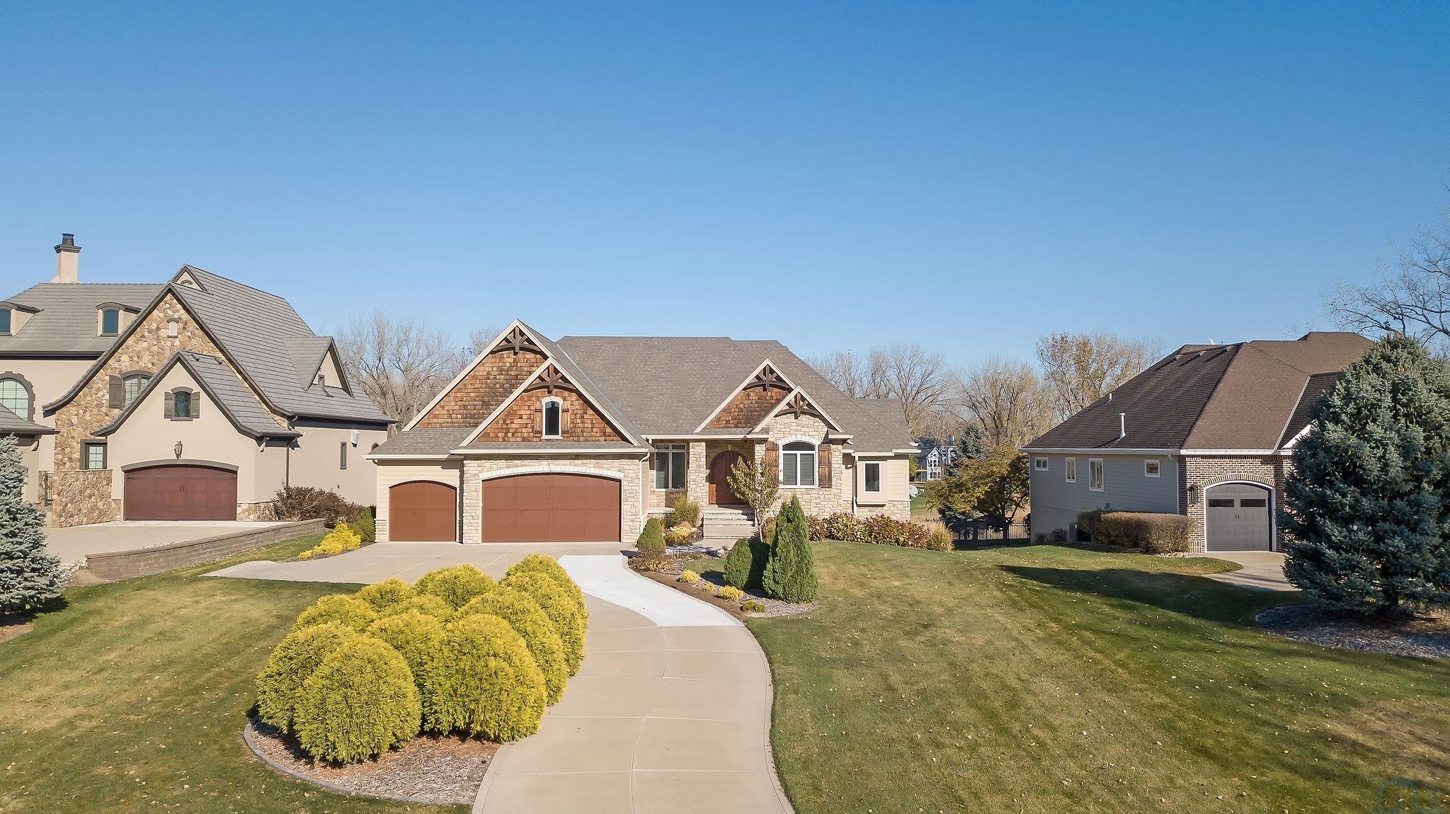 Step into a lifestyle of luxury and comfort in this exquisite contemporary-style home, boasting a prime location with unparalleled scenic views. This residence offers a seamless open-concept design accentuated by a covered deck that invites the beauty of the outdoors inside. The heart of the home features a gourmet kitchen equipped with a top-of-the-line four-burner Wolf stove, Sub-Zero refrigerator, and elegant granite countertops, butlers pantry, An inviting breakfast bar and a cozy eating area with a slider open onto the covered deck, perfect for alfresco dining and entertaining. Relax in the spacious living room, where a modern gas fireplace and expansive windows frame spectacular views. The adjacent dining room and a well-appointed den provide additional space for relaxation and entertainment. A convenient main floor laundry room includes a sink and ample cabinetry, enhancing functionality. Living spaces include two well-sized bedrooms and a luxurious master suite complete with a walk-in closet, a spa-like walk-in shower, and a soothing tub. All designed to provide a serene retreat after a long day. The semi-finished basement offers potential for customization with rooms already sheet rocked, perfect for future expansion. It features a walk-out access and is prepped to become additional living space, a home gym, or a media room. Additional highlights of this stunning home include Geo-thermal heating, elegant Travertine tile flooring, and premium Hunter Douglas blinds, New shingles 3 years ago, located on the 9th fairway of Dakota Dunes Golf Course, Geo Thermal heating the average utilities are 120 per month. Don't miss the opportunity to own this superbly designed home that combines style, comfort, and a touch of luxury. Schedule your viewing today and experience living at its finest!