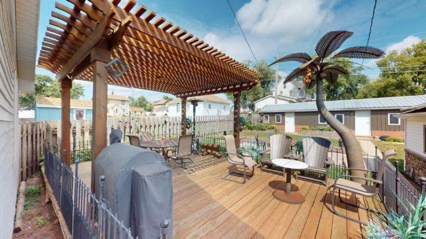 This home just got even better. This home has a new roof & new siding for fresh curb appeal and radon mitigation system. Located in the heart of Cherokee, this spacious and character-filled property blends historical charm with modern comfort. The inviting front porch leads into the formal dining room, currently styled as a cozy sitting area. The living room is large enough to accommodate all your furniture and features the original open staircase, a beautiful nod to the home's heritage. Off the living room, you'll find a main floor bedroom with pocket doors for privacy and direct access to the main floor bathroom, which can also be reached from the kitchen. This bathroom is spacious and features a gray onyx shower and heated floors for that added touch of luxury. The fully updated eat-in kitchen offers everything you needâoak cabinets, granite countertops, a pantry, and heated flooring. Laundry is conveniently located just off the kitchen, along with access to the back door. Head upstairs to find three generously sized bedrooms, including a master suite separated by a staircase for added privacy. A bathroom with a jetted tub, is located off the master and serves all upstairs rooms. Original trim throughout adds timeless character, and ample closet space is a standout feature. The partially finished basement includes a rec room (currently set up as a bedroom), an additional walk-in shower and bathroom, and the original safe roomâcomplete with its historic heavy safe door, once used to store a prized stamp collection. Step outside to your private backyard retreat, complete with a large patio, pergola, and fenced yard. A second garage with a dedicated woodworking area offers even more space for hobbies or storage and an additional garage space! All windows replaced, updated electrical and HVAC, and home is sided! Just need to move in! Sellers also own the lot next door which they are willing to sell for an additional price.