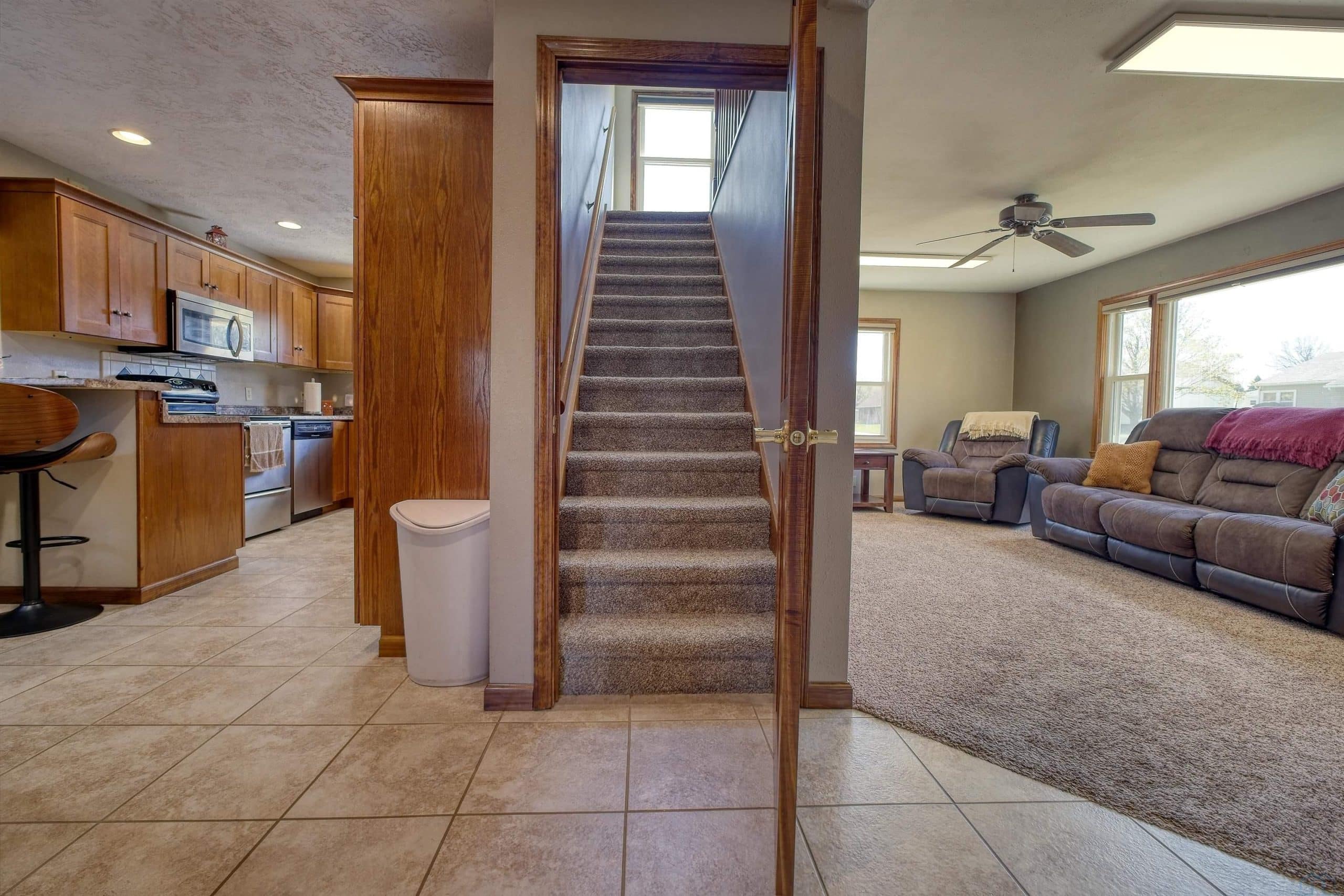 Welcome home to 435 North Lynn... Charming 4~bedroom, 3~bath home featuring updated finishes and a bright, open layout. The kitchen offers generous counter space and storage, while the adjoining dining and living areas flow seamlessly to a private backyard with large deck! Main level has 2 bedrooms and 1 full bath. Upstairs includes two bedrooms, a half bath, and ample rafter storage. The spacious lower level provides flexible space for a media room, guests, or a home gym. Also laundry room and a 3/4 bath. All new windows, new roof, new flooring and an over sized heated/cooled two-car garage with full storage above.This home has efficient systems, and is located in a quiet neighborhood near everyday amenities~435 North Lynn blends comfort and convenience beautifully!! So many updates its practically new!!
