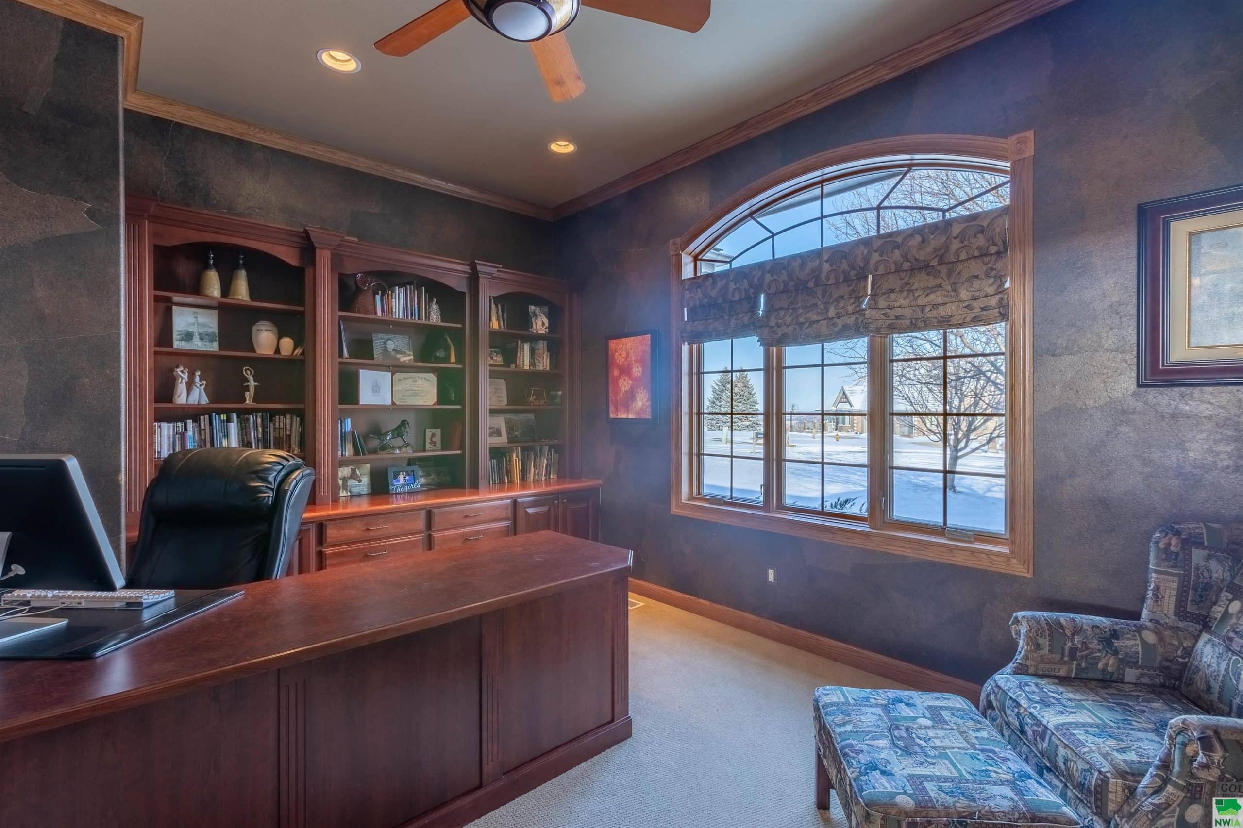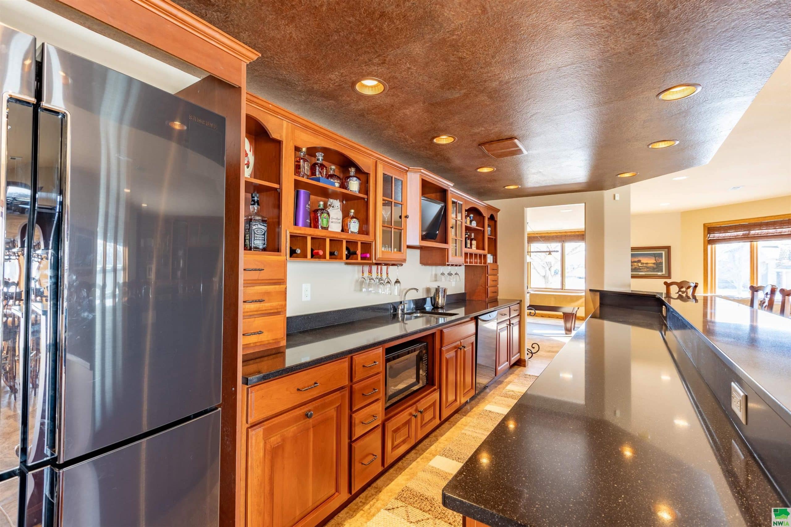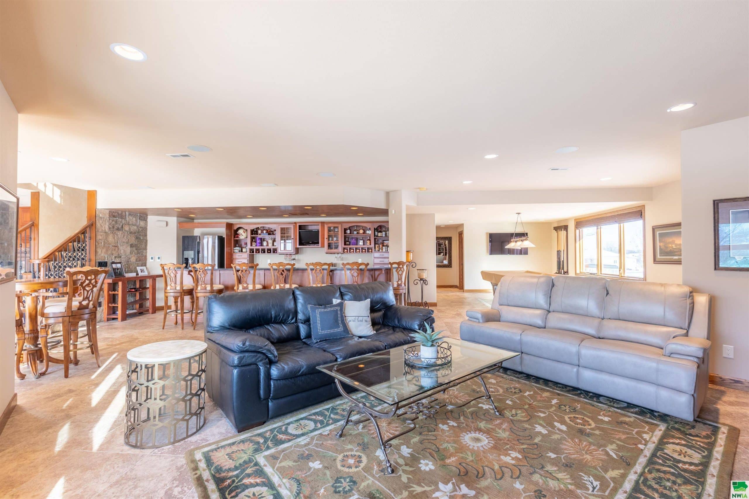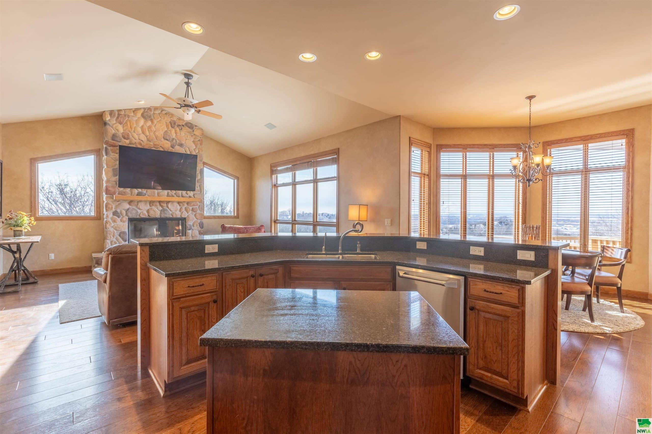 Welcome to Stoneridge Point, this luxurious, one of a kind, custom built ranch home has all the bells and whistles. Now that all the work is done she is ready to show. 2025 new DeCra steel roof and 6" K-guard gutters, freshly painted kitchen and 2025 pool heater. Enjoy the magnificent views & so conveniently located. Custom built 4682 sq ft ranch w/ 4 bedrooms, 4.5 baths, and 962 sq ft oversized 3 stall garage w/ epoxy floor is a show stopper. 1.16 acre (2 lots) landscaped, sprinkled lovely estate w/ walk-out lower level to stamped concrete & paver patios. The main floor provides for informal and formal gathering spaces. Private den, and luxurious and private primary suite, with views. The kitchen is large, NEW fresh painted, has gas range, island, eat-in dining, plus island seating and casual gathering space with fireplace and views. Formal dining is open, spacious and welcoming. Still 2 more bedrooms w/ shared bath and laundry on the main. The lower level will blow you away, it has in-floor radiant tile floors with 3 zones, plus 3 exhaust fans for enjoying wine & cigars in the wine cellar area, or drinks and grilling near the custom cherry bar. This home has large gathering spaces and is an entertainers paradise, it boasts a gorgeous custom cherry bar, wine cellar/room w/ built-ins and wine refrigerators, gaming area, entertainment area with convenient guest 1/2 bath w/ urinal too, plus a guest suite and 3/4 bath. This lower level has 2 sliders that allow for walk-out leading to paver patio, a covered outdoor kitchen and 20x32 heated, covered pool w/ stamped concrete surround. (Pool Heater 2025/Pool Cover 2021) So many custom upgrades impossible to list them all. And don't forget to look for the custom designed hidden room w/ built-in storage cabinets, every persons dream come true!!