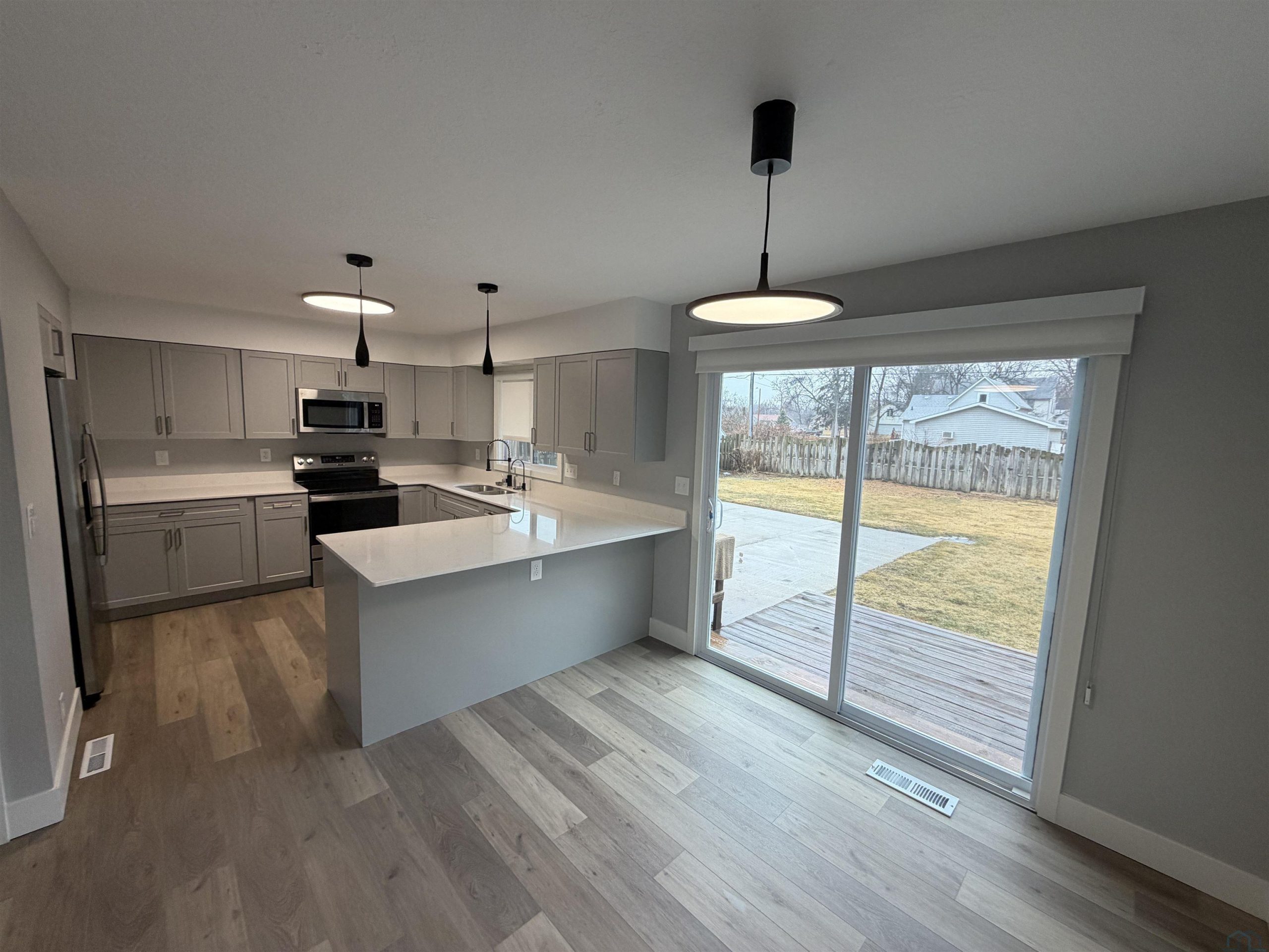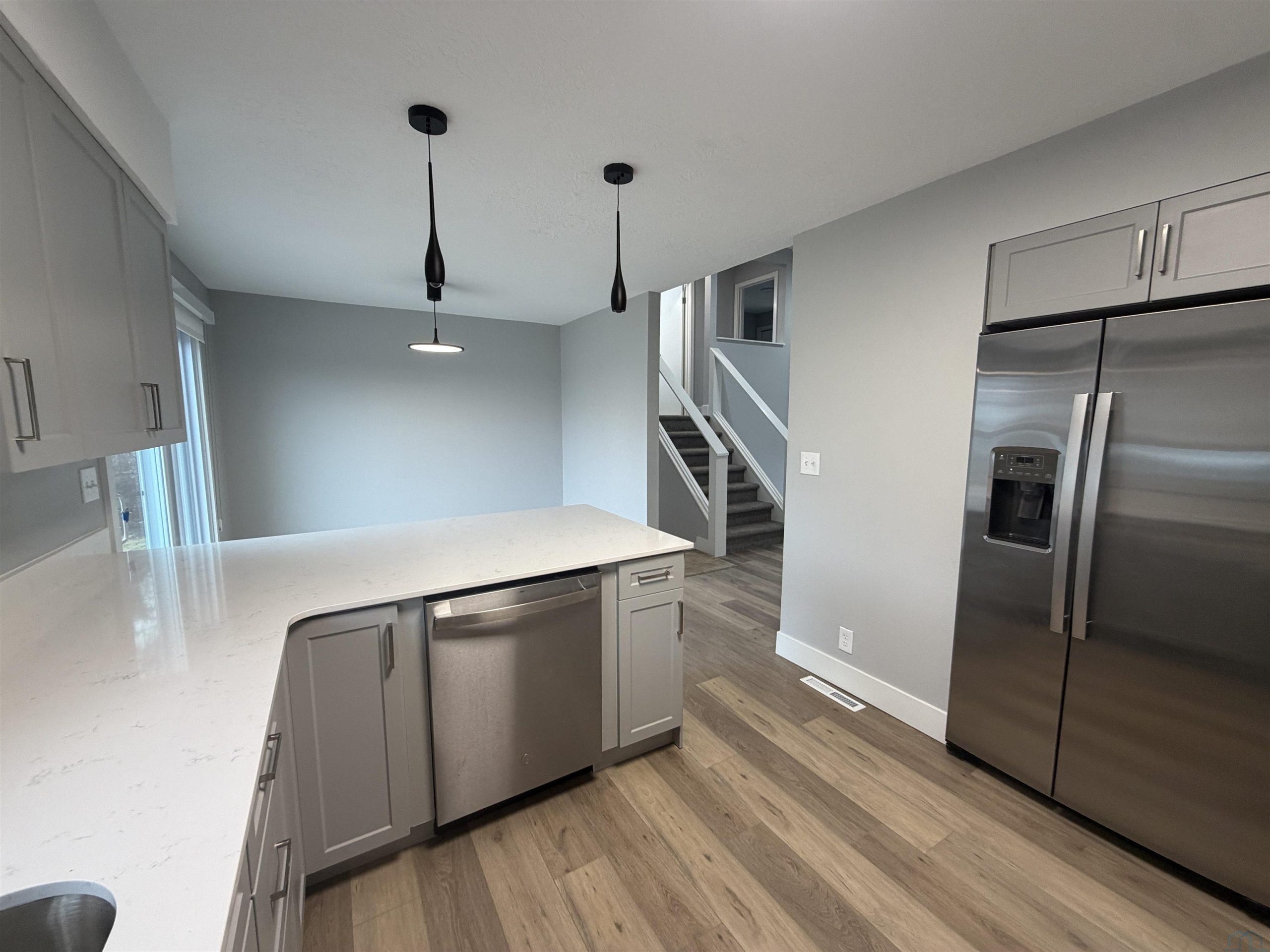 Move-in ready and beautifully updated! This 4-bedroom, 2-bath home features numerous recent upgrades including new windows, new kitchen cabinets, and new flooring throughout. The modern kitchen offers stylish cabinetry, stainless steel appliances, ample counter space, and a peninsula for seating. Bright main living areas provide an open and inviting feel, while the lower-level living room with a fireplace offers additional space to relax or entertain. The home also includes two updated bathrooms and flexible bedroom space that can be used for a home office, guest rooms, or hobbies. Enjoy the large backyard with deck and patio area, perfect for outdoor gatherings or relaxing. Listing agent has ownership interest in the property.