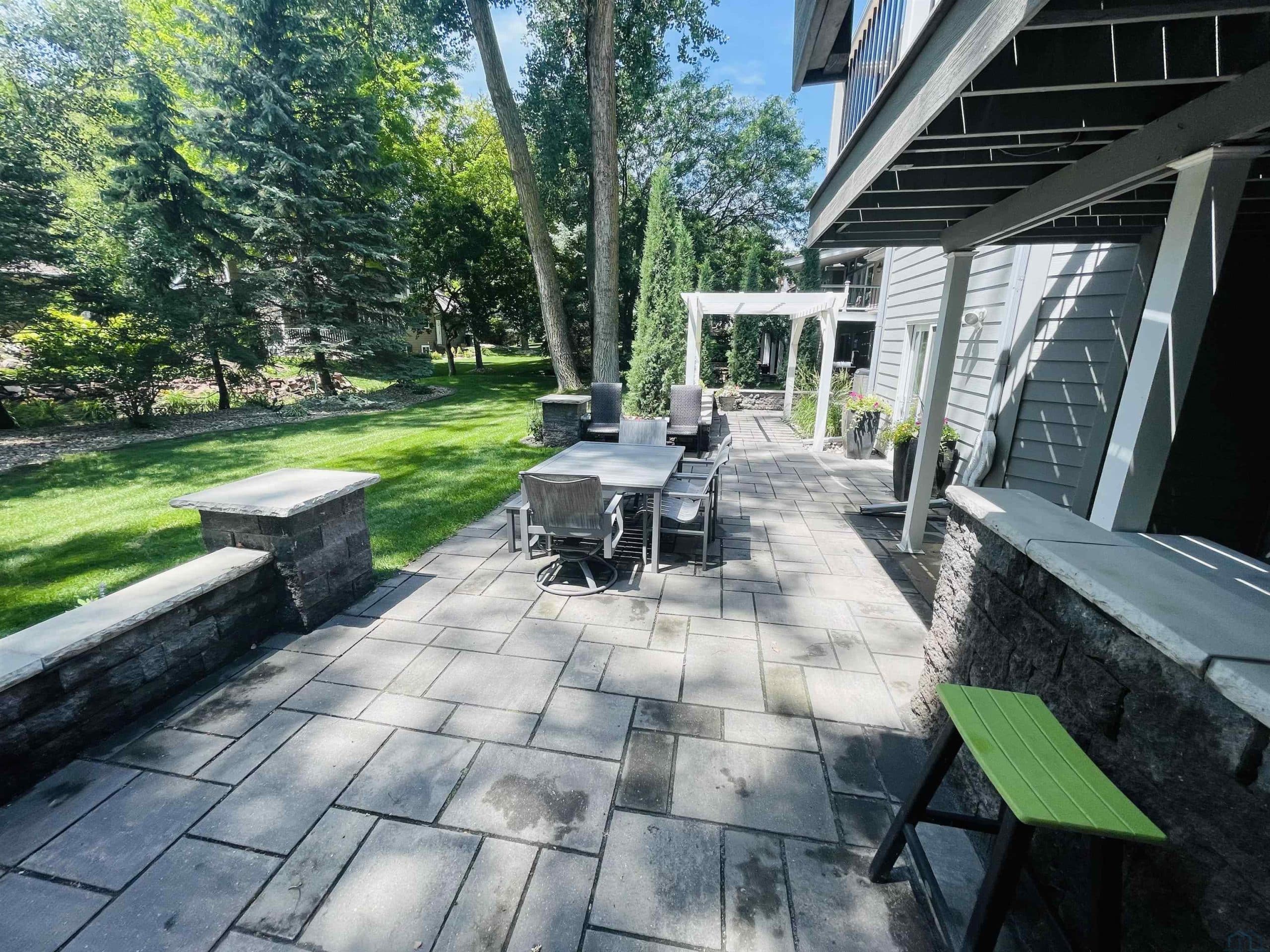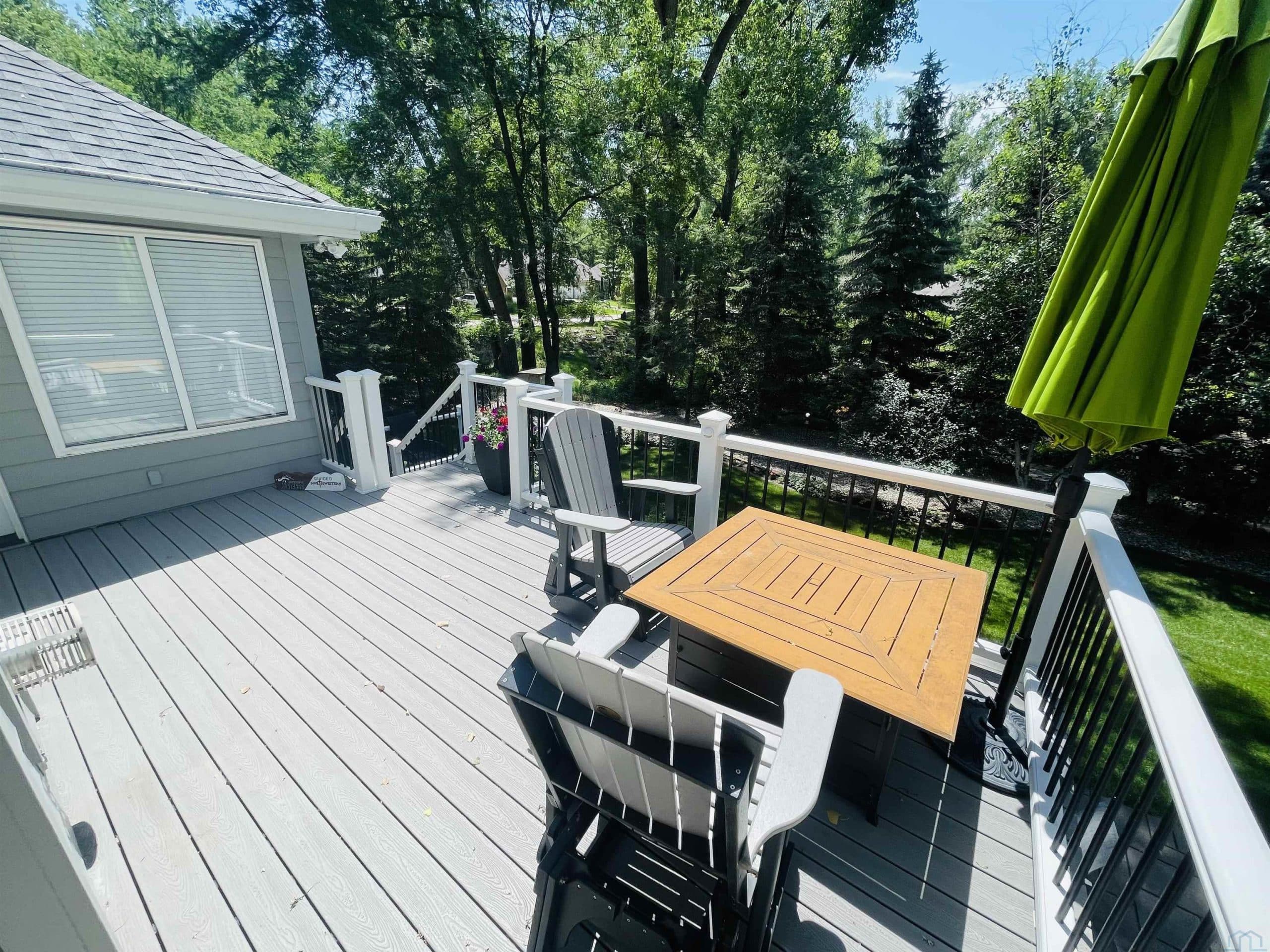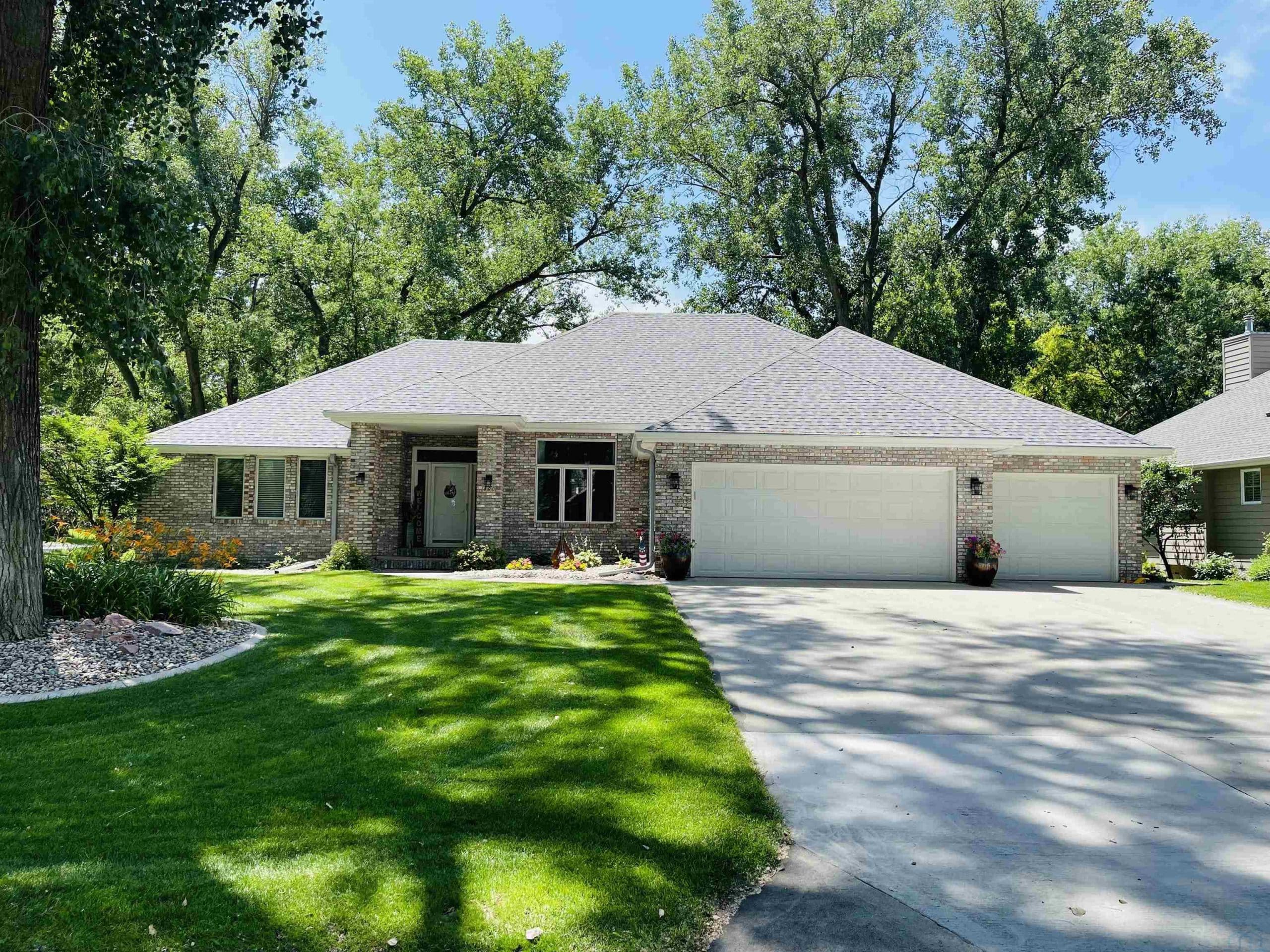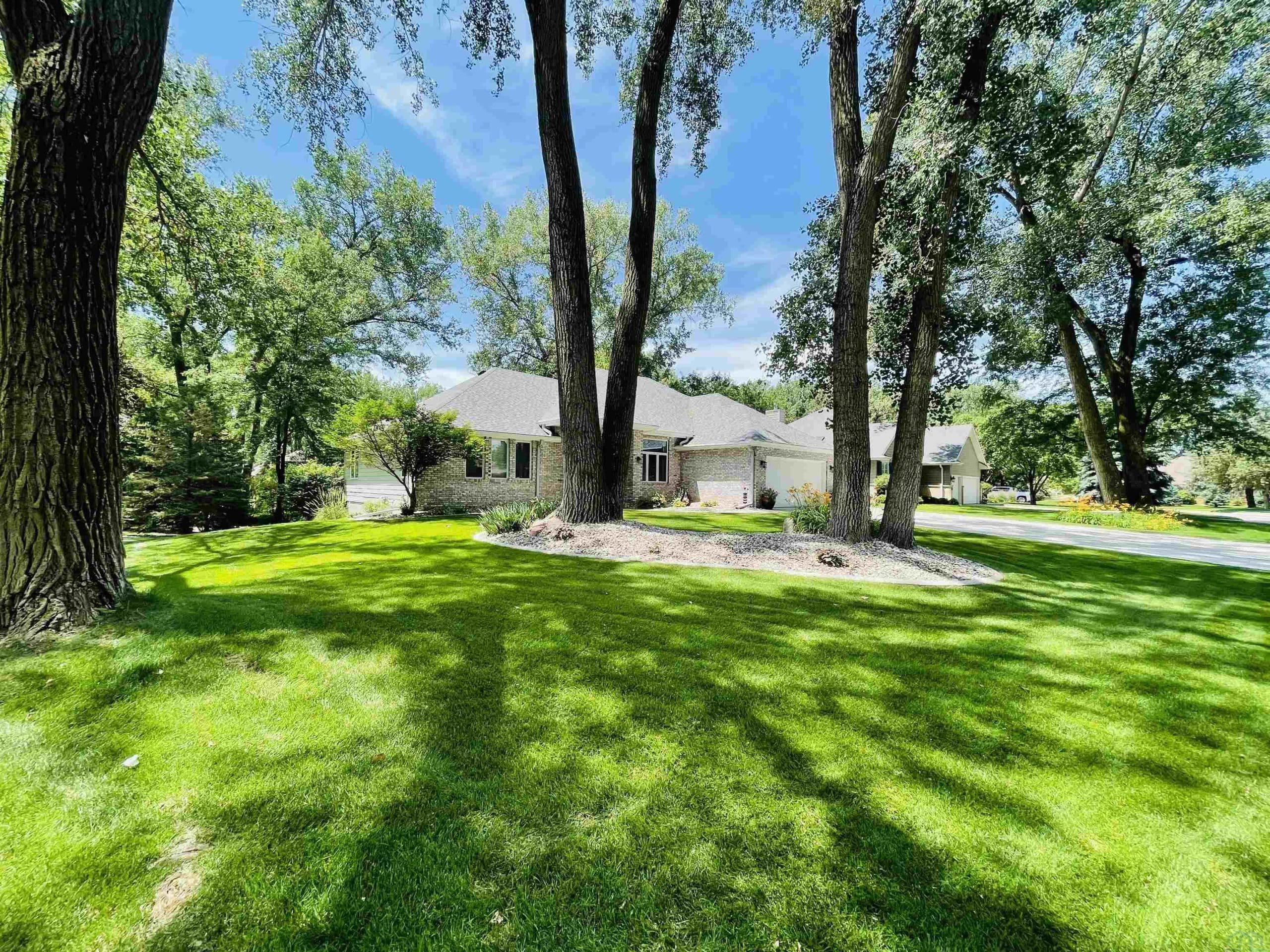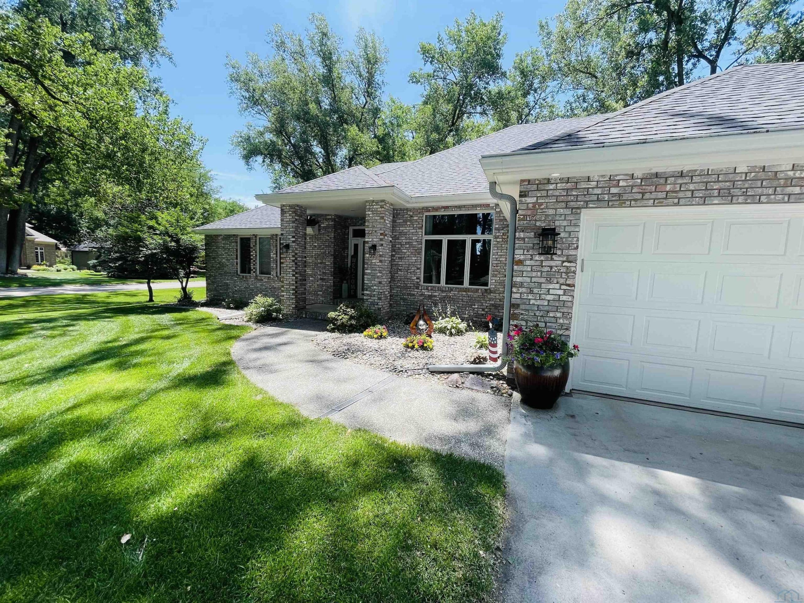 Beautiful ranch style home sitting on a corner lot on a quiet side street in the Country Club section of the Dunes. The property is pristinely manicured with eye popping landscaping surrounded by concrete curbing and rock beds throughout the yard. The brick accent and newer garage doors really make this house stand out, and the tree cover in the backyard provides great privacy. There's also a massive two tiered trex deck overlooking the backyard with a graciously sized stone paver patio below it stemming off of the walkout basement. The patio features a covered sitting area and pergola. When you step into the house through the front door you will notice how big all of the rooms in the house are. The formal dining room and den are on each side of the foyer, and they both include Brazilian cherrywood floors and windows overlooking the front yard. The living room will be straight ahead and shows a vaulted ceiling and gas fireplace. There's a bonus 3 season room that connects to the living room and backyard deck that has windows overlooking the backyard lining the room. The eat-in kitchen is just steps away from the living room and boasts granite countertops, an island below pendant lighting, and SS appliances that include a newer dishwasher and fridge. The guest bedroom and bathroom with heated tile flooring and a tiled walk-in shower are on one side of the main floor, and the master bedroom is on the other side of the main floor. The master bedroom presents a master bathroom with dual vanities, and a WIC. The basement also impresses with three large bedrooms and two bathrooms. One of the bedrooms is an en suite bedroom that comes with a bathroom and has direct access to the backyard patio. There is also a set of stairs in the storage room just outside of the en suite bedroom that lead up to the garage. Also, this home has never had any water issues, includes a smart HVAC system, smart garage door, is wired for a security system, and could be plumbed for central VAC.