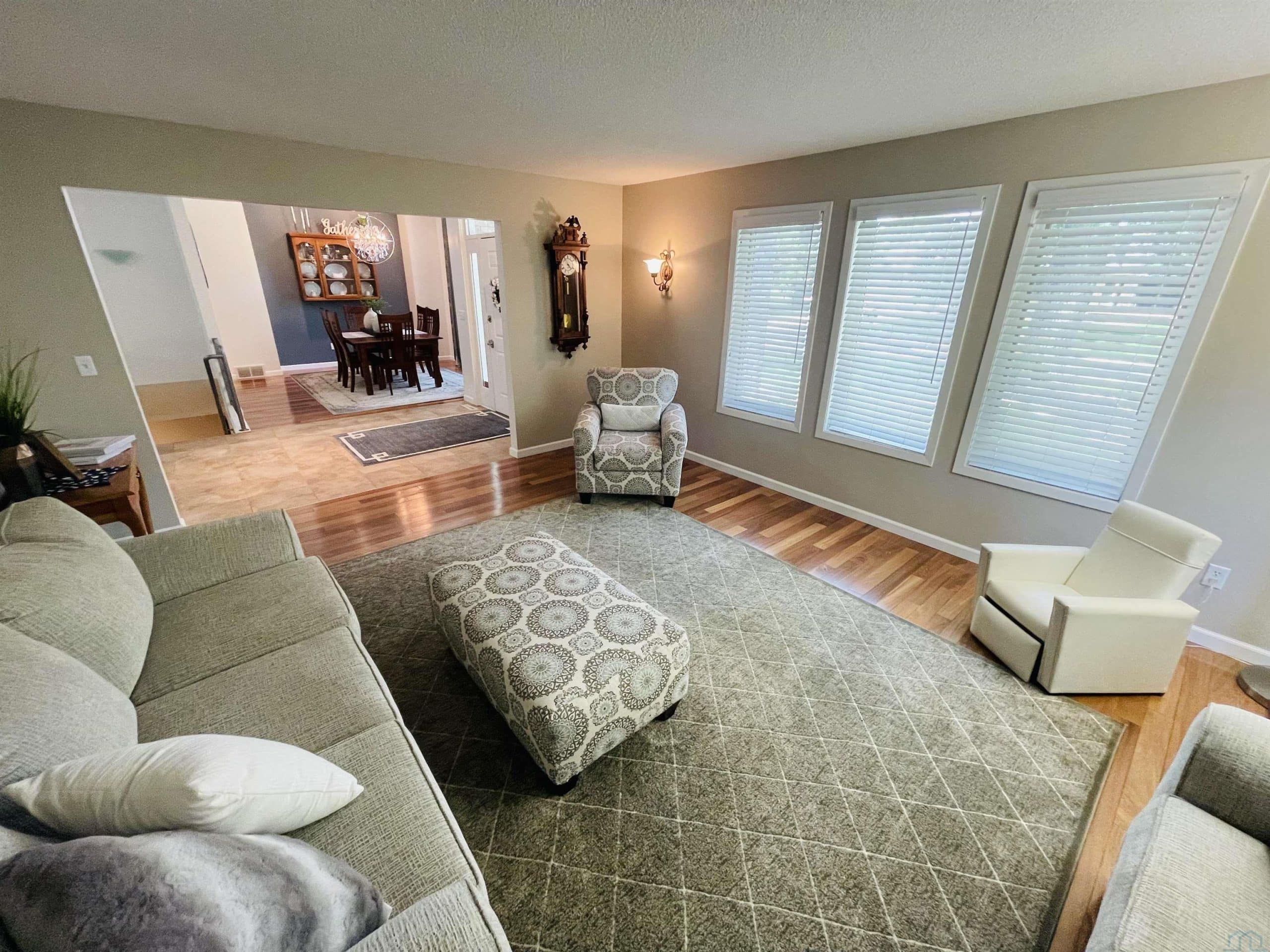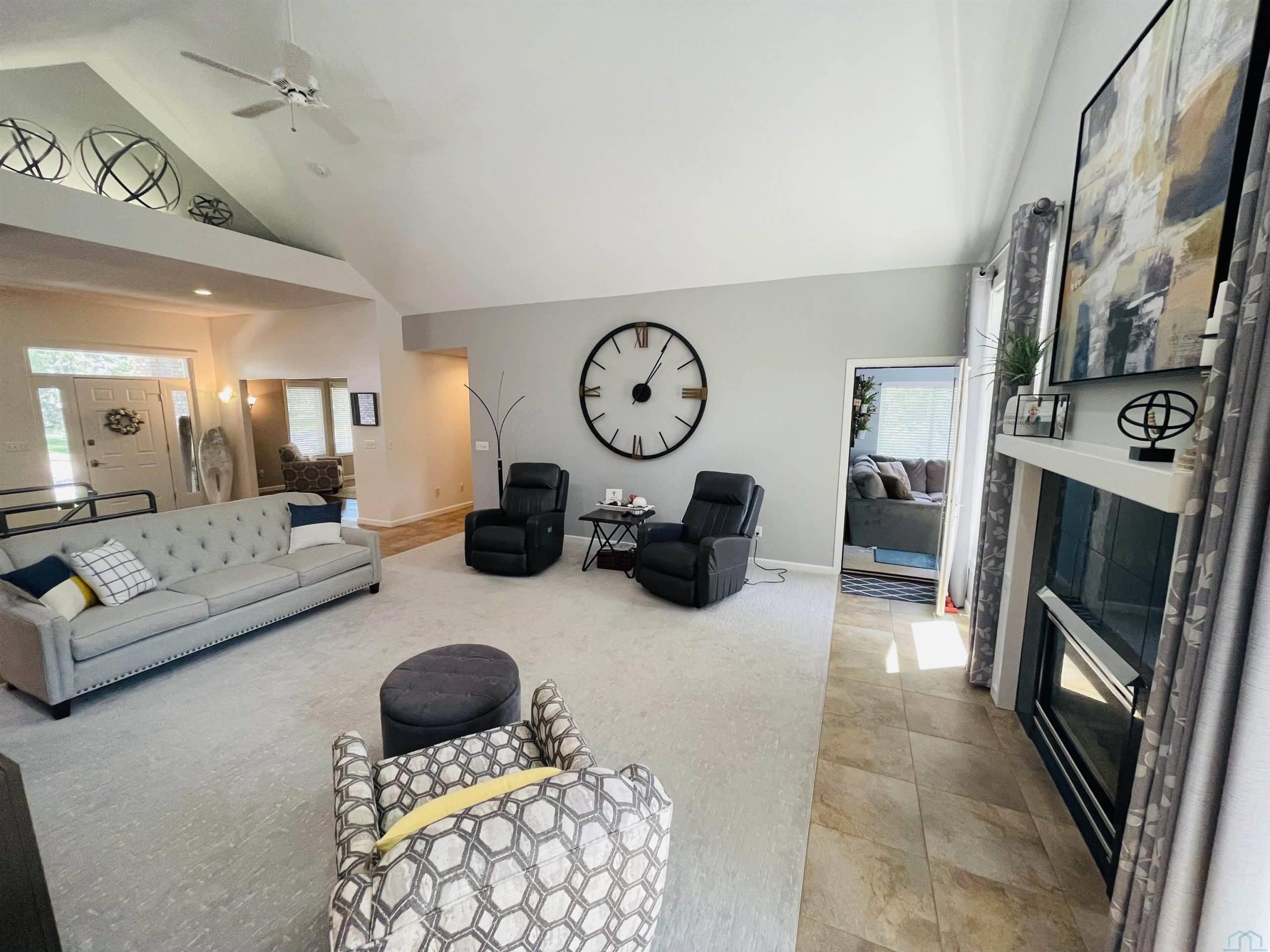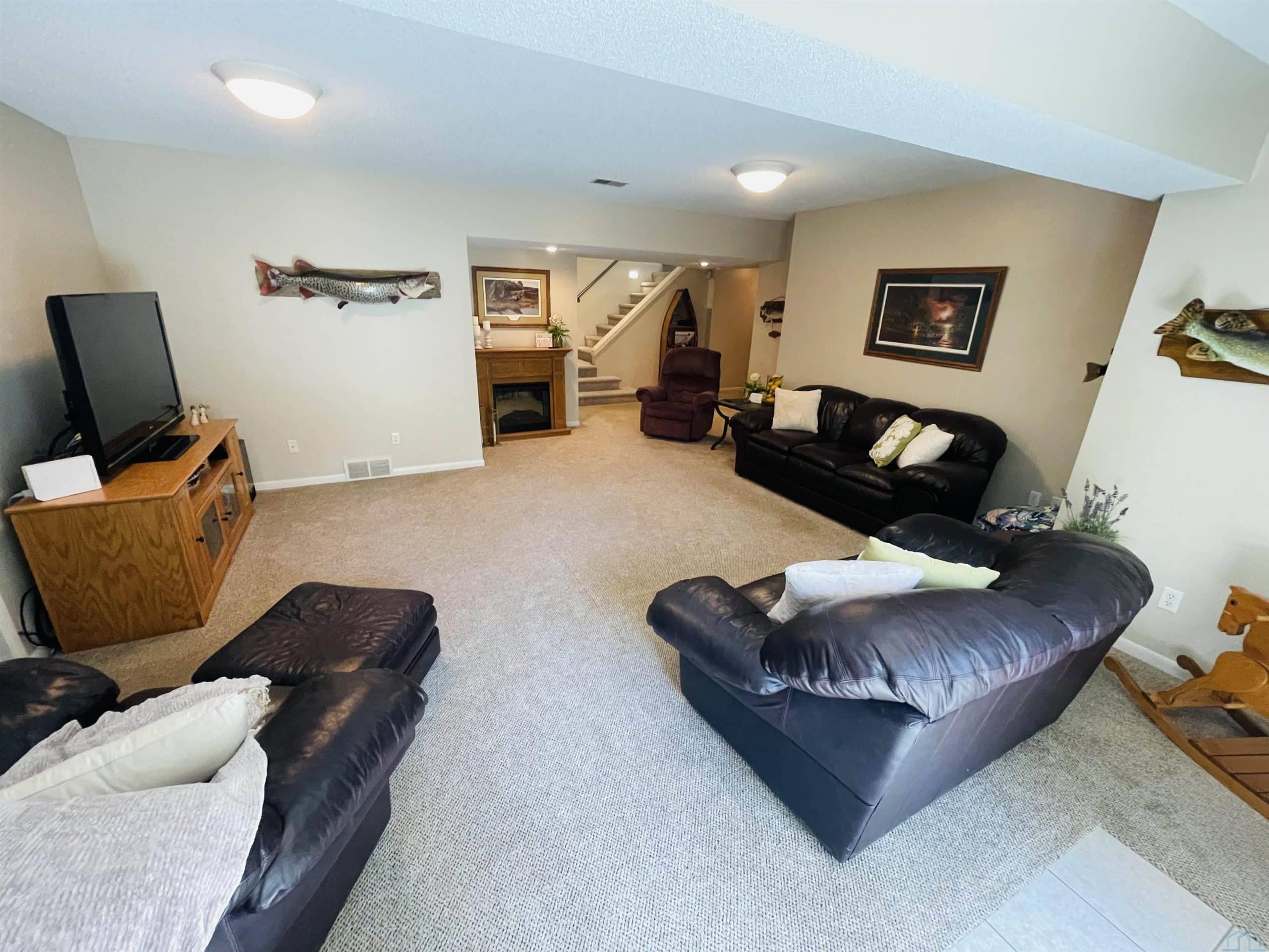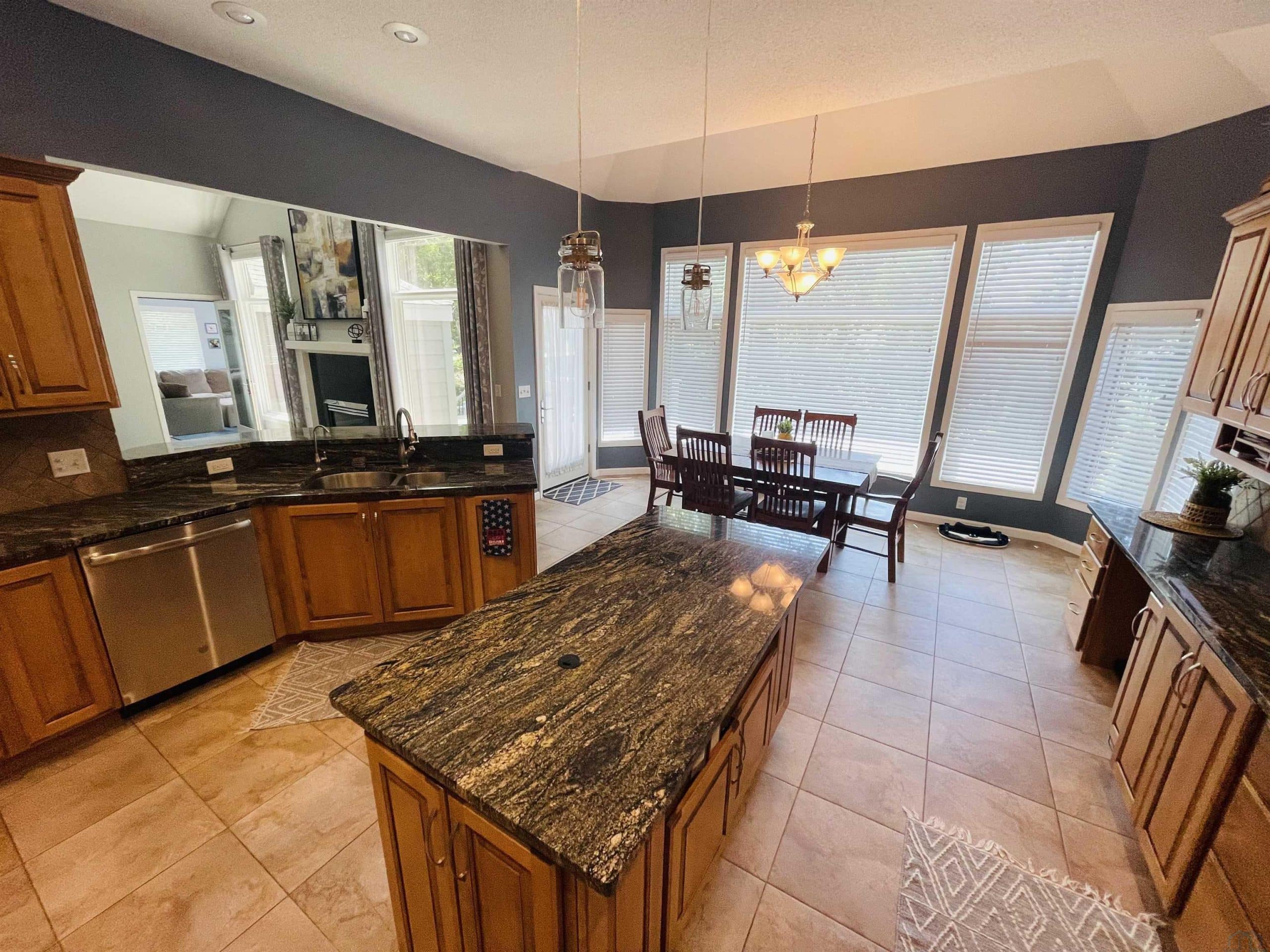 Beautiful ranch style home sitting on a corner lot on a quiet side street in the Country Club section of the Dunes. The property is pristinely manicured with eye popping landscaping surrounded by concrete curbing and rock beds throughout the yard. The brick accent and newer garage doors really make this house stand out, and the tree cover in the backyard provides great privacy. There's also a massive two tiered trex deck overlooking the backyard with a graciously sized stone paver patio below it stemming off of the walkout basement. The patio features a covered sitting area and pergola. When you step into the house through the front door you will notice how big all of the rooms in the house are. The formal dining room and den are on each side of the foyer, and they both include Brazilian cherrywood floors and windows overlooking the front yard. The living room will be straight ahead and shows a vaulted ceiling and gas fireplace. There's a bonus 3 season room that connects to the living room and backyard deck that has windows overlooking the backyard lining the room. The eat-in kitchen is just steps away from the living room and boasts granite countertops, an island below pendant lighting, and SS appliances that include a newer dishwasher and fridge. The guest bedroom and bathroom with heated tile flooring and a tiled walk-in shower are on one side of the main floor, and the master bedroom is on the other side of the main floor. The master bedroom presents a master bathroom with dual vanities, and a WIC. The basement also impresses with three large bedrooms and two bathrooms. One of the bedrooms is an en suite bedroom that comes with a bathroom and has direct access to the backyard patio. There is also a set of stairs in the storage room just outside of the en suite bedroom that lead up to the garage. Also, this home has never had any water issues, includes a smart HVAC system, smart garage door, is wired for a security system, and could be plumbed for central VAC.