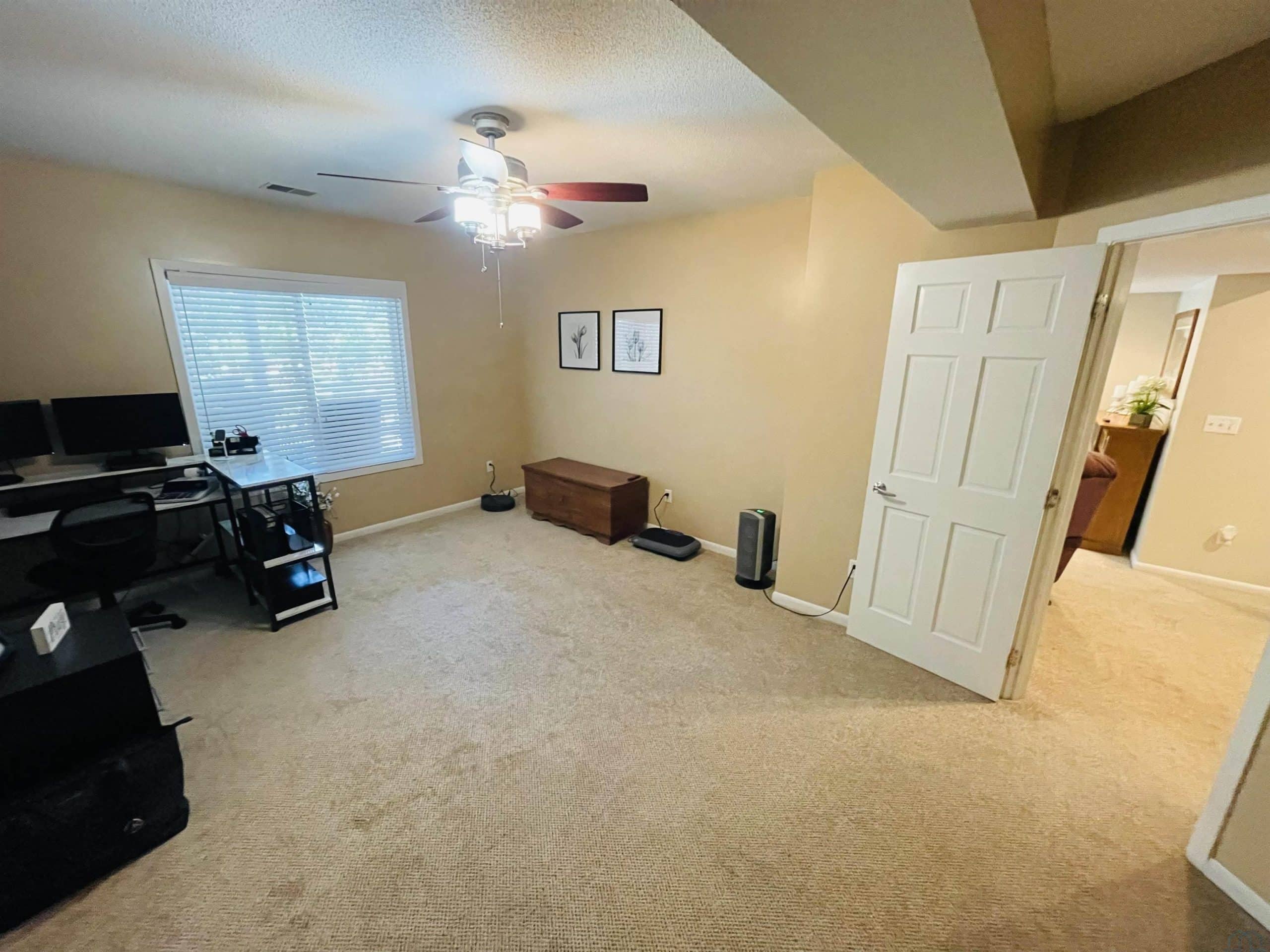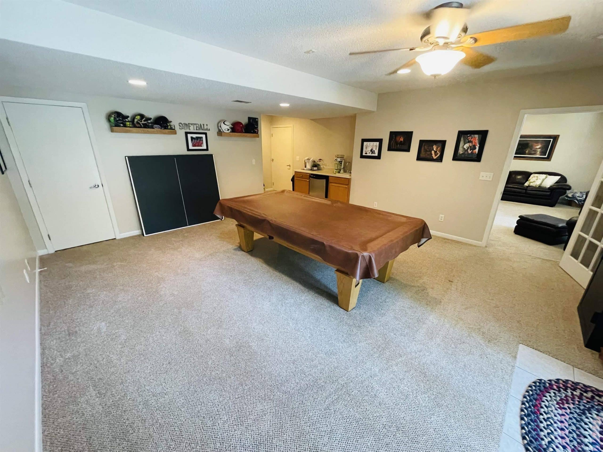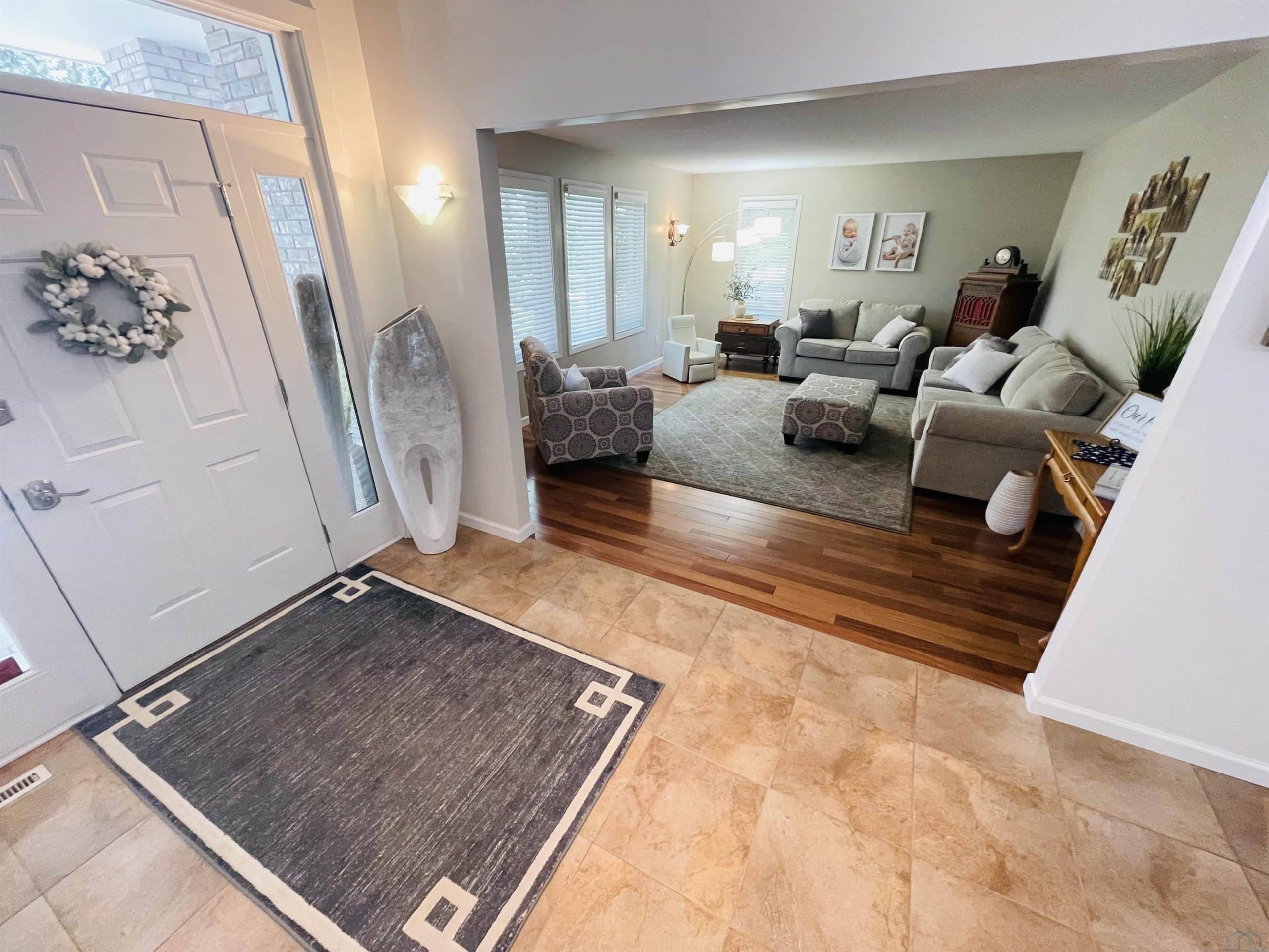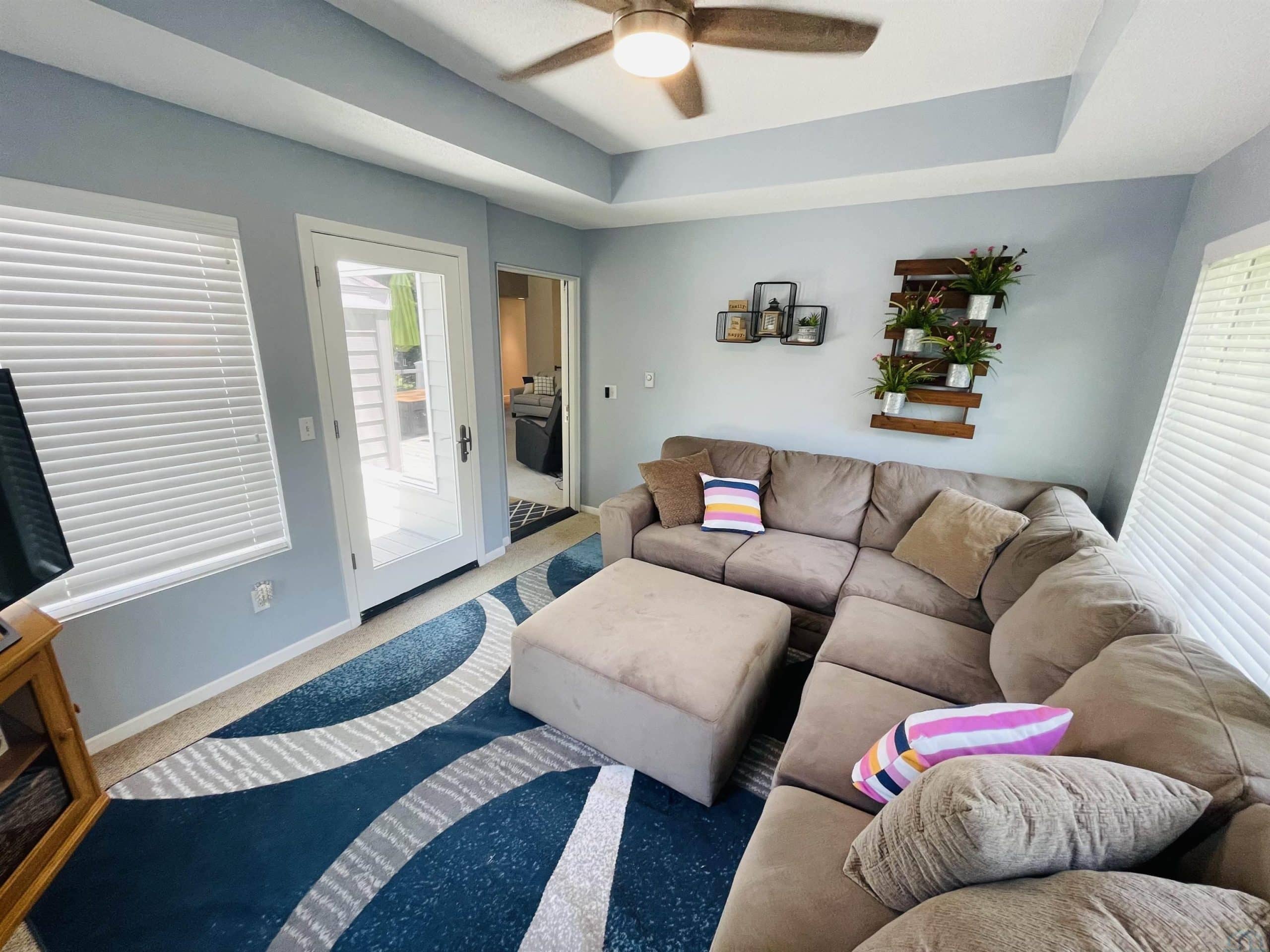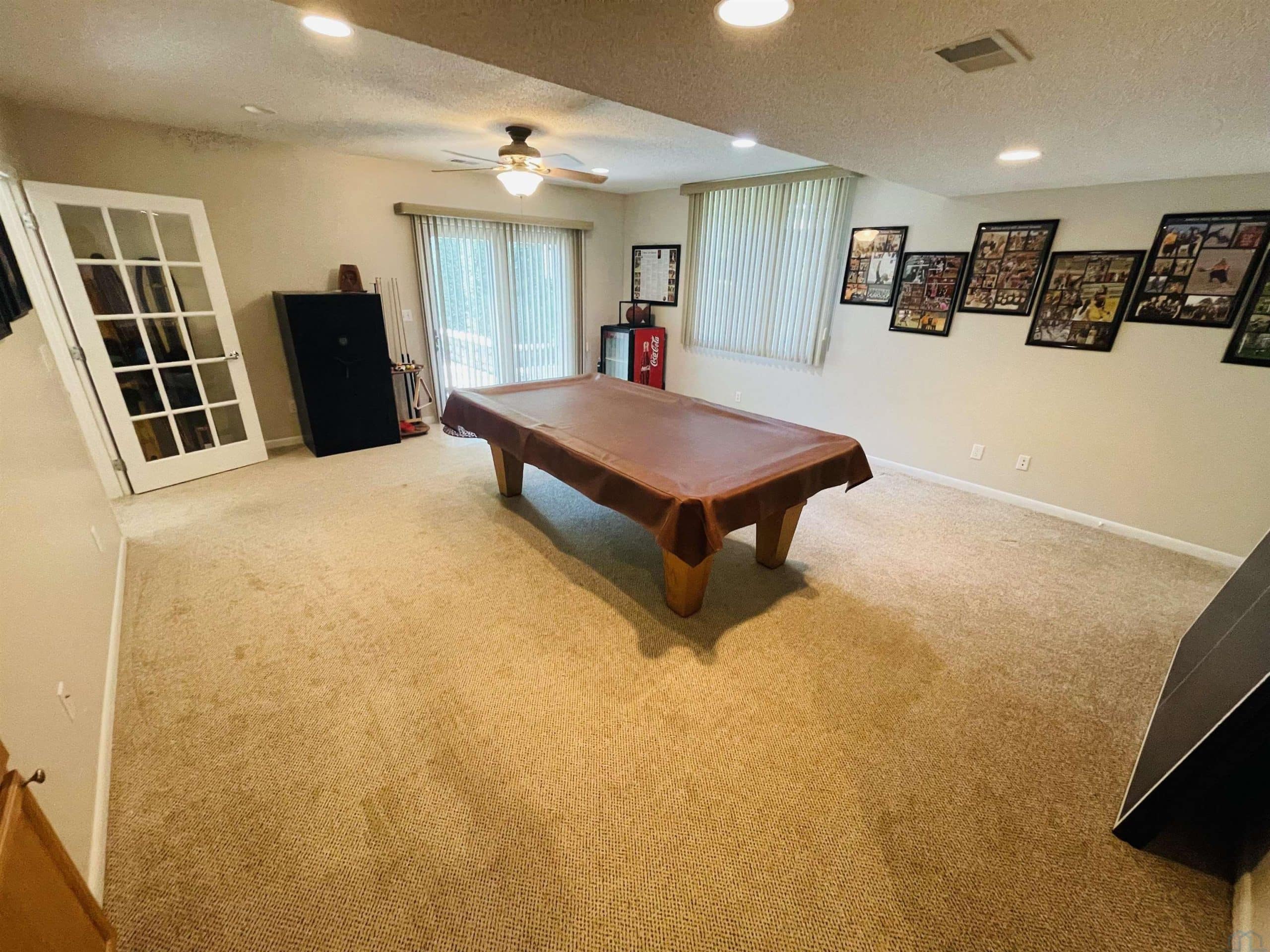 Beautiful ranch style home sitting on a corner lot on a quiet side street in the Country Club section of the Dunes. The property is pristinely manicured with eye popping landscaping surrounded by concrete curbing and rock beds throughout the yard. The brick accent and newer garage doors really make this house stand out, and the tree cover in the backyard provides great privacy. There's also a massive two tiered trex deck overlooking the backyard with a graciously sized stone paver patio below it stemming off of the walkout basement. The patio features a covered sitting area and pergola. When you step into the house through the front door you will notice how big all of the rooms in the house are. The formal dining room and den are on each side of the foyer, and they both include Brazilian cherrywood floors and windows overlooking the front yard. The living room will be straight ahead and shows a vaulted ceiling and gas fireplace. There's a bonus 3 season room that connects to the living room and backyard deck that has windows overlooking the backyard lining the room. The eat-in kitchen is just steps away from the living room and boasts granite countertops, an island below pendant lighting, and SS appliances that include a newer dishwasher and fridge. The guest bedroom and bathroom with heated tile flooring and a tiled walk-in shower are on one side of the main floor, and the master bedroom is on the other side of the main floor. The master bedroom presents a master bathroom with dual vanities, and a WIC. The basement also impresses with three large bedrooms and two bathrooms. One of the bedrooms is an en suite bedroom that comes with a bathroom and has direct access to the backyard patio. There is also a set of stairs in the storage room just outside of the en suite bedroom that lead up to the garage. Also, this home has never had any water issues, includes a smart HVAC system, smart garage door, is wired for a security system, and could be plumbed for central VAC.