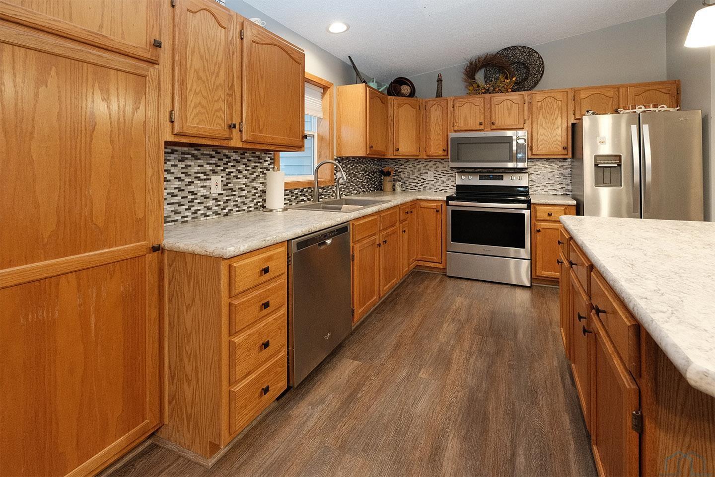 Welcome home to this beautifully updated three-bedroom ranch, offering comfort, convenience, and modern style all on one level. The main floor features three bedrooms, including a primary suite with a full en-suite bathroom and walk-in closet. Youâll love the open-concept kitchen, dining, and living area, perfect for everyday living and entertaining. The kitchen shines with updated countertops and backsplash (2017), and the home features new vinyl plank flooring (2017) throughout much of the main level. A second full bathroom adds extra convenience. Just off the main living area is a large den with a sliding door that walks out to a cement patio overlooking the backyardâan ideal spot for relaxing or hosting guests. Youâll also enjoy the composite front deck, offering great curb appeal and a welcoming outdoor space. This home has been wonderfully maintained with major updates already done for you: New roof in 2024, new furnace and A/C unit November 2025, new water heater May 2025, sealed/encapsulated crawl space with TWO sump pumps for peace of mind. The attached two-plus-stall garage features built-in storage cabinets, giving you plenty of room to stay organized. Additional storage is easy with the included storage shedâperfect for outdoor equipment or seasonal items. And best of all, all kitchen and laundry appliances are included, making this home truly move-in ready! Donât miss this updated, well-cared-for home with generous living spaces, thoughtful upgrades, and outstanding storage options throughout. Itâs one youâll want to see!