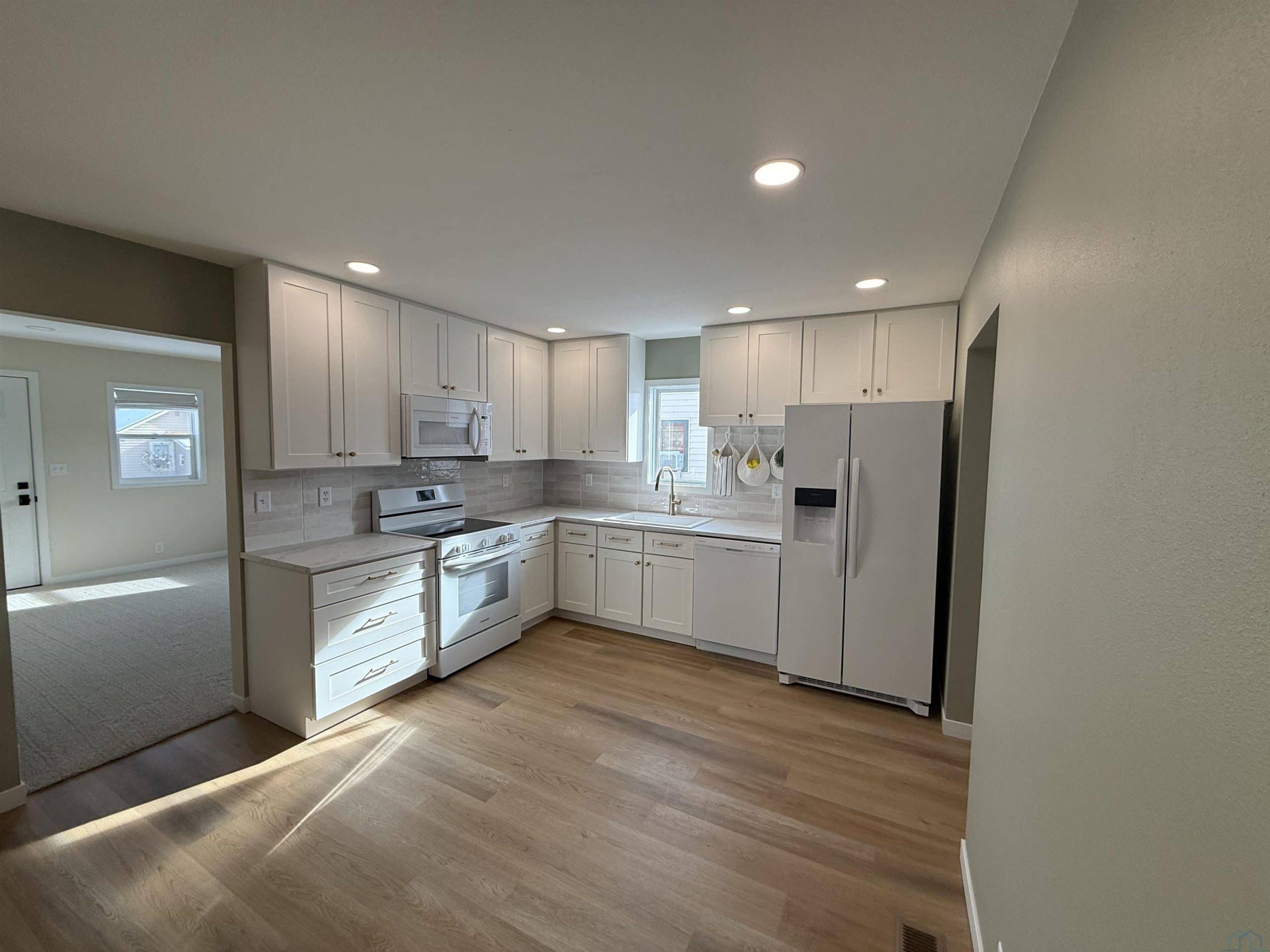 This 2-bedroom, 1 bath move-in ready property has 880 square feet of modern living space. It features a newly updated kitchen with brand-new cabinets and appliances, an updated full bathroom with a tub-shower combination, and new laminate and carpet flooring throughout the main floor. The laundry area is equipped with a new washer and dryer for added convenience. The home has been extensively renovated with an updated high-efficiency furnace and a new central air conditioning unit, along with new insulation, sheetrock, electrical, plumbing, windows and window treatments, and recessed ceiling lights. An unfinished basement provides plenty of additional storage space. Exterior features include a newly developed lawn and a spacious 12x30 shed built in 2022 that offers excellent storage or workshop space and has been freshly painted to complement the new maintenance-free board-and-batten siding on the house. This property provides a turnkey opportunity for buyers seeking a fully modernized home with quality upgrades.