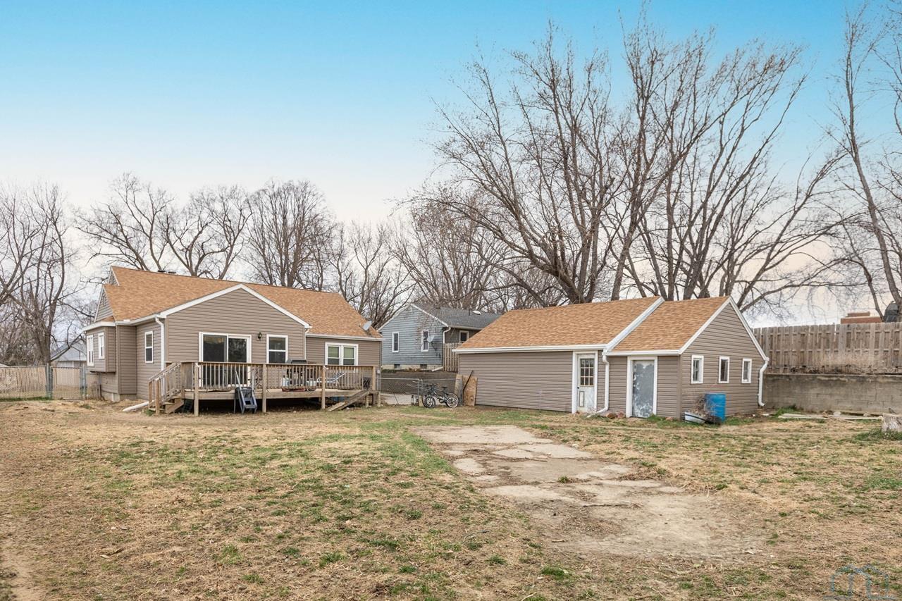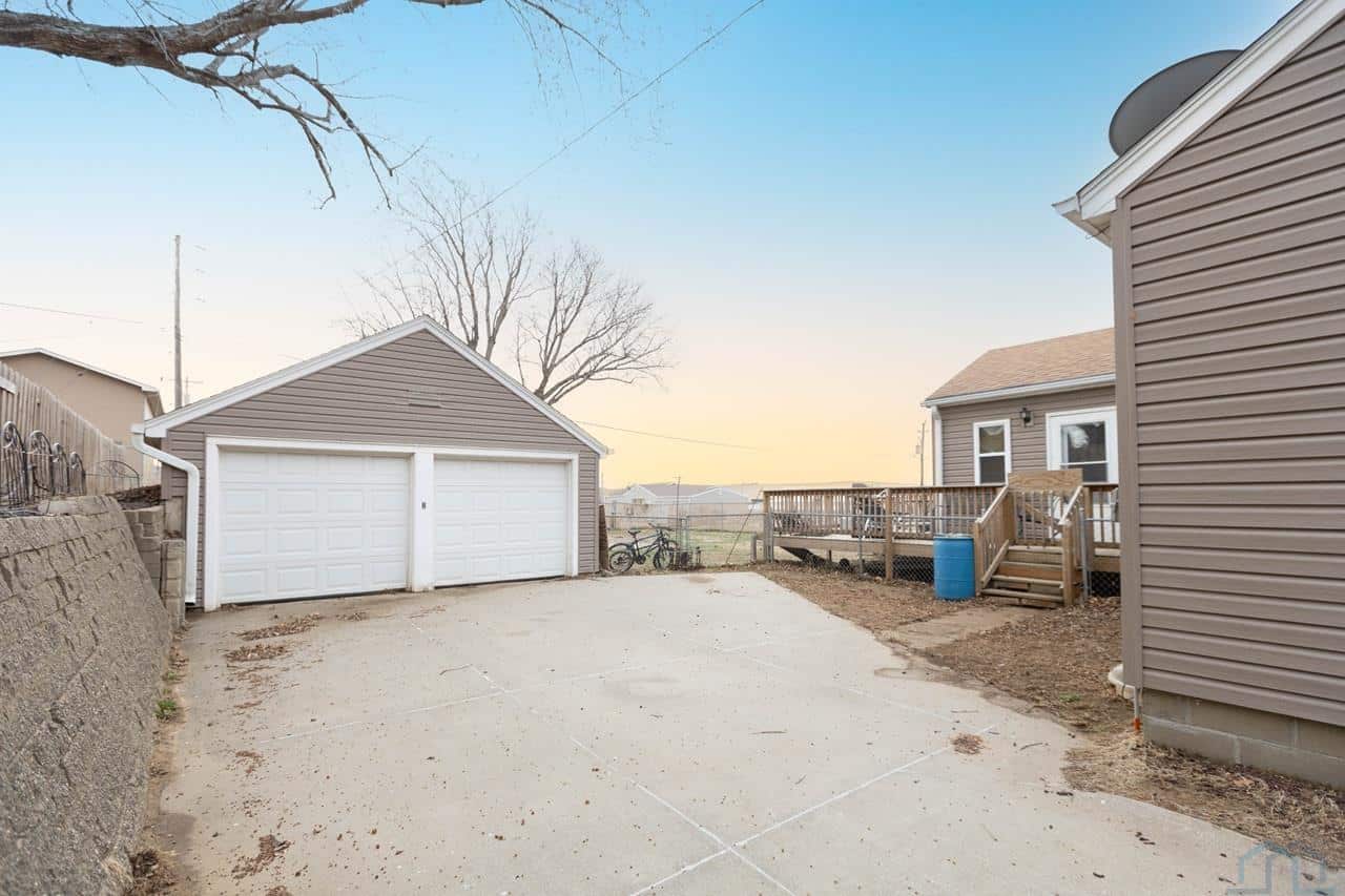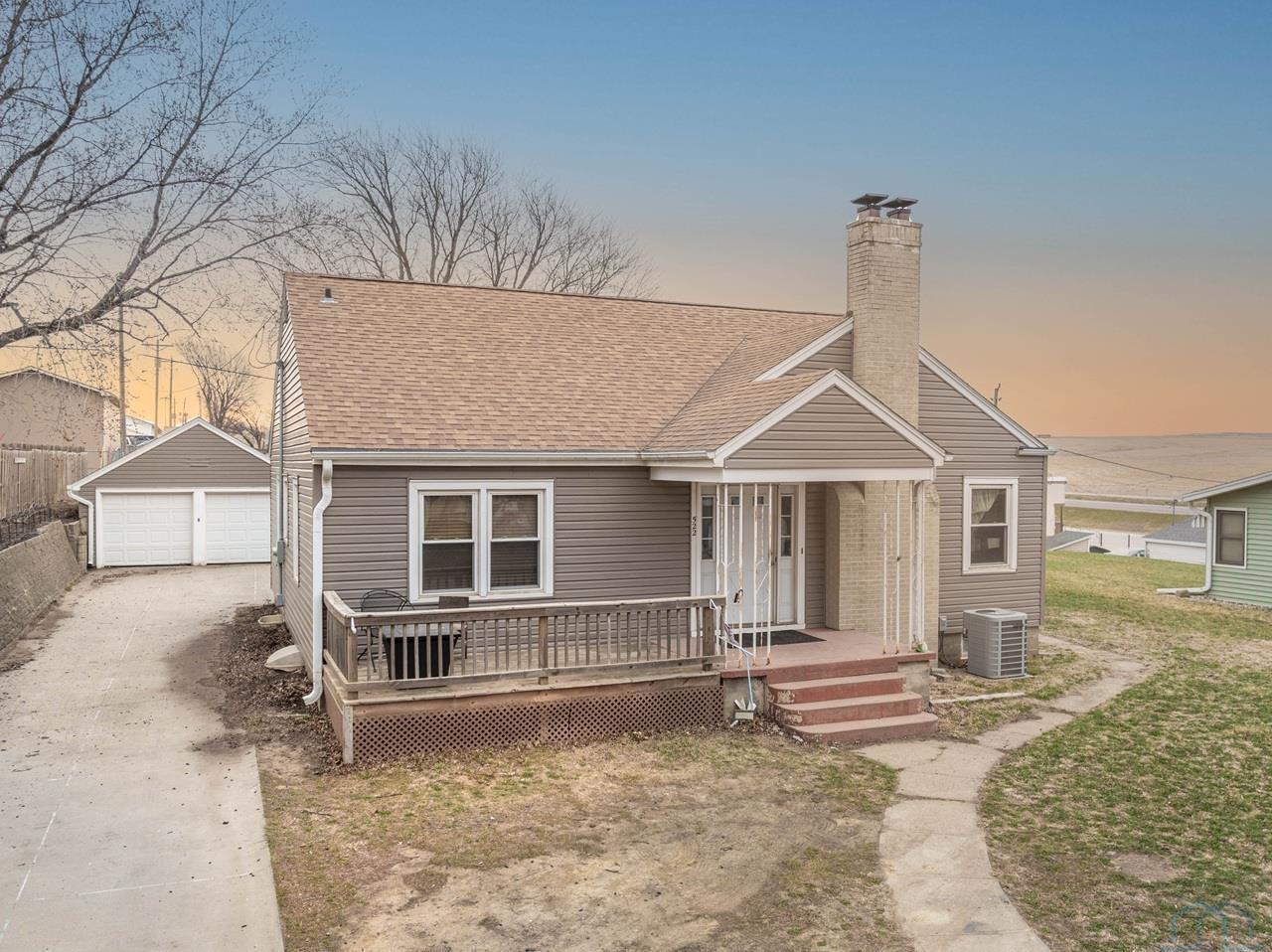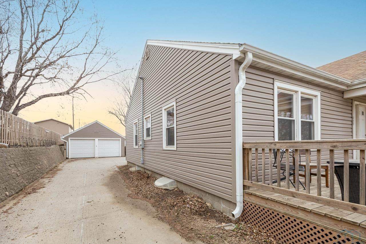 This home is a charming bungalow built in 1947. It has a 2 car detached garage and a large fenced in backyard. This home has some great views of the Iowa hills, and a comfortable backyard deck to enjoy them with a cup of morning coffee. There is also a small deck at the front of the home to invite you home from work each day. Inside the front door is the cozy living room with a brick gas log fireplace to take the chill off our Iowa winters. The dining room has a handy pass through to the kitchen and opens up the space. The eat-in kitchen is a nice space with plenty of windows and sliding glass doors to bring in the natural light. The sliding glass doors open to the rear deck and backyard. The kitchen has a sit at bar, gas cooktop, double ovens and medium oak cupboards. There are three bedrooms with nice closet spaces, a full bath and two linen closets off the dining room. In the basement are 2 non-conforming bedrooms (no egress windows), a 3/4 bath, a large room with a shower stall, a storage room and a laundry/utilities area. This is a sweet home with lots of potential for lots of living! With a little elbow grease, a little paint and a little polish, it will sparkle!
