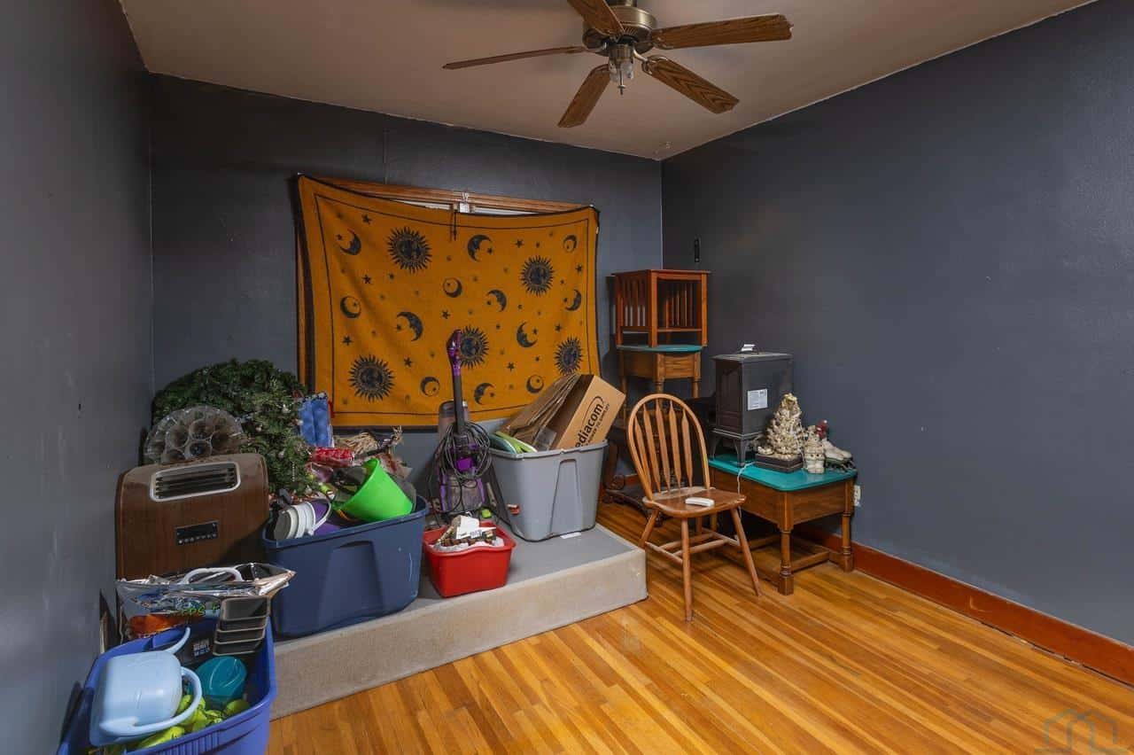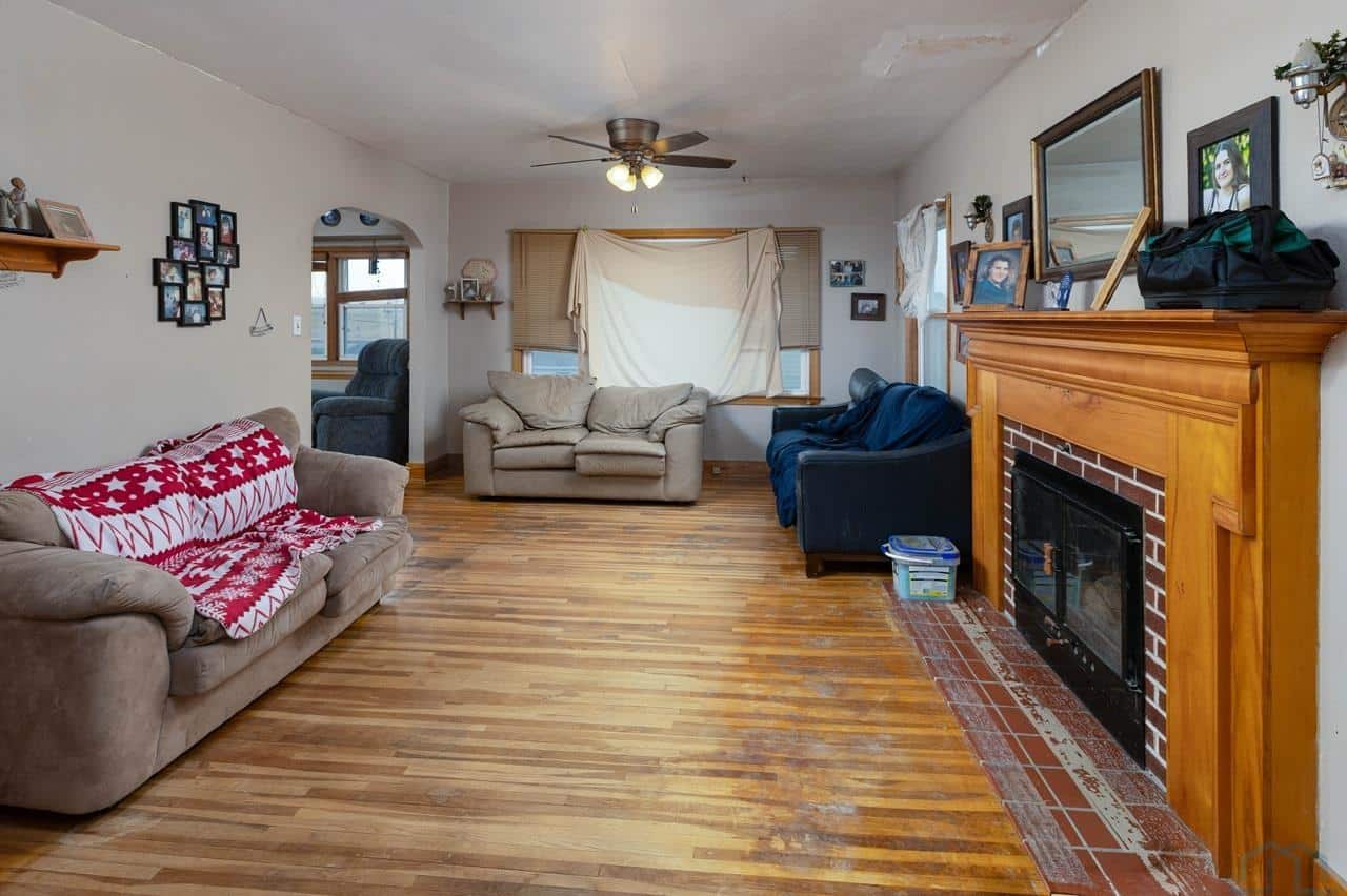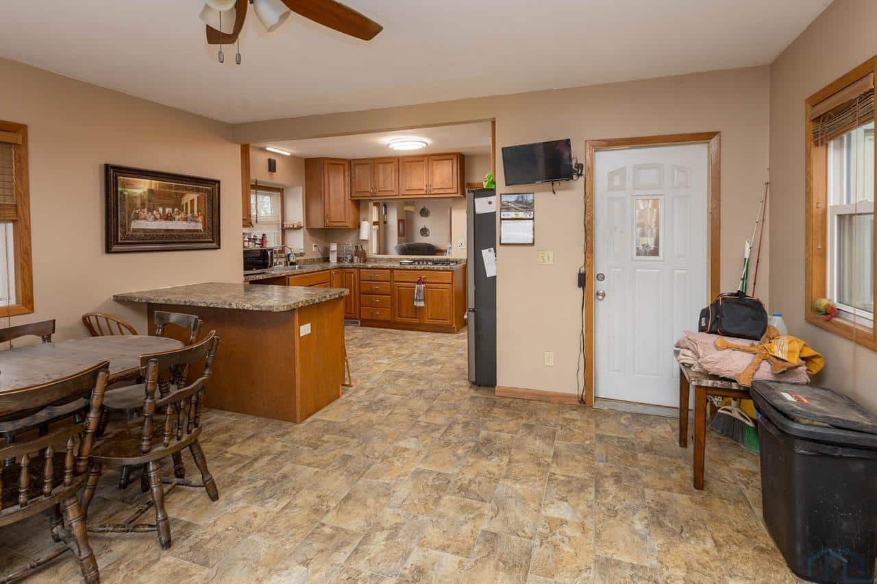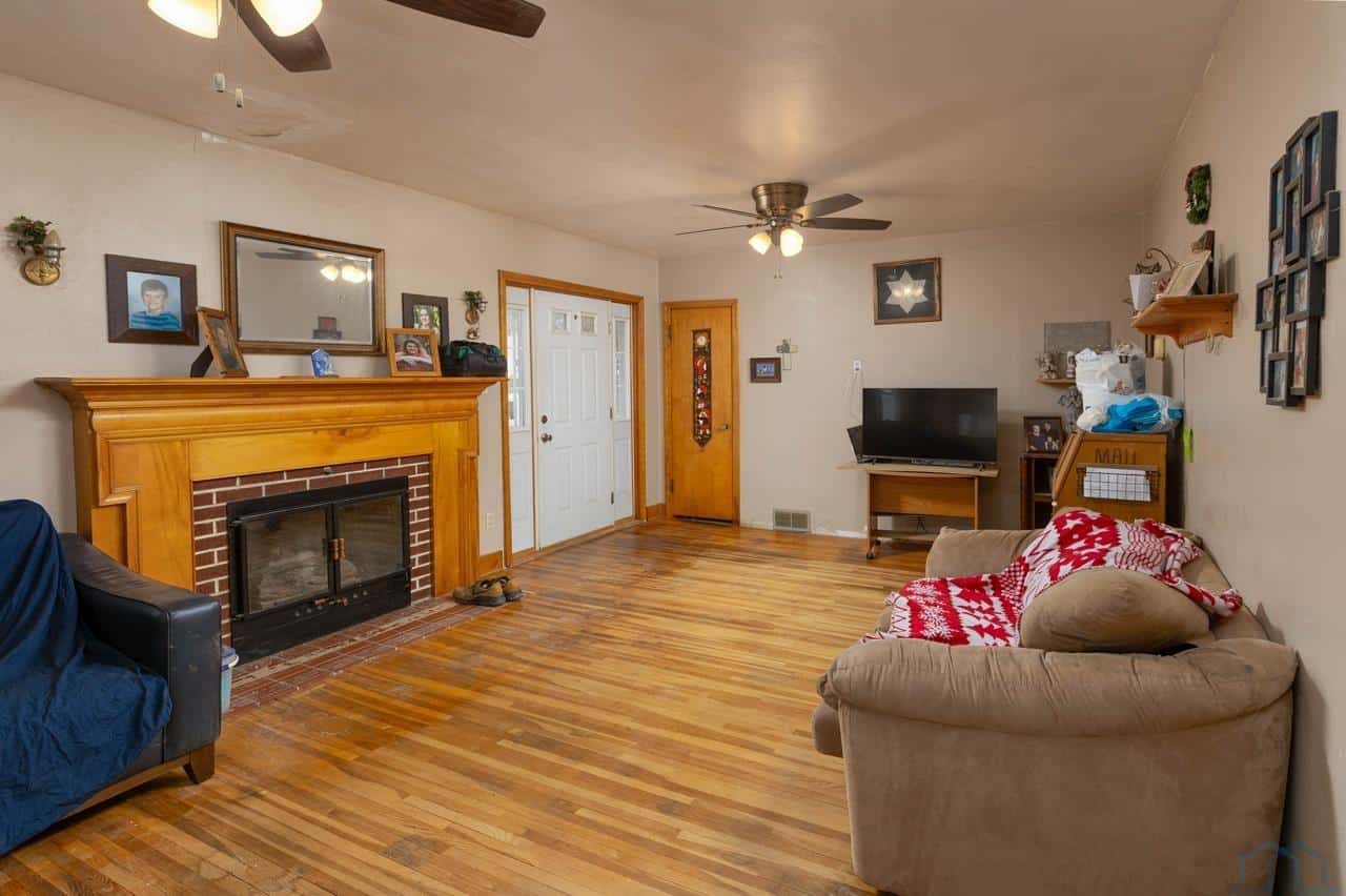 This home is a charming bungalow built in 1947. It has a 2 car detached garage and a large fenced in backyard. This home has some great views of the Iowa hills, and a comfortable backyard deck to enjoy them with a cup of morning coffee. There is also a small deck at the front of the home to invite you home from work each day. Inside the front door is the cozy living room with a brick gas log fireplace to take the chill off our Iowa winters. The dining room has a handy pass through to the kitchen and opens up the space. The eat-in kitchen is a nice space with plenty of windows and sliding glass doors to bring in the natural light. The sliding glass doors open to the rear deck and backyard. The kitchen has a sit at bar, gas cooktop, double ovens and medium oak cupboards. There are three bedrooms with nice closet spaces, a full bath and two linen closets off the dining room. In the basement are 2 non-conforming bedrooms (no egress windows), a 3/4 bath, a large room with a shower stall, a storage room and a laundry/utilities area. This is a sweet home with lots of potential for lots of living! With a little elbow grease, a little paint and a little polish, it will sparkle!