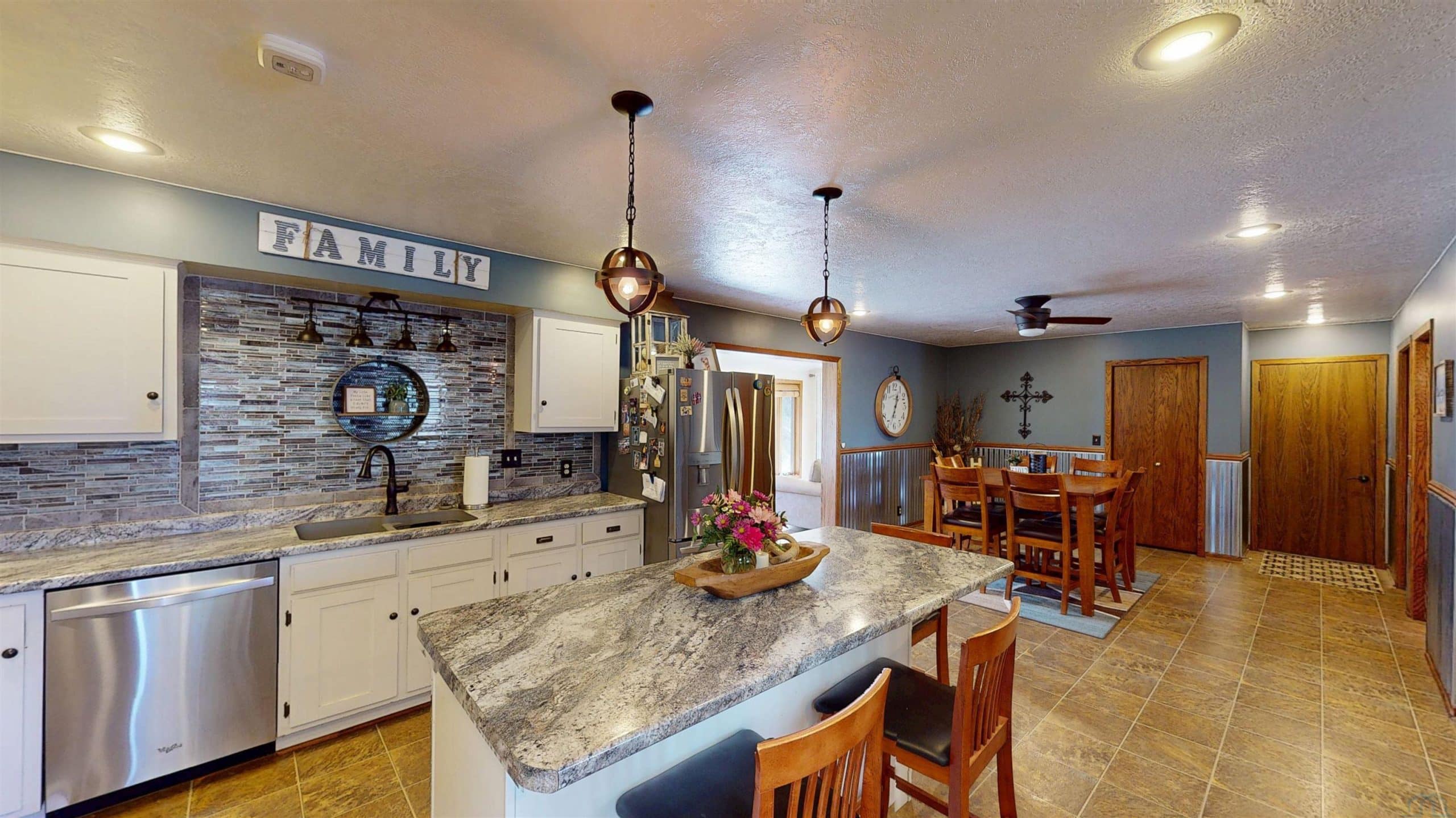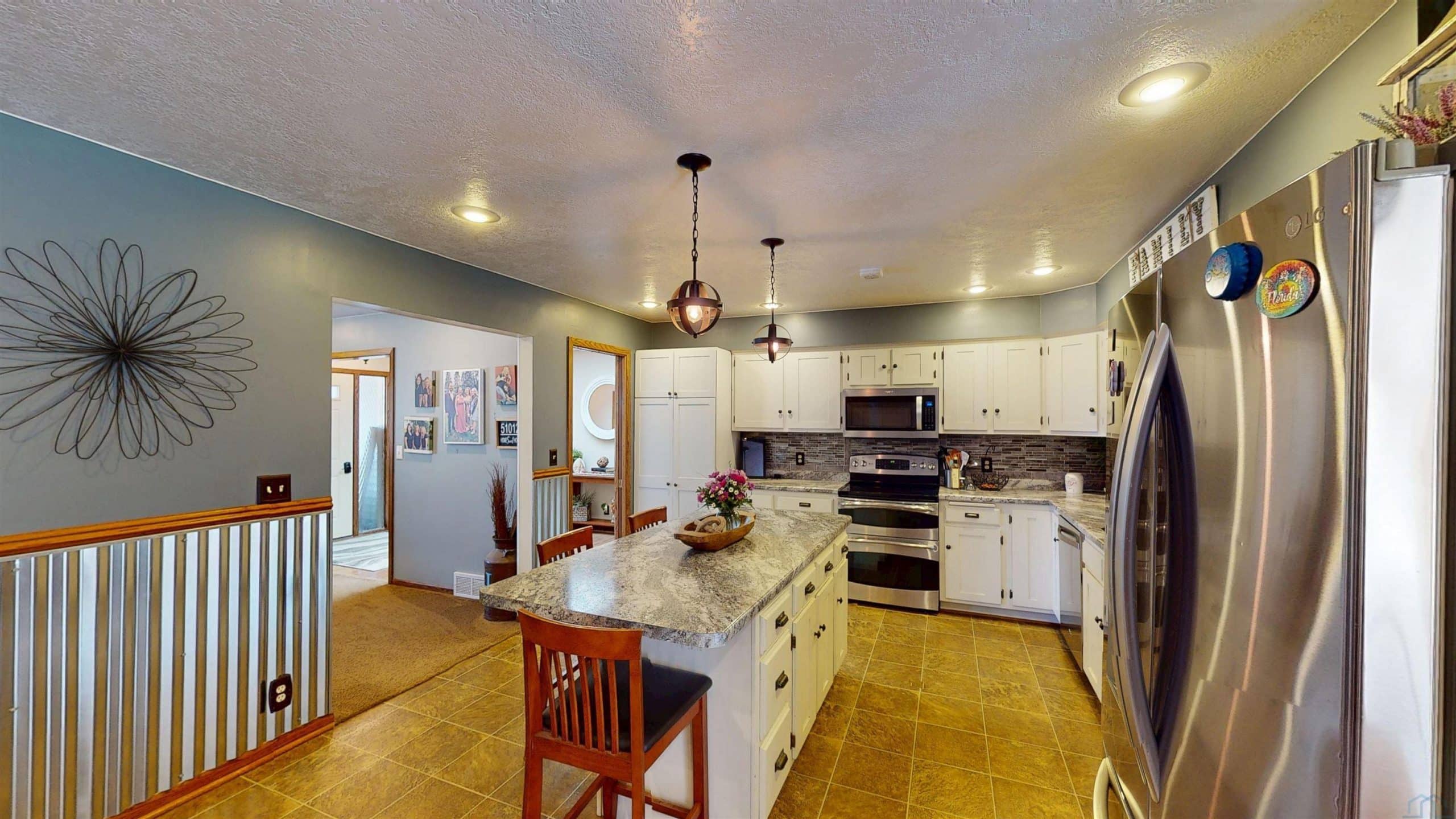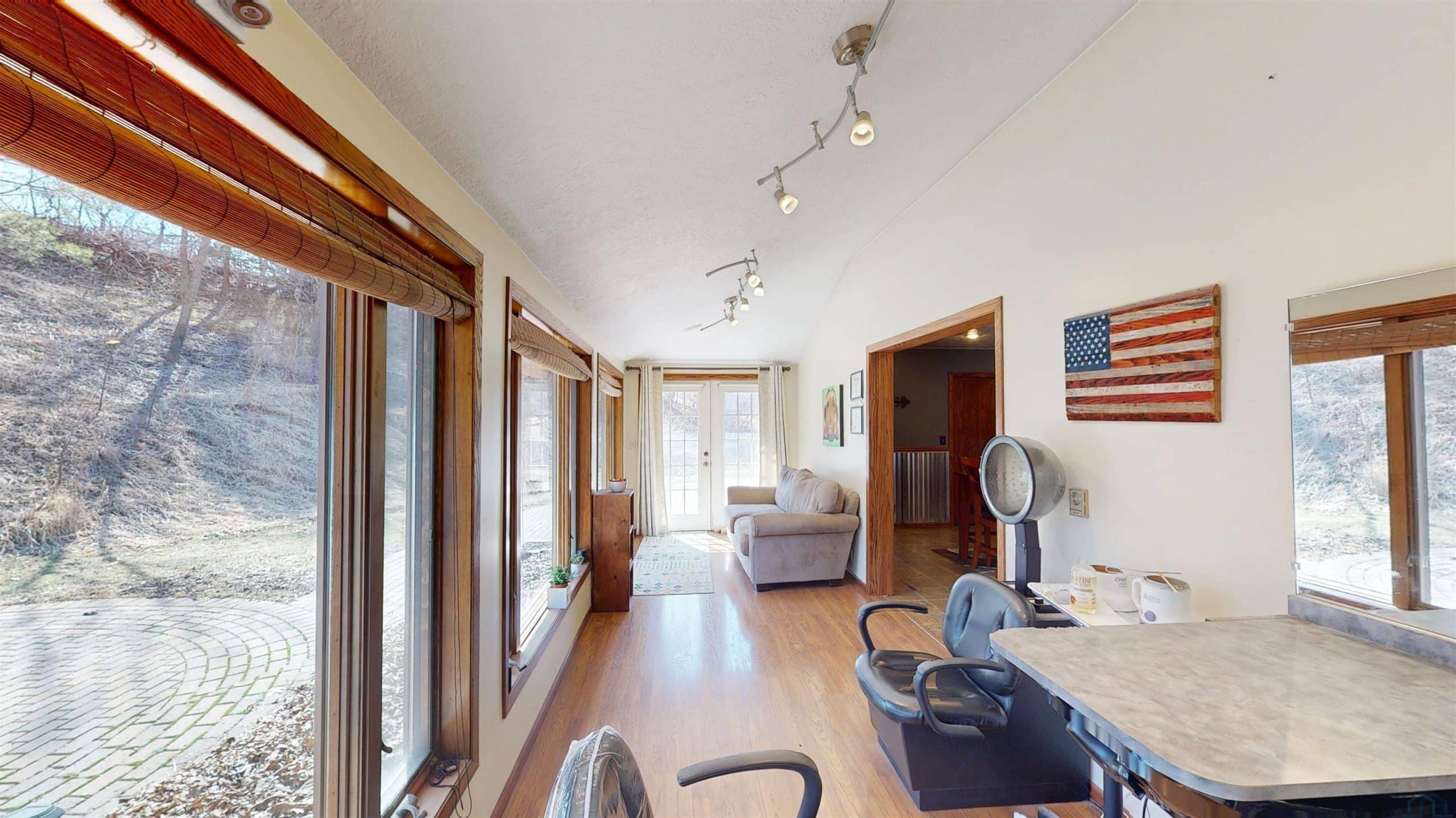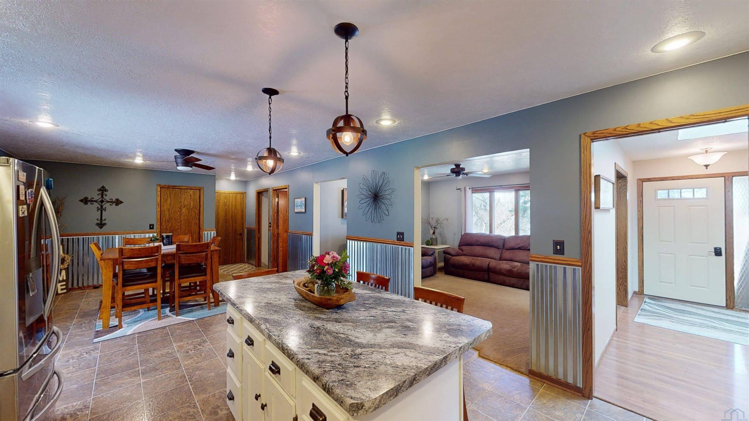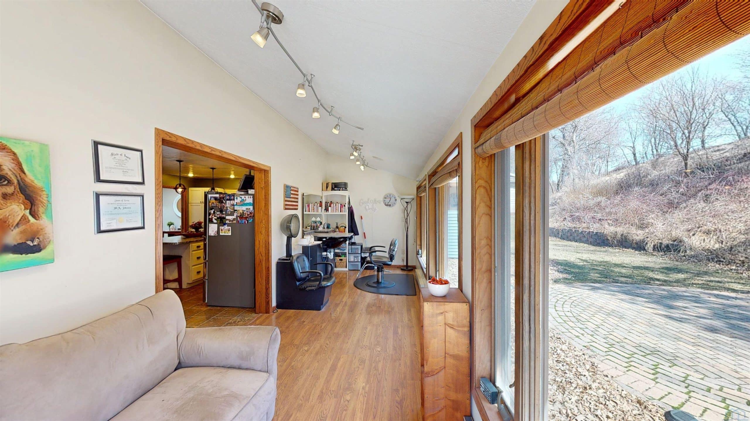 Beautifully maintained property offering space, functionality, and comfort both inside and out! This property features a 36' x 36' shop equipped with heat, water, a floor drain, updated LED lighting, and a newer heaterâideal for hobbies, business use, or extra storage. The air compressor is negotiable. Step inside to a welcoming foyer highlighted by a large skylight that fills the home with natural light. The main level showcases a stunning open-concept layout with a beautifully updated kitchen featuring a large island, double oven/stove, updated countertops, backsplash, and abundant cabinetry. The dining area flows seamlessly off the kitchen and into the cozy living room, creating a perfect setup for everyday living and entertaining. The main level offers two guest bedrooms along with a well-appointed primary suite featuring a 6' x 6' walk-in closet with professional organization, an additional closet, and a private bathroom with a large onyx walk-in shower. Toward the back of the home, enjoy a bright sunroom overlooking the patio and hillsideâcurrently used as a salon spaceâwhere wildlife can be seen passing through. The finished basement provides an expansive 42' x 13' family room with a wet bar, a non-conforming bedroom, 3/4 bath, and ample storage space. Additional features include a sump pump and water softener. Recent updates include siding, septic/coco filter system, shop improvements, and a new gas furnace and central air in 2025 . Utilities include Alliant Gas, Iowa Lakes Electric, and high-speed internet through CML . A well-rounded property offering modern updates, versatile space, and peaceful surroundingsâready for its next owner!