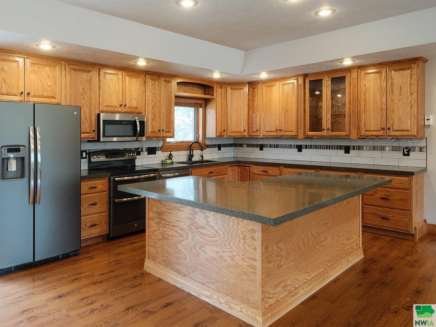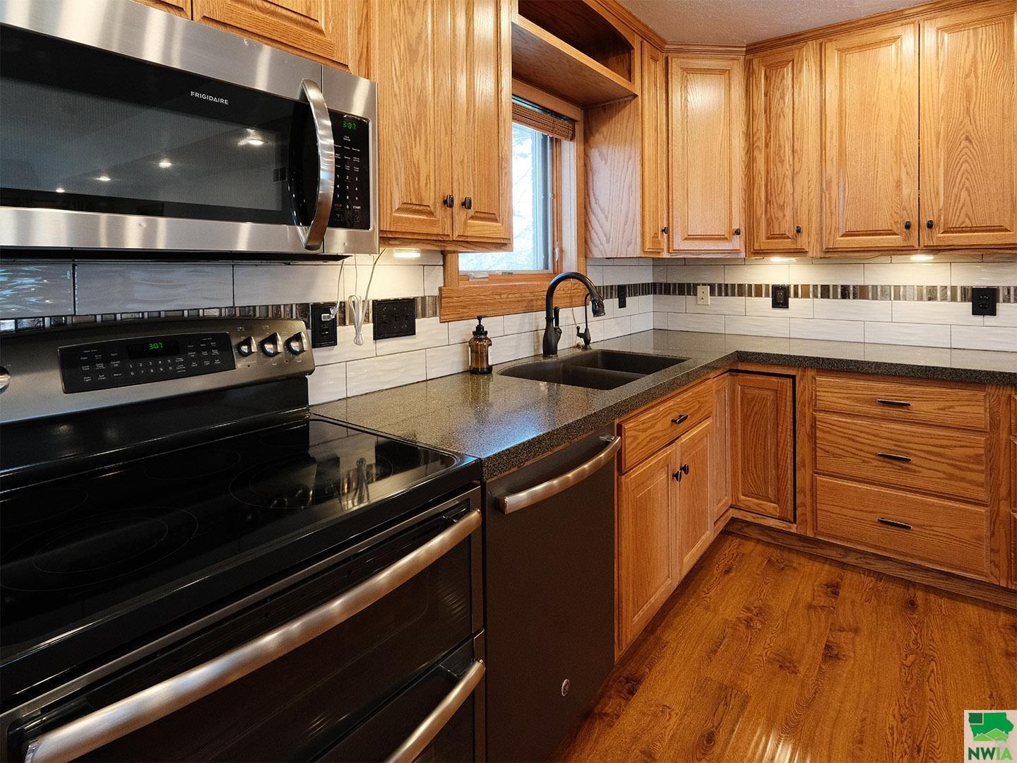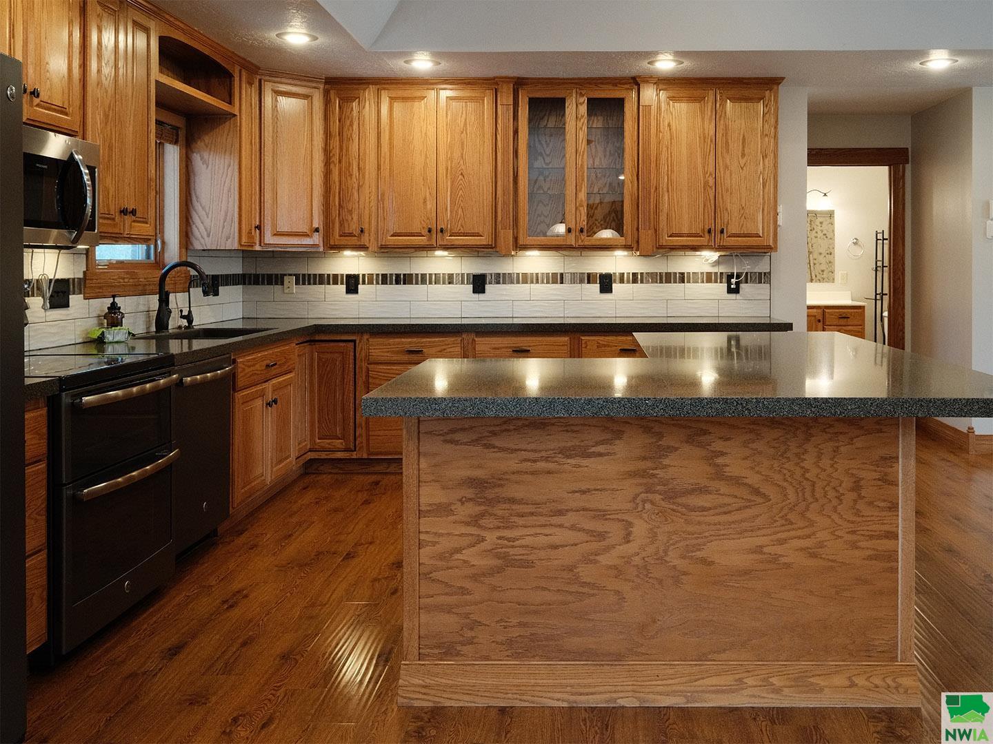 Location, space, functionality and care make this new Sioux Center listing a must see! Situated in a cul-de-sac on a spacious 0.37 acre lot, this 2004 built home offers over 1,800 square feet of main floor living space, along with a spacious backyard, massive garage and full finished basement! Tremendous curb appeal with established lawn, trees and landscaping and welcoming front entry! The main floor is home to a spacious living room with gas fireplace, open concept dining with deck access, functional kitchen with large island and custom cabinetry, primary suite with walk-in closet and en-suite 3/4 bath, guest bedroom, main bath and laundry! The full basement is finished with a large family room, 2 additional bedrooms, full bath and ample storage! The 3+ stall garage offers over 1,100 square feet; heated, insulated and equipped with a workshop, drains and soft water system! The private backyard offers a large maintenance free deck, firepit and ample green space! Situated close to schools, bike trail access and parks. Meticulous care and several value added updates; water heater (2019), furnace (2023), lawn irrigation system, new paint throughout, new landscaping rock, and updated appliances! All appliances included and move in ready!